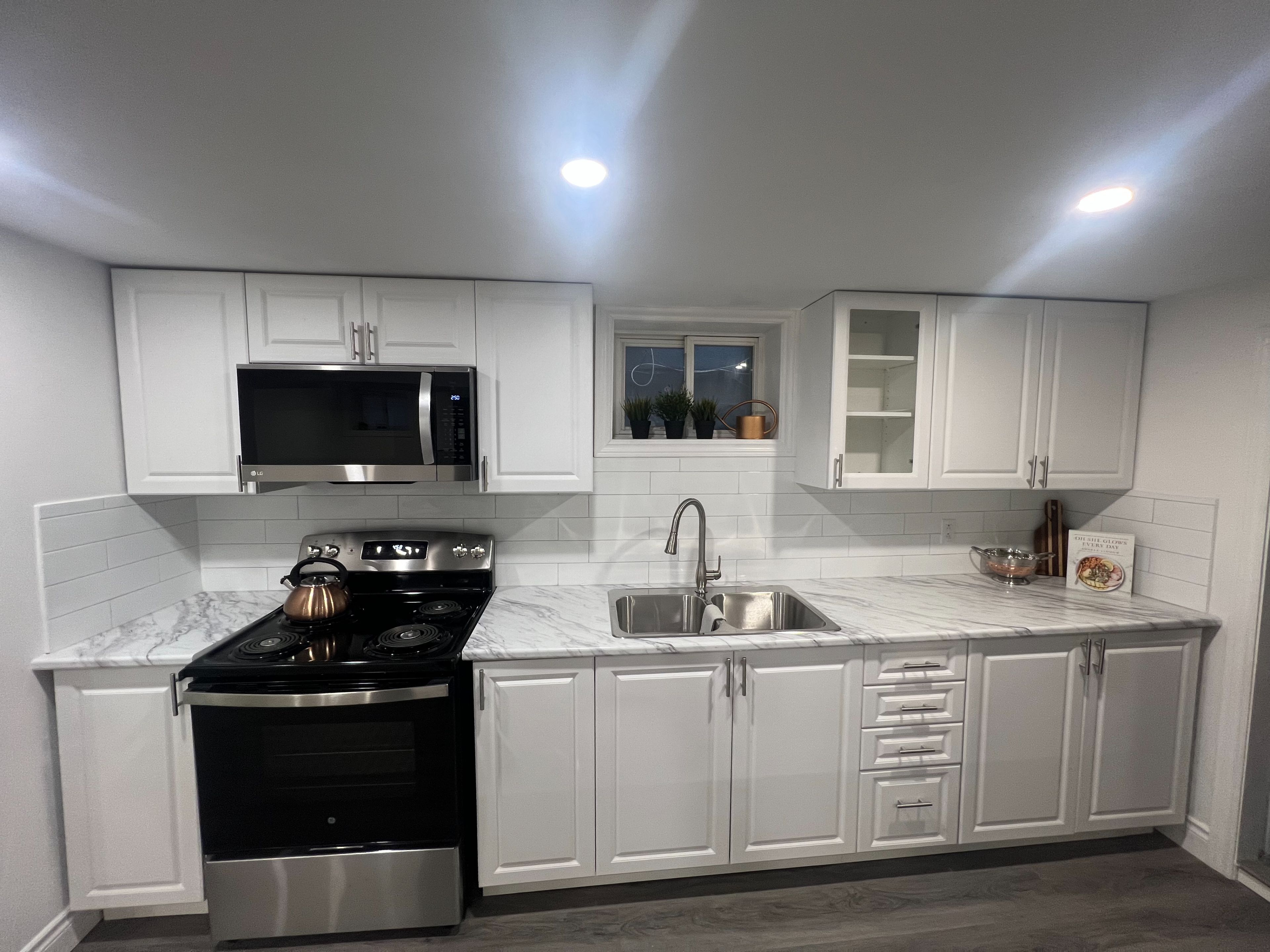 Perfect for single working professionals looking to live in the heart of east york, welcome to 27 torrens ave-just steps to broadview and under 2 km to the danforth. Enjoy an easy, connected lifestyle with parks, local shops, and everyday essentials close by, plus a smooth commute downtown with quick access to pape and broadview subway stations. Inside, this large, fully renovated unit feels bright and fresh, featuring new flooring, modern lighting, and a brand-new kitchen and bathroom. The kitchen is built for real cooking, with generous counter space, ample cabinetry, and an eat-in island. Nearly all full-size appliances are new, including the stove, over-the-range microwave/hood fan, and washer/dryer. Windows in every room bring in natural light throughout, and the bedroom includes an additional exit door for added peace of mind. The bathroom is fully refreshed with new fixtures and an oversized glass-enclosed shower. The living space is comfortable and functional-ideal for one occupant (maximum two persons)-and easily fits a work-from-home desk setup. All utilities are included (heat, hydro, water) plus internet, and parking on property is possible for a smaller vehicle. With utilities and parking included, this one stands out-especially in east york. Combine that with a high-end, full renovation, and you've got a rare opportunity that you will not want to miss!