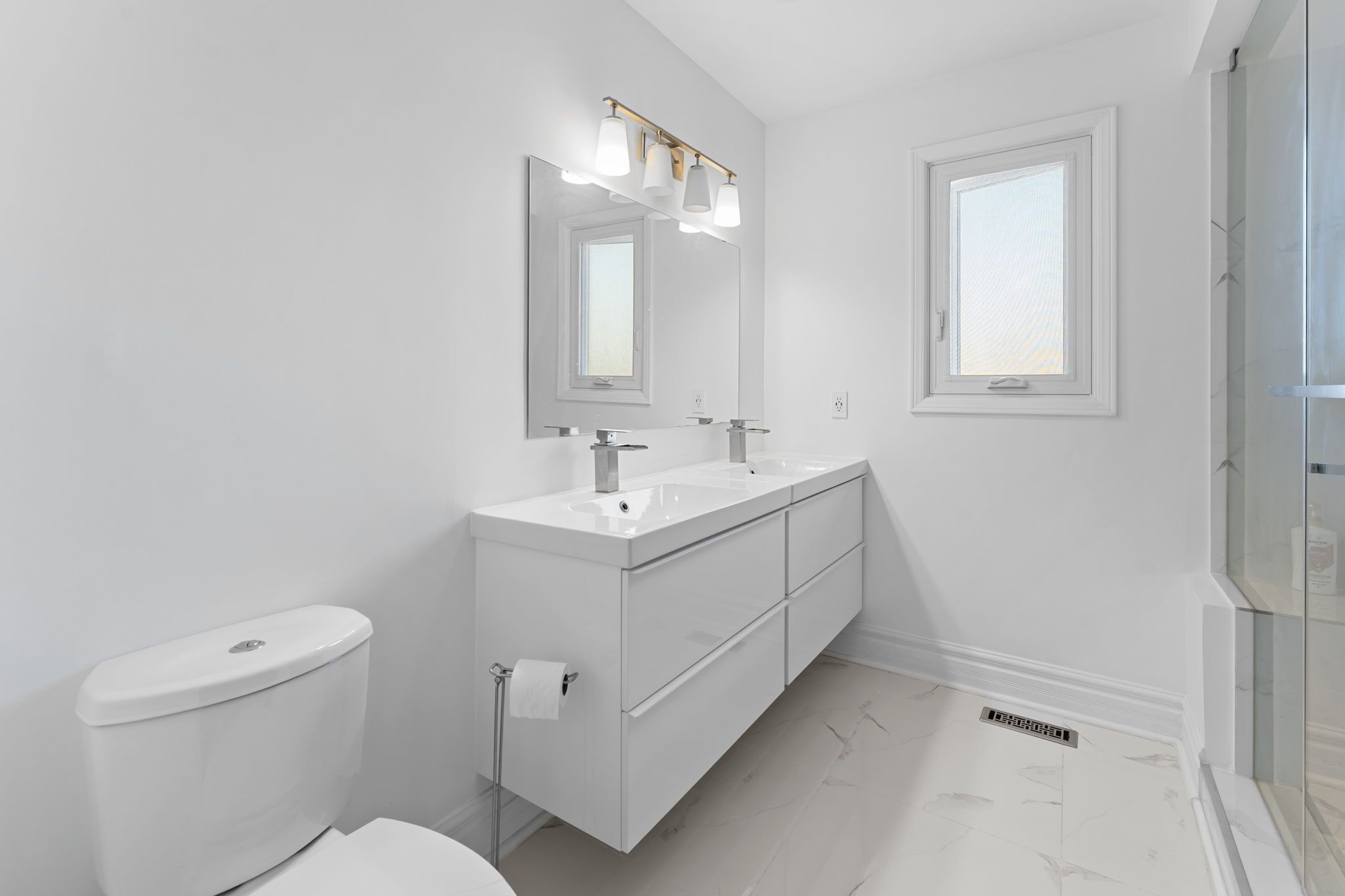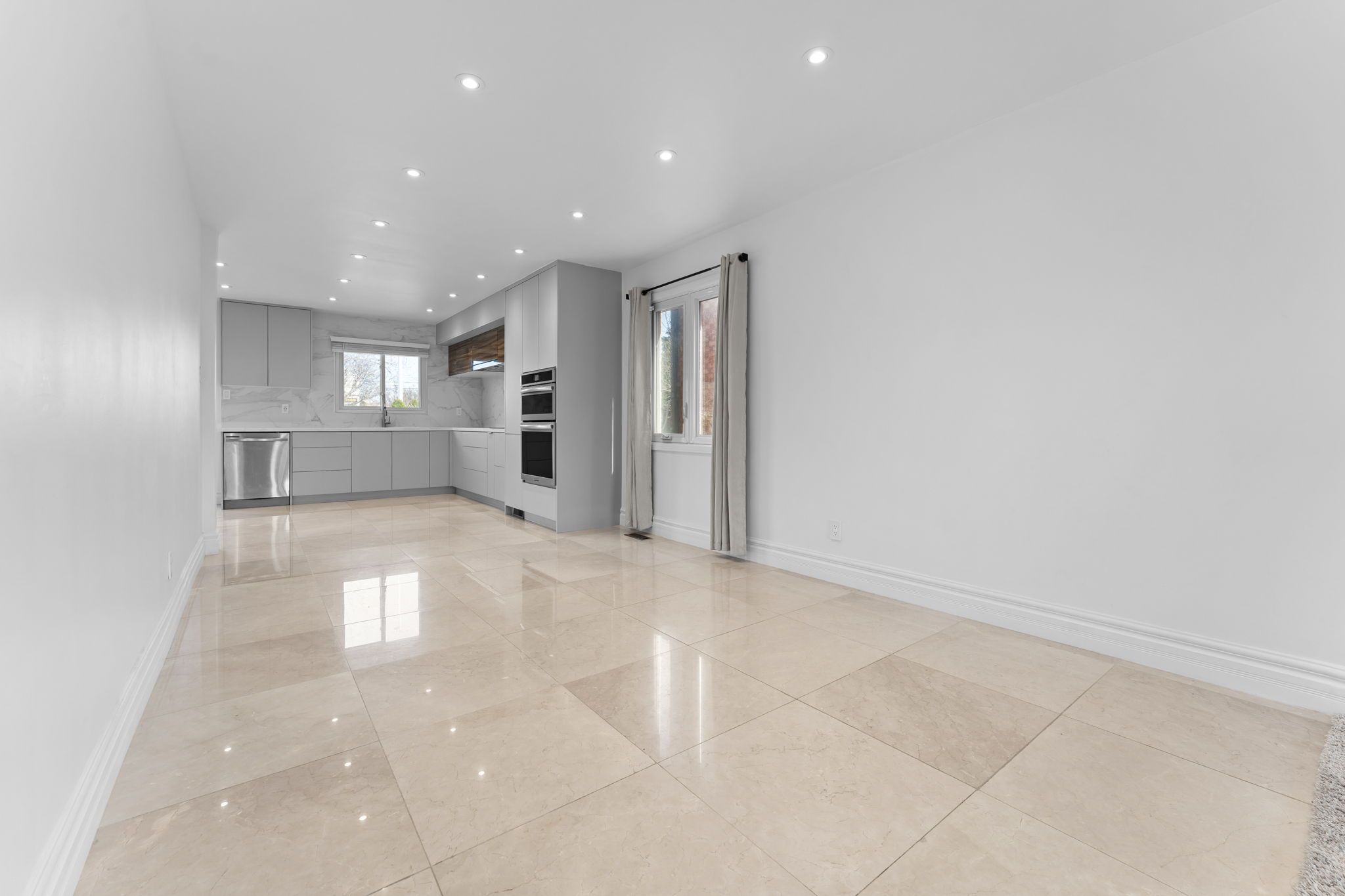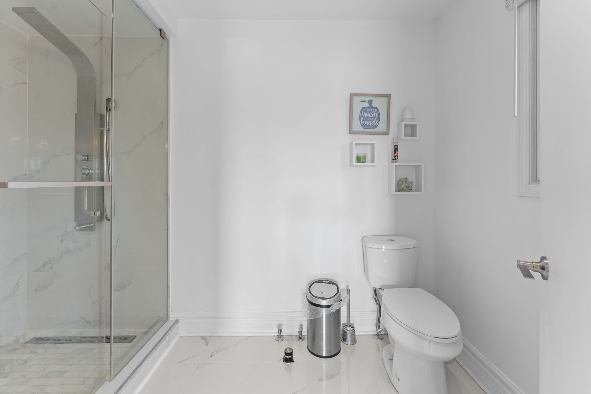 • Elegant Carrara marble main floor enhances luxury and brightness.