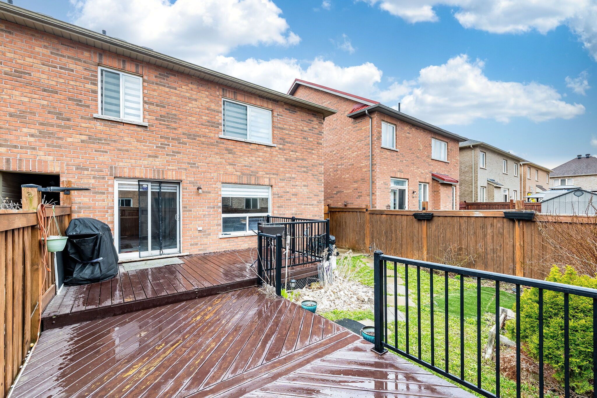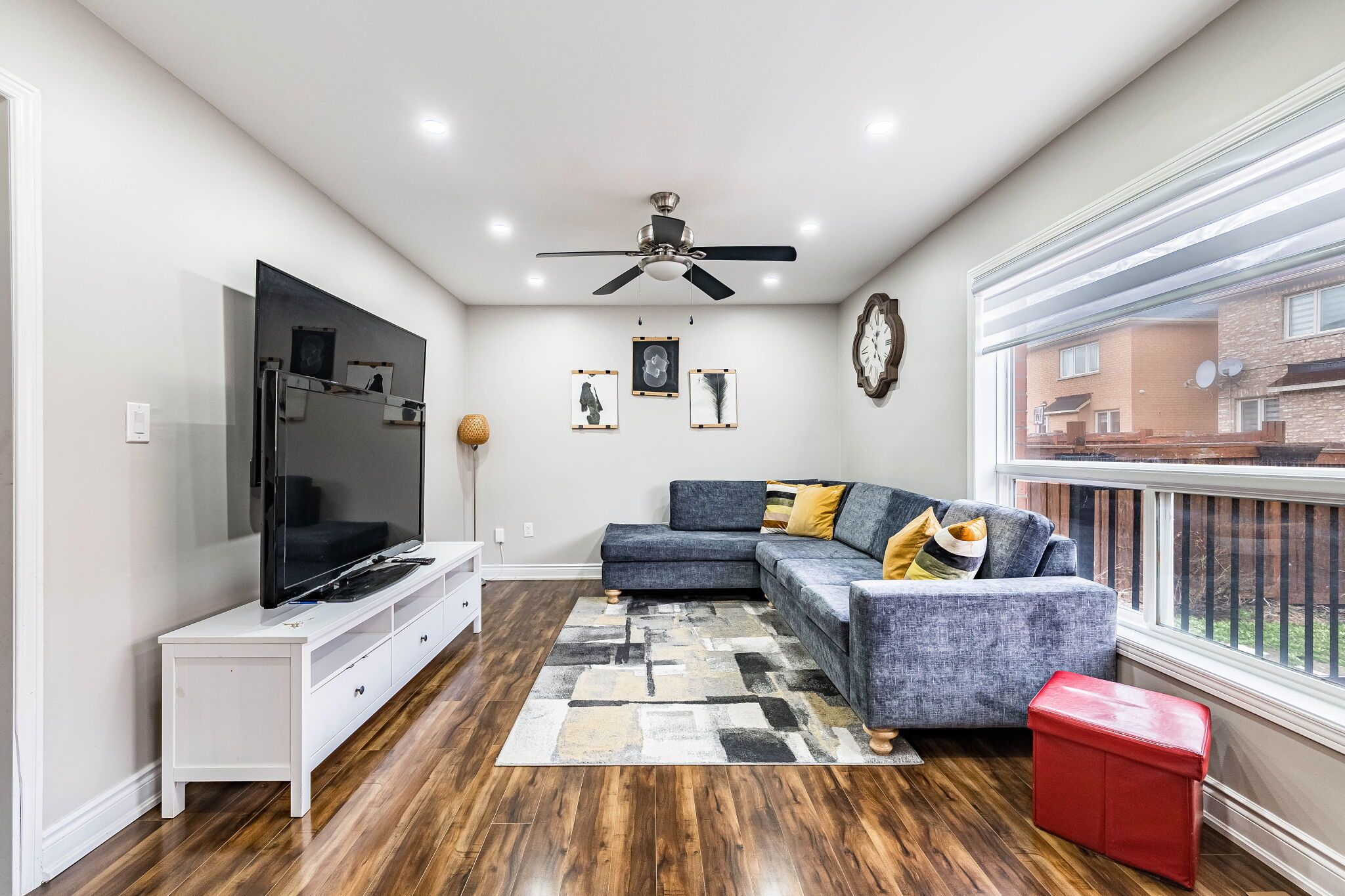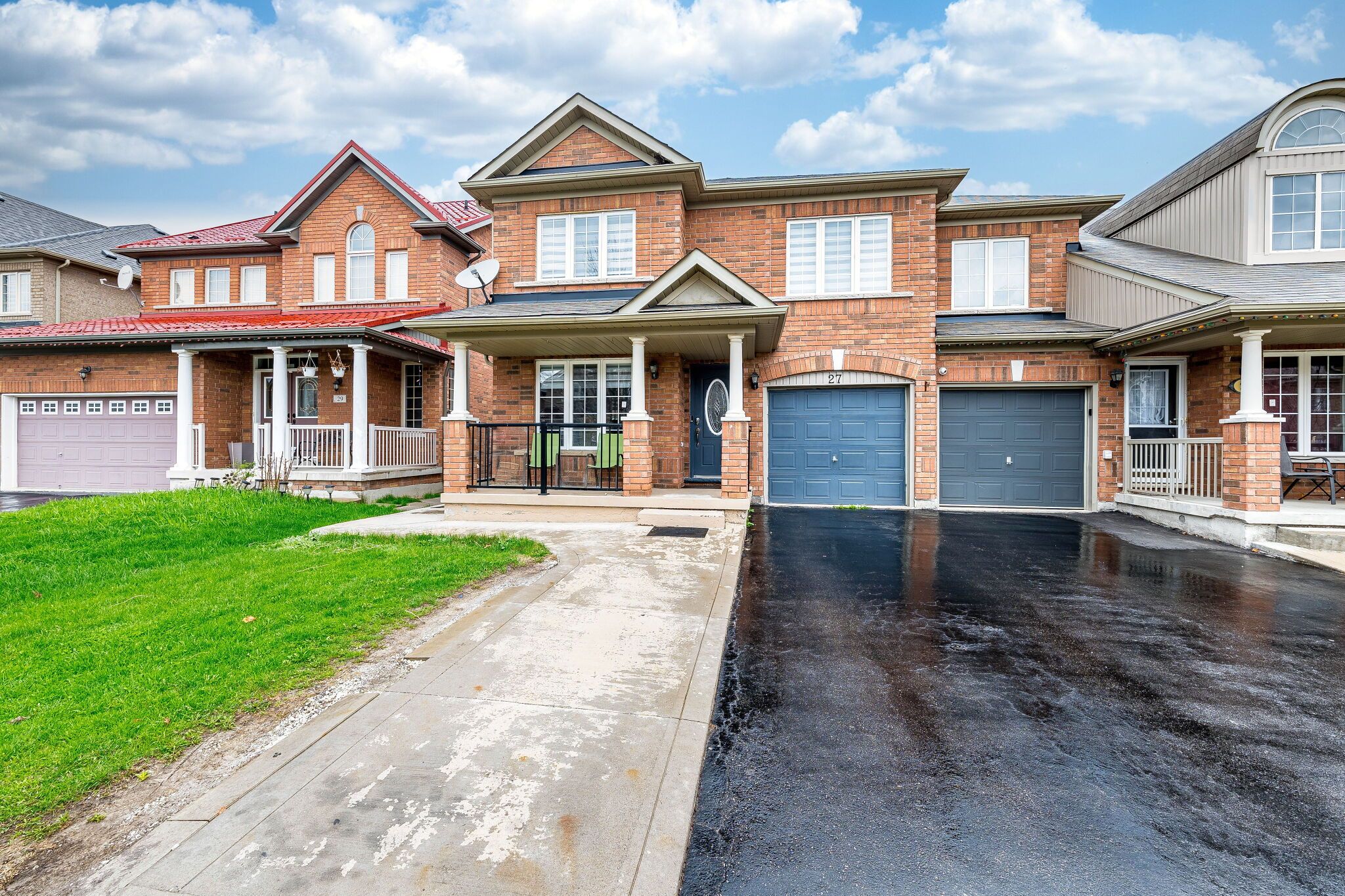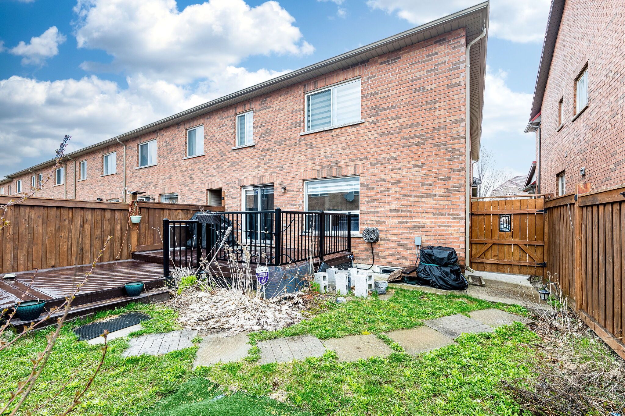 Welcome to 27 wall street in north brampton, a beautifully renovated luxury end-unit townhome offering style, comfort, and exceptional value in a desirable family-friendly location. Fully updated from top to bottom above grade, this home is truly move-in ready and designed to impress from the moment you walk in. The bright and spacious layout features separate principal rooms, modern décor, clean finishes, and a warm, inviting atmosphere throughout. With no carpet, upgraded laminate and ceramic flooring, and a stunning wraparound oak staircase, every detail has been carefully selected for both elegance and everyday function. The renovated kitchen showcases custom cabinetry, quartz countertops, stainless steel appliances, a gas stove, built-in microwave, and tasteful finishes that make the space ideal for cooking, entertaining, and family living. The luxury continues into the bathrooms, where quartz countertops add a refined and consistent touch throughout the home. Step outside to enjoy a private walk-out to a large triple-level deck and fully fenced yard, perfect for summer gatherings, quiet evenings, children, pets, or additional outdoor living space. As an end-unit townhome, this property offers extra privacy, added natural light, and a more spacious feel compared to many traditional townhomes. Additional features include a separate entrance to the garage, partial basement space, stainless steel fridge, dishwasher, washer, dryer, and major mechanicals, including the water heater, furnace, and air conditioner - all paid for. Elegant, upgraded, and ready for its next owner, 27 wall street is an excellent opportunity for buyers looking for a renovated home in north brampton with modern finishes, functional living space, and strong long-term value.
