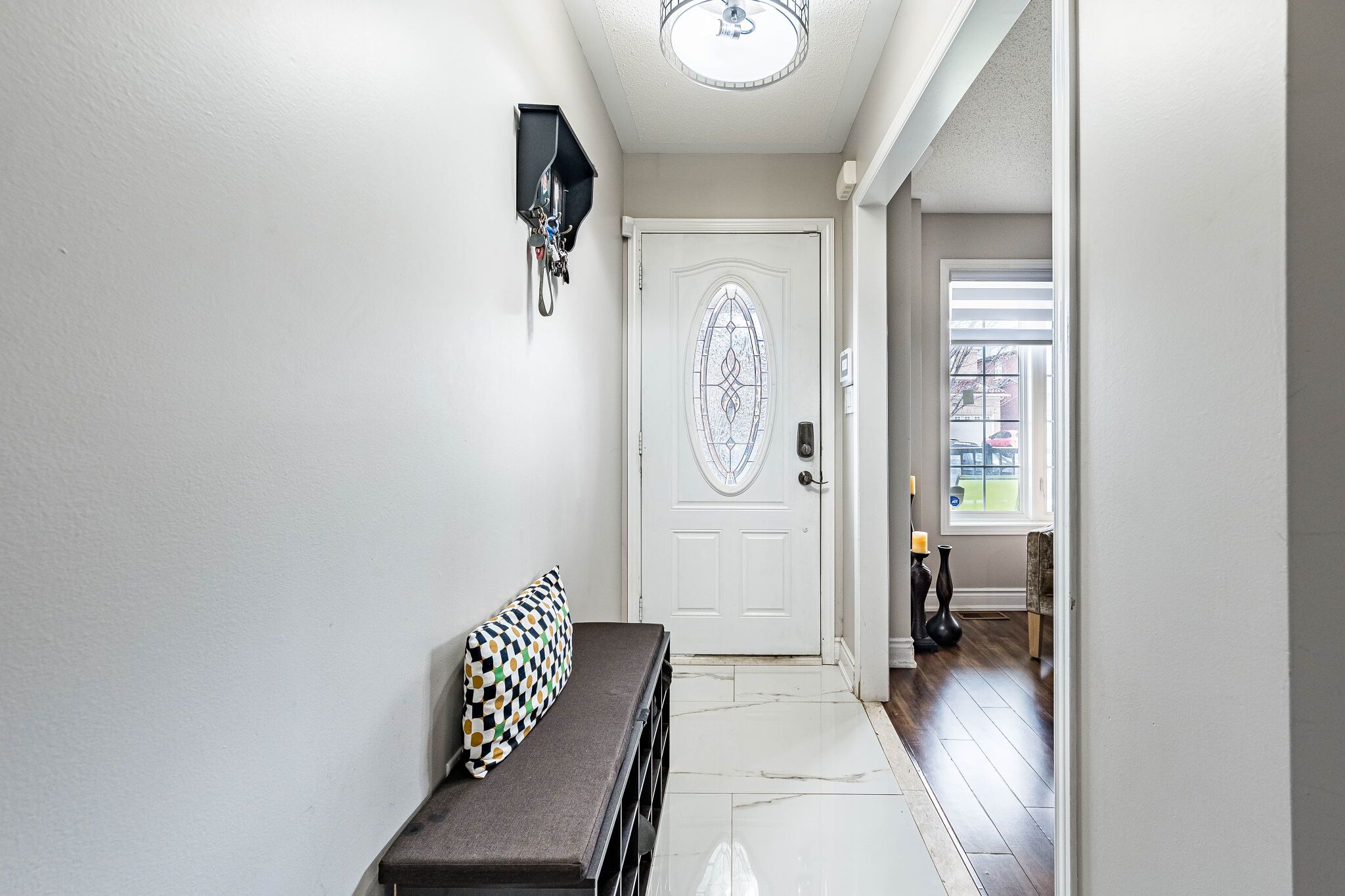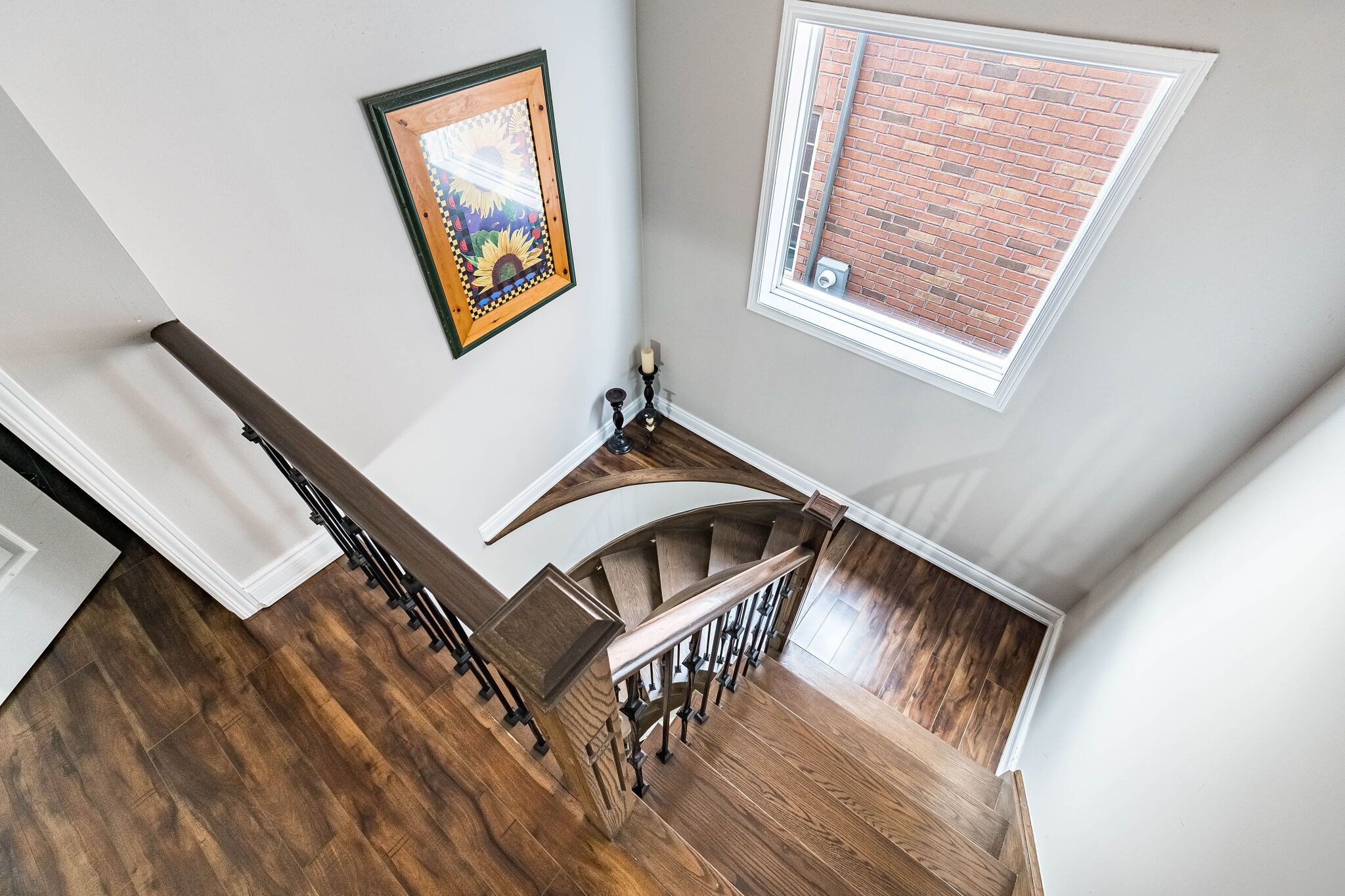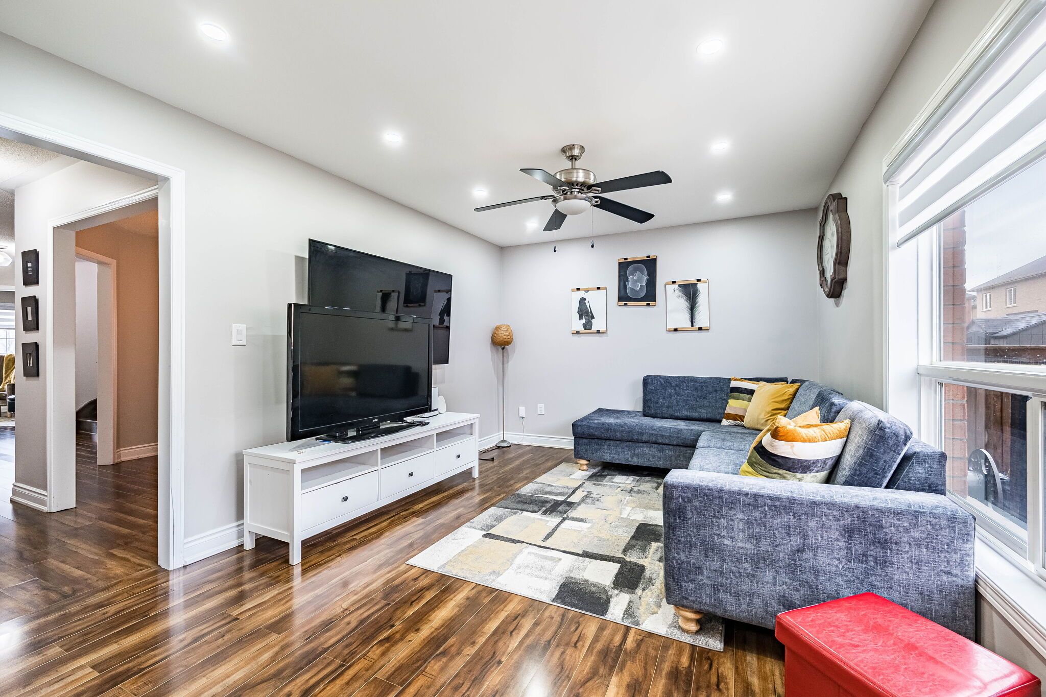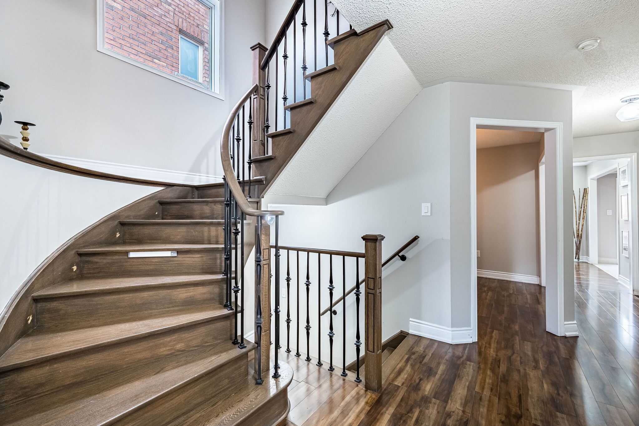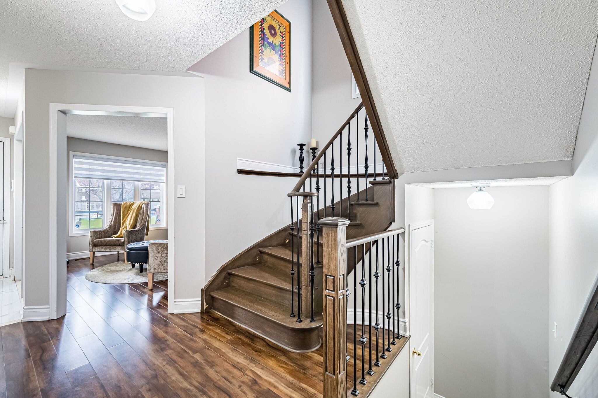Welcome to 27 wall street in north brampton, a beautifully renovated luxury end-unit townhome offering style, comfort, and exceptional value in a desirable family-friendly location. Fully updated from top to bottom above grade, this home is truly move-in ready and designed to impress from the moment you walk in. The bright and spacious layout features separate principal rooms, modern décor, clean finishes, and a warm, inviting atmosphere throughout. With no carpet, upgraded laminate and ceramic flooring, and a stunning wraparound oak staircase, every detail has been carefully selected for both elegance and everyday function. The renovated kitchen showcases custom cabinetry, quartz countertops, stainless steel appliances, a gas stove, built-in microwave, and tasteful finishes that make the space ideal for cooking, entertaining, and family living. The luxury continues into the bathrooms, where quartz countertops add a refined and consistent touch throughout the home. Step outside to enjoy a private walk-out to a large triple-level deck and fully fenced yard, perfect for summer gatherings, quiet evenings, children, pets, or additional outdoor living space. As an end-unit townhome, this property offers extra privacy, added natural light, and a more spacious feel compared to many traditional townhomes. Additional features include a separate entrance to the garage, partial basement space, stainless steel fridge, dishwasher, washer, dryer, and major mechanicals, including the water heater, furnace, and air conditioner - all paid for. Elegant, upgraded, and ready for its next owner, 27 wall street is an excellent opportunity for buyers looking for a renovated home in north brampton with modern finishes, functional living space, and strong long-term value.