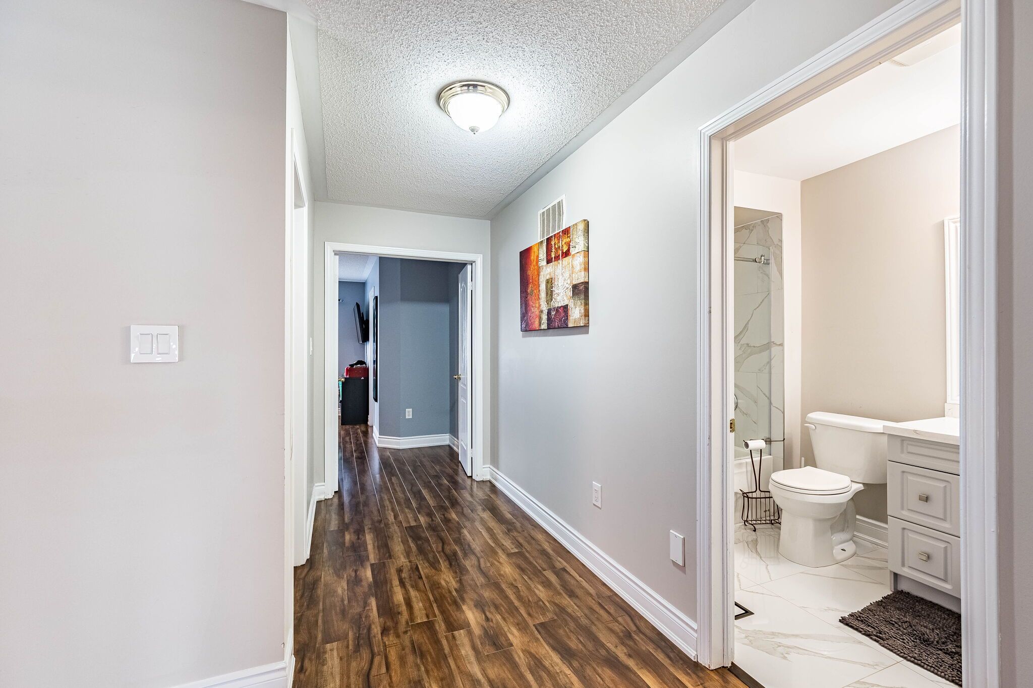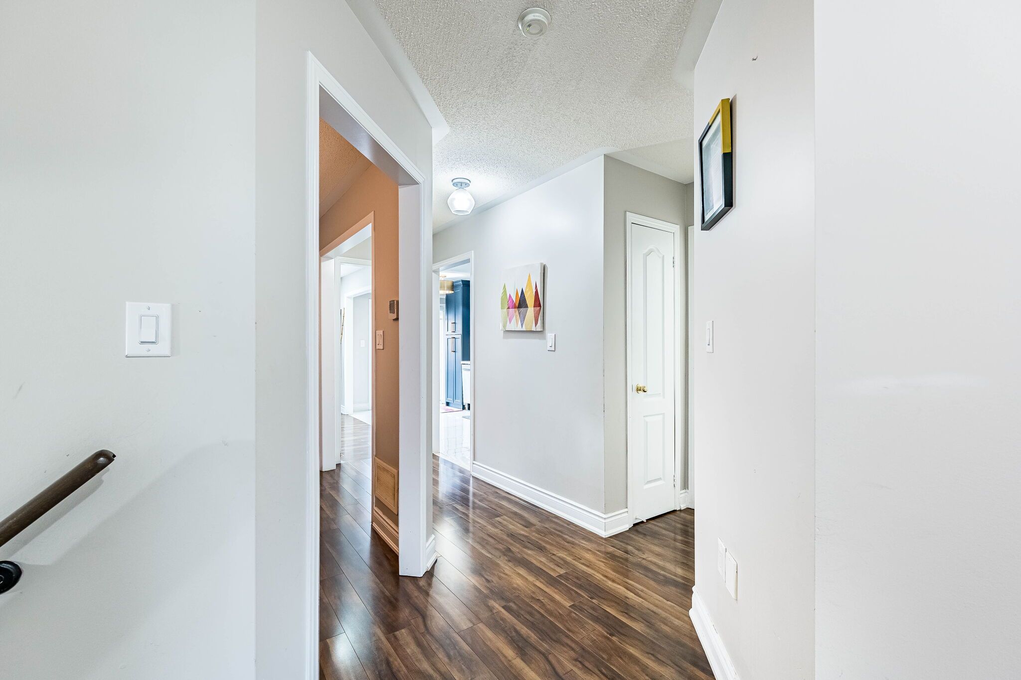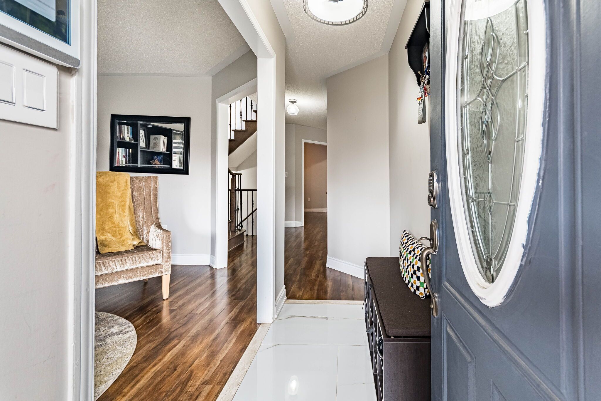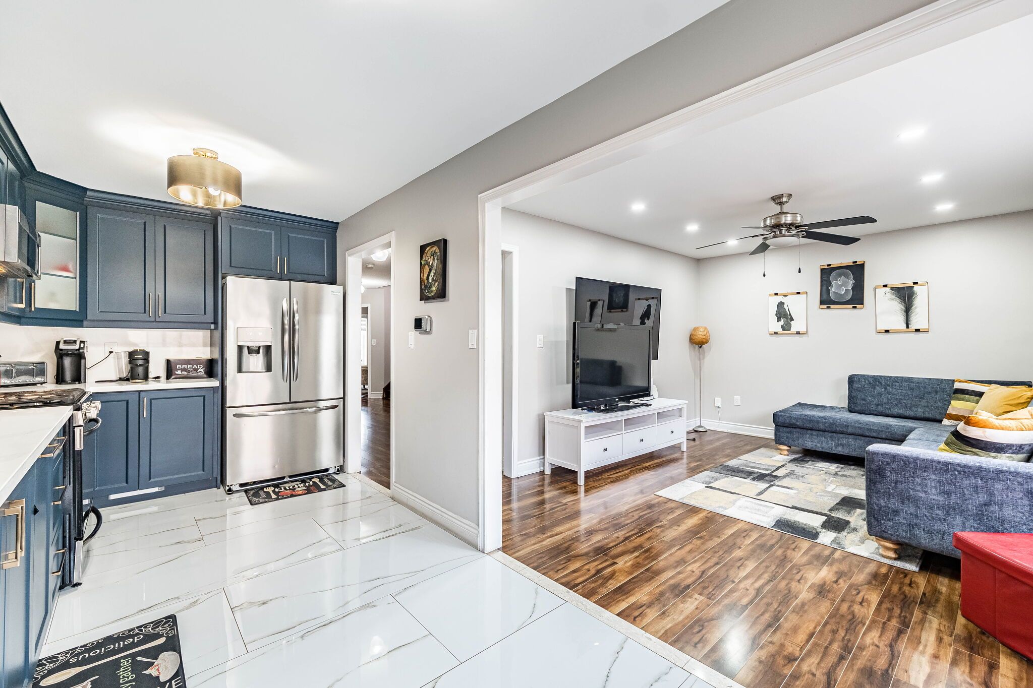 Welcome to 27 wall street in north brampton, a beautifully renovated luxury end-unit townhome offering style, comfort, and exceptional value in a desirable family-friendly location. Fully updated from top to bottom above grade, this home is truly move-in ready and designed to impress from the moment you walk in. The bright and spacious layout features separate principal rooms, modern décor, clean finishes, and a warm, inviting atmosphere throughout. With no carpet, upgraded laminate and ceramic flooring, and a stunning wraparound oak staircase, every detail has been carefully selected for both elegance and everyday function. The renovated kitchen showcases custom cabinetry, quartz countertops, stainless steel appliances, a gas stove, built-in microwave, and tasteful finishes that make the space ideal for cooking, entertaining, and family living. The luxury continues into the bathrooms, where quartz countertops add a refined and consistent touch throughout the home. Step outside to enjoy a private walk-out to a large triple-level deck and fully fenced yard, perfect for summer gatherings, quiet evenings, children, pets, or additional outdoor living space. As an end-unit townhome, this property offers extra privacy, added natural light, and a more spacious feel compared to many traditional townhomes. Additional features include a separate entrance to the garage, partial basement space, stainless steel fridge, dishwasher, washer, dryer, and major mechanicals, including the water heater, furnace, and air conditioner - all paid for. Elegant, upgraded, and ready for its next owner, 27 wall street is an excellent opportunity for buyers looking for a renovated home in north brampton with modern finishes, functional living space, and strong long-term value.