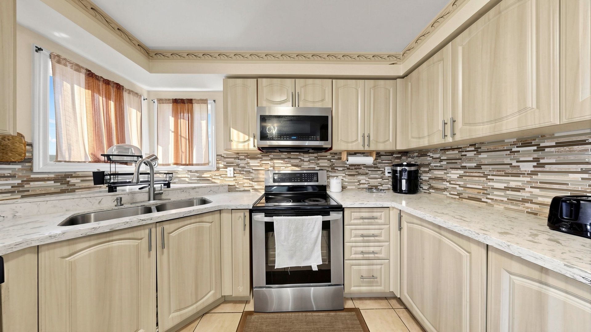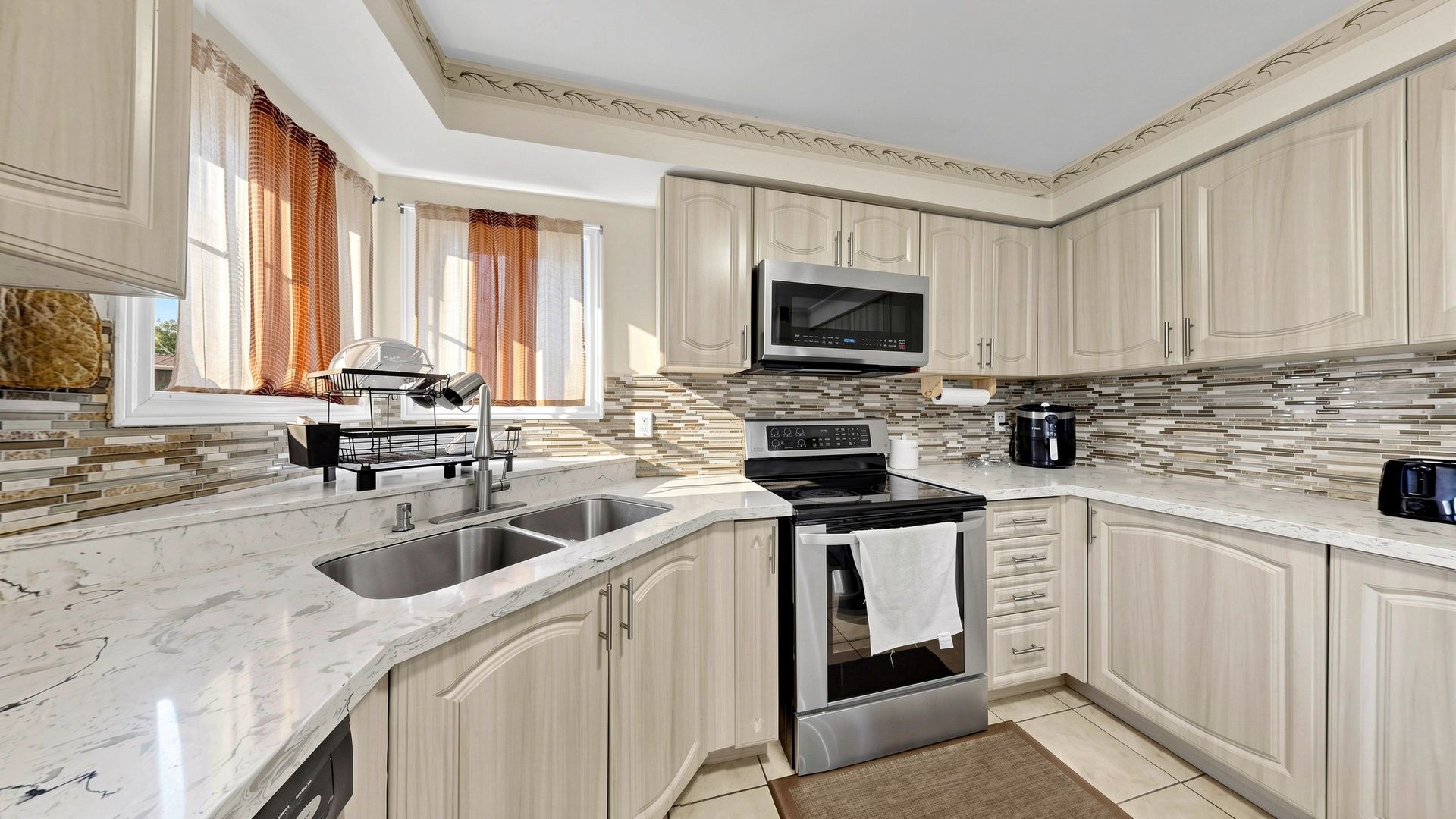 • Finished basement with separate entrance, kitchen, and bedroom.