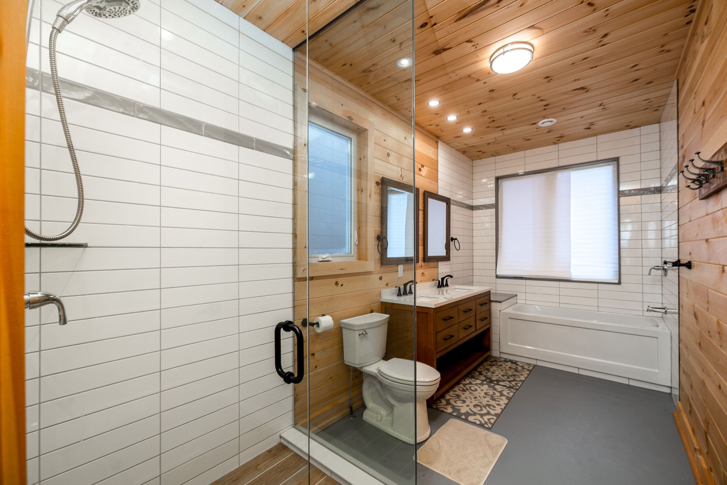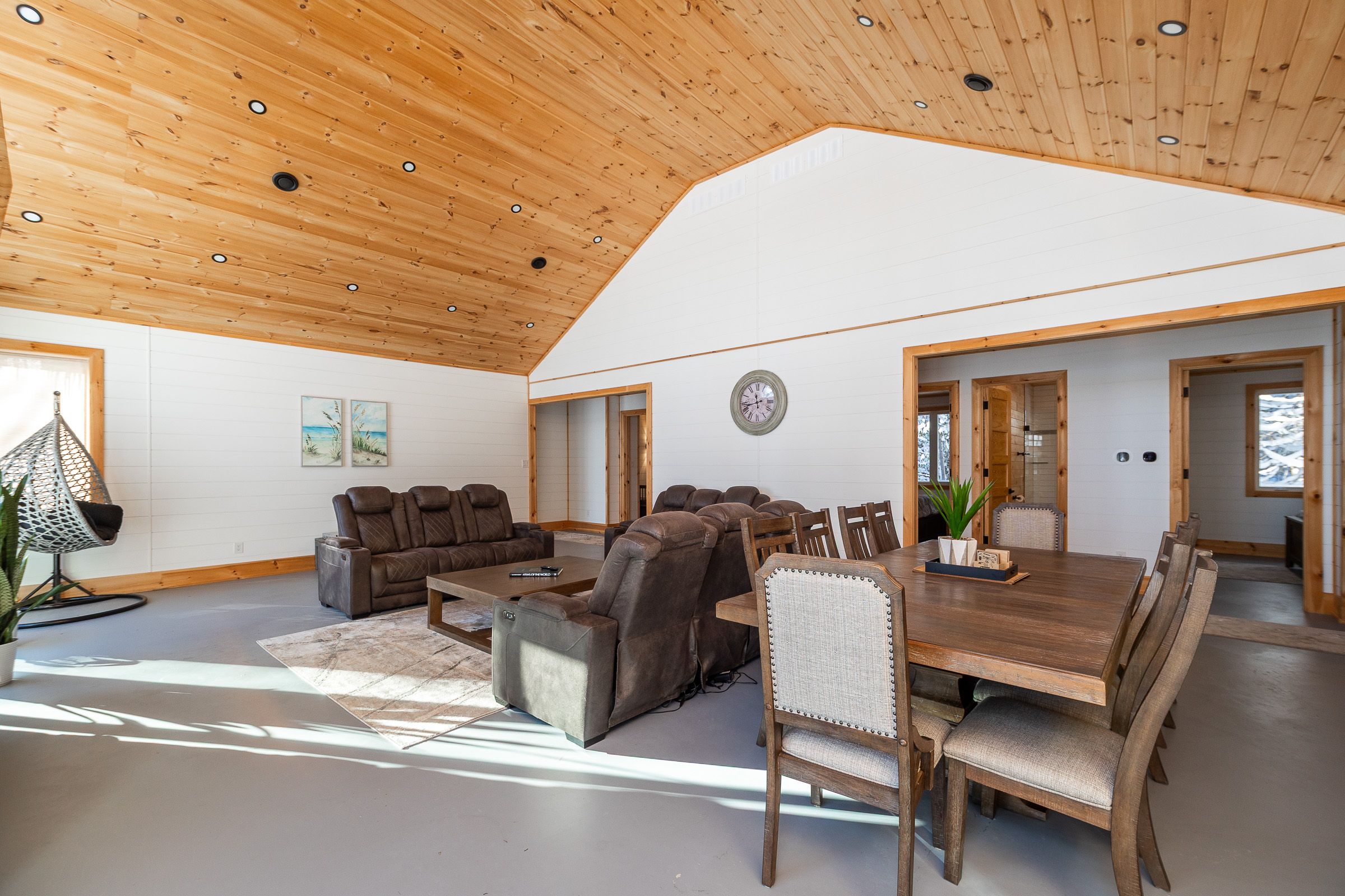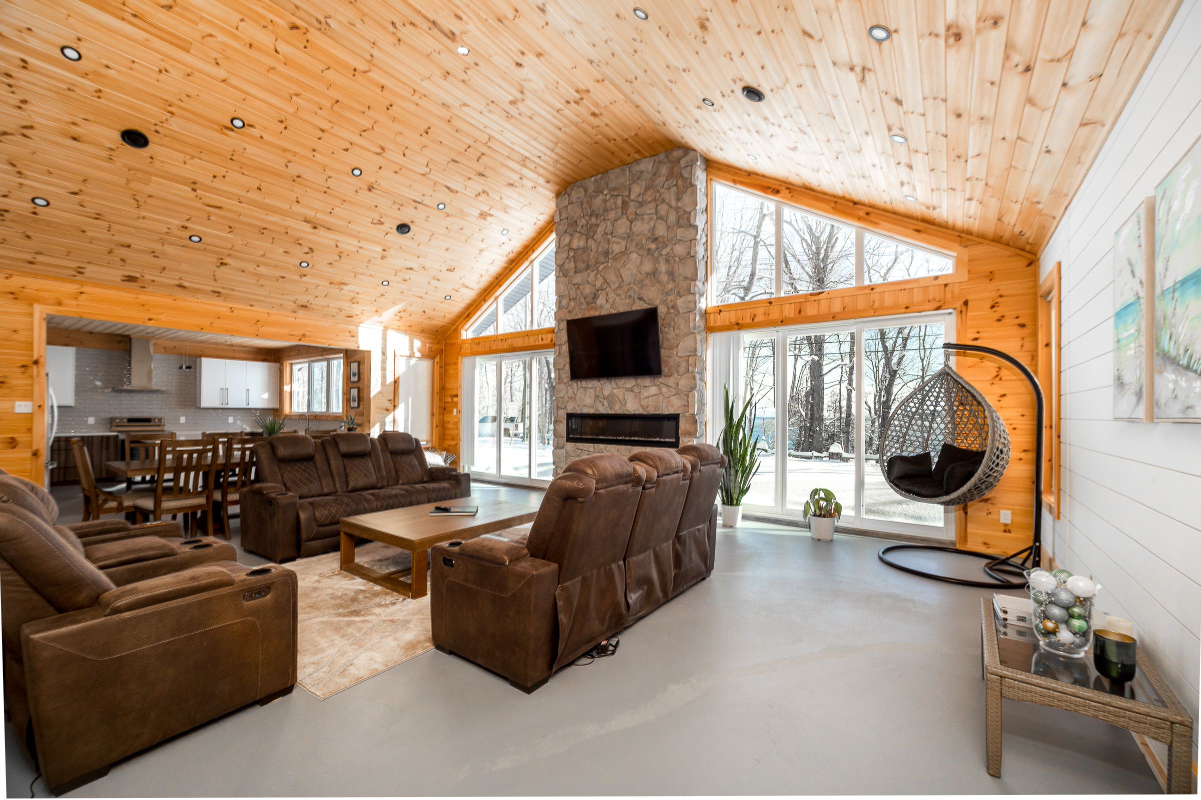 • Soaring cathedral ceilings and radiant heated floors for comfort.