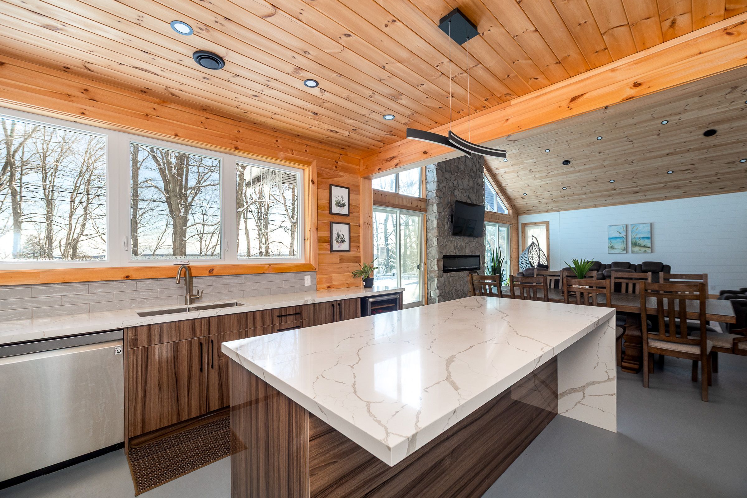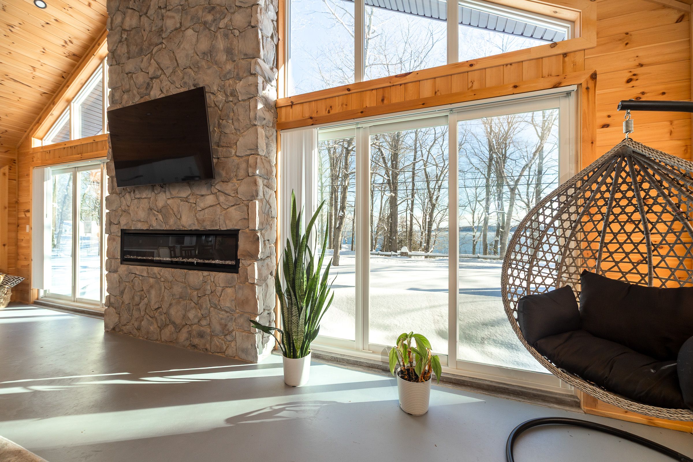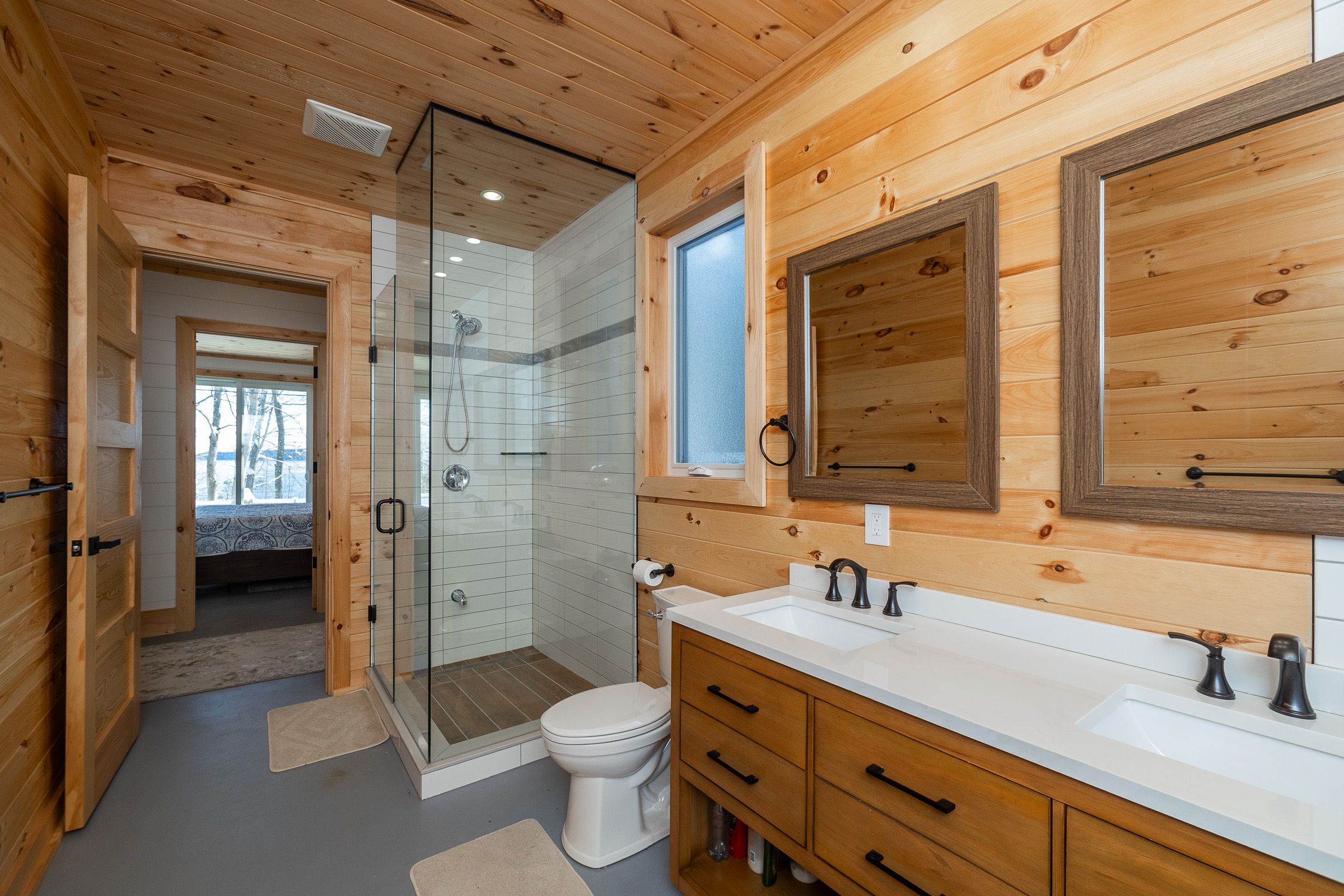 • Soaring cathedral ceilings and radiant heated floors for comfort.