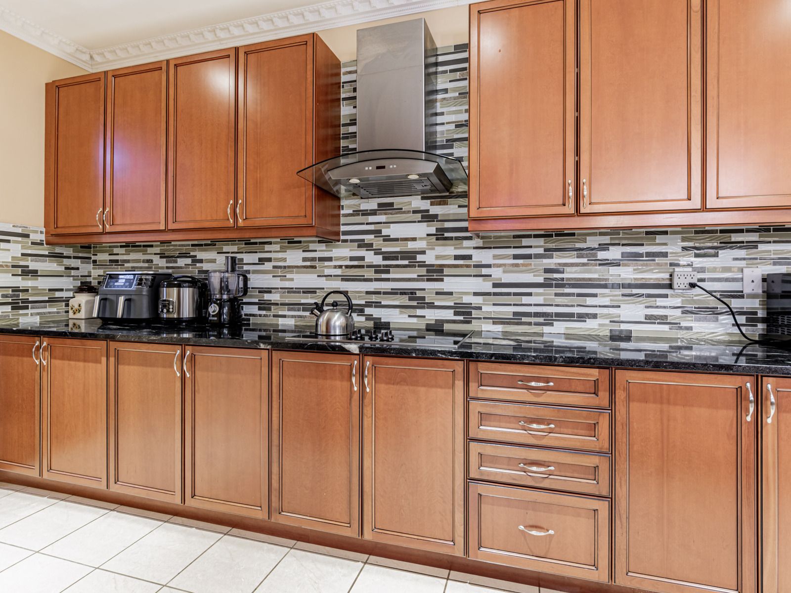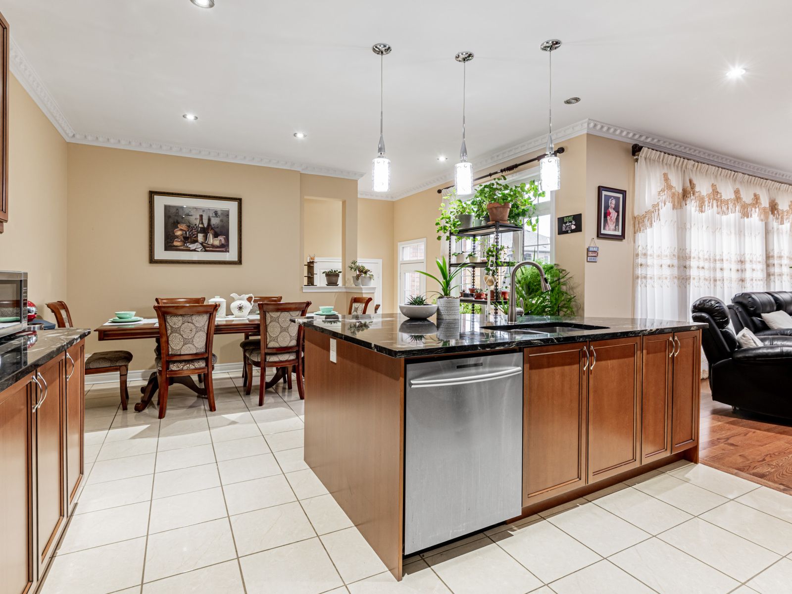 • Gourmet kitchen with extensive cabinets and an 8ft island for gatherings.