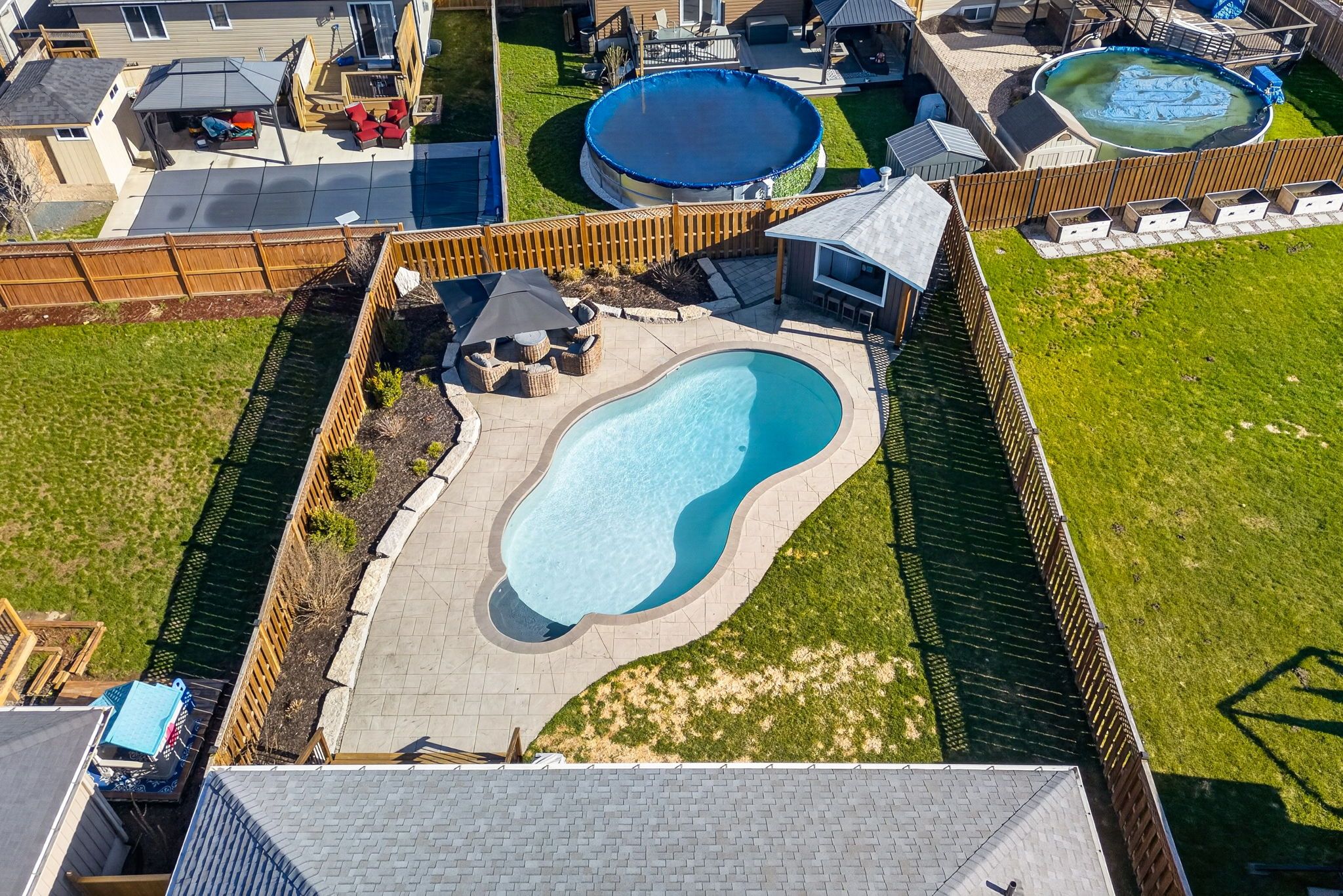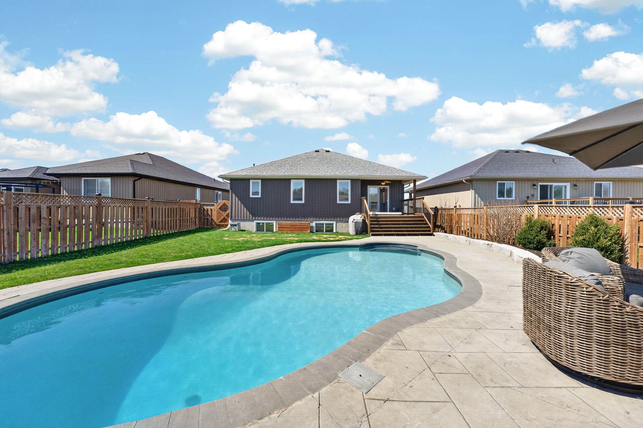Welcome to the kind of home that doesn't just check boxes... It turns heads! This stunning bungalow is the perfect blend of refined design and effortless luxury, with finishes that feel more like a boutique hotel than your typical home. From the moment you step inside you're greeted by elevated finishes that will satisfy the most discerning buyer. Sleek quartz countertops, stainless steel appliances and a custom backsplash anchor the kitchen, while designer wallpaper and light fixtures add personality and depth in all the right places. Builder finished top to bottom with 4 bedrooms and 3 bathrooms, the layout is as functional as it is beautiful! Two gas fireplaces - one on each level - bring warmth and ambiance whether you're hosting or unwinding. The primary ensuite? Freshly transformed into what feels indulgent, calming, and just a little bit addictive. Downstairs, the massive rec room is anything but an afterthought. Oversized windows pour in natural light, creating a bright, open space perfect for movie nights, a home gym, or hosting guests without ever feeling like a basement. Step outside and things get even sweeter. Your private backyard oasis is designed to impress and unwind in equal measure - featuring a heated saltwater in-ground pool, a poolside bar for effortless entertaining, and a covered deck with a sunken hot tub that sets the scene for long summer nights and slow weekend mornings. Professionally landscaped with an in-ground sprinkler system, it's low maintenance and high impact. All of it set on a quiet street in the sought-after brookshire meadows subdivision - where lifestyle, convenience, and location come together effortlessly. This isn't just a home, it is a total vibe! **a full video tour, additional photos + virtual 3d tour are available using the media link!**