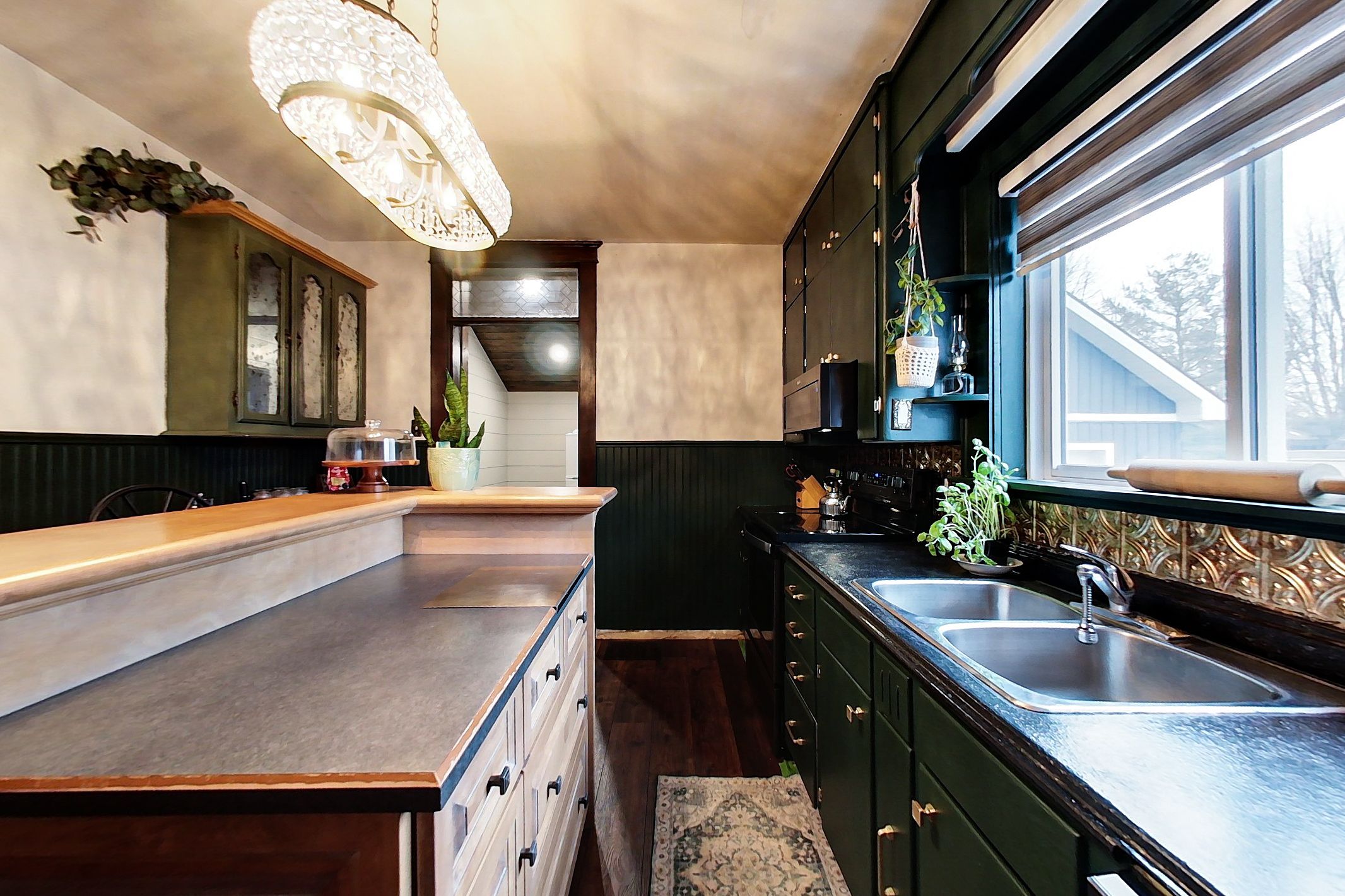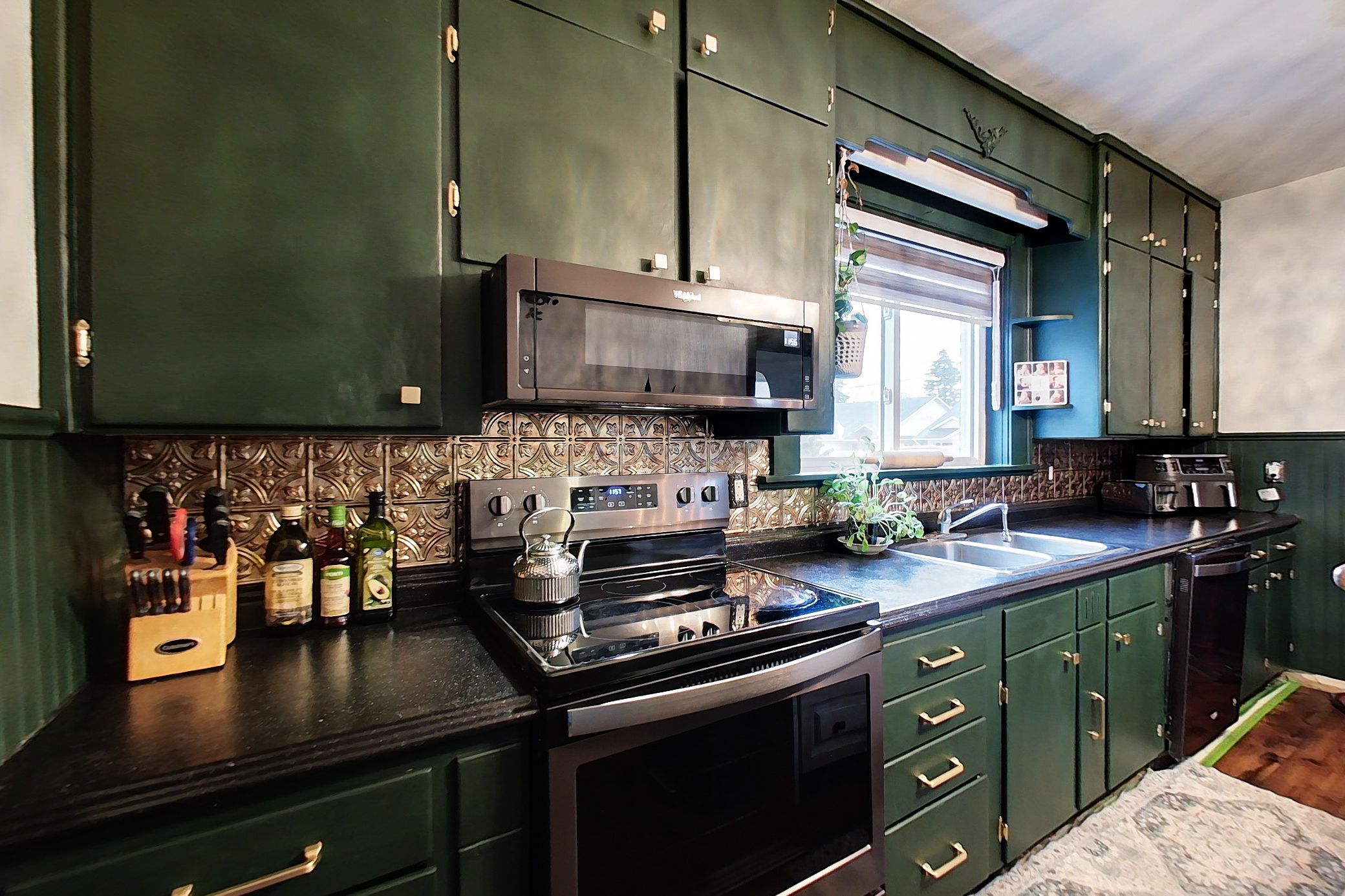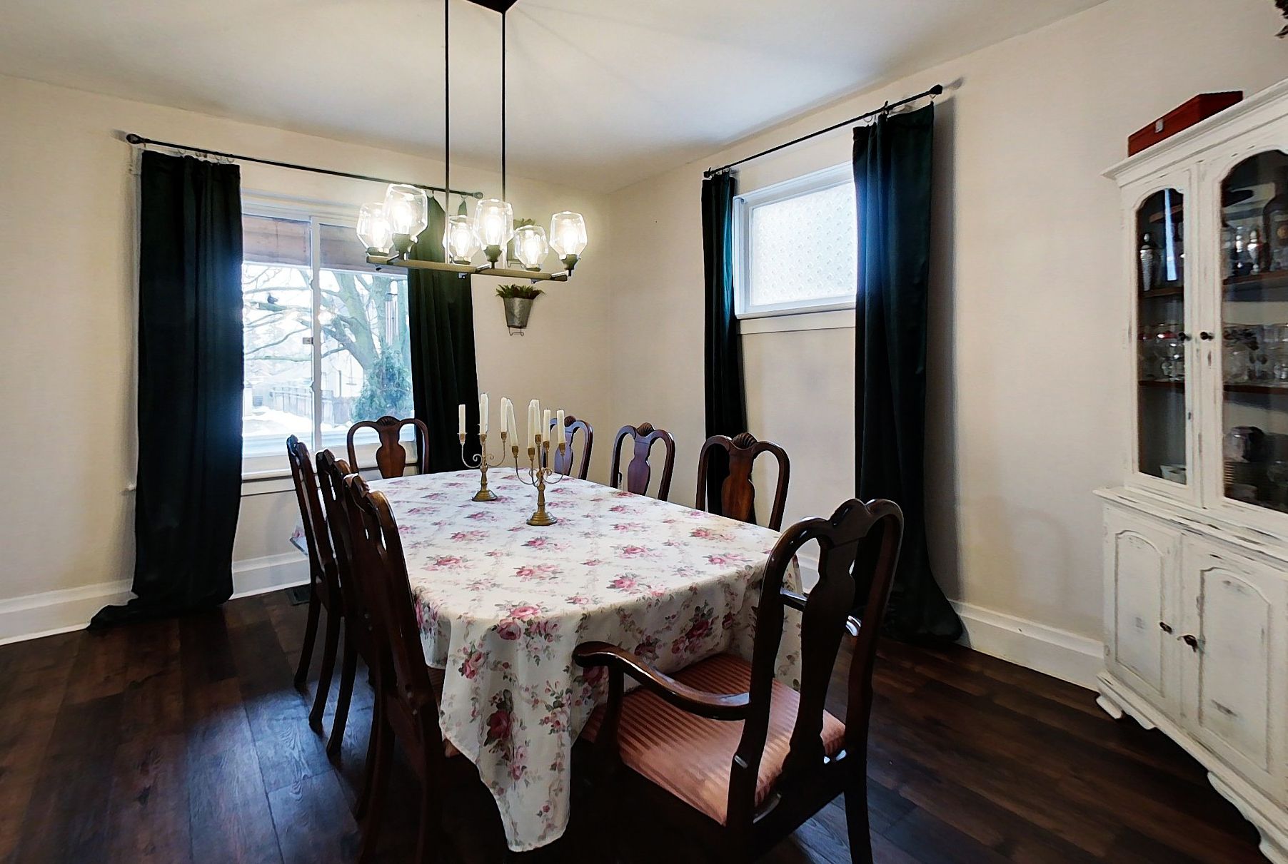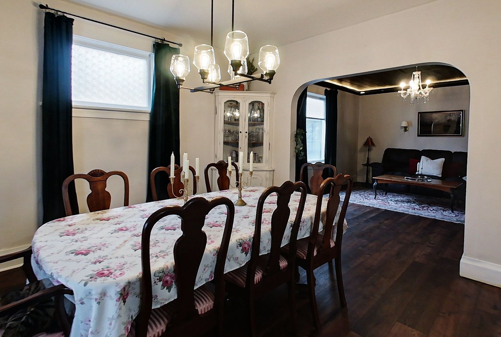 • Spacious main floor with updated kitchen, living room, and dining area.