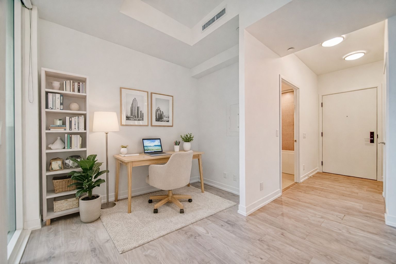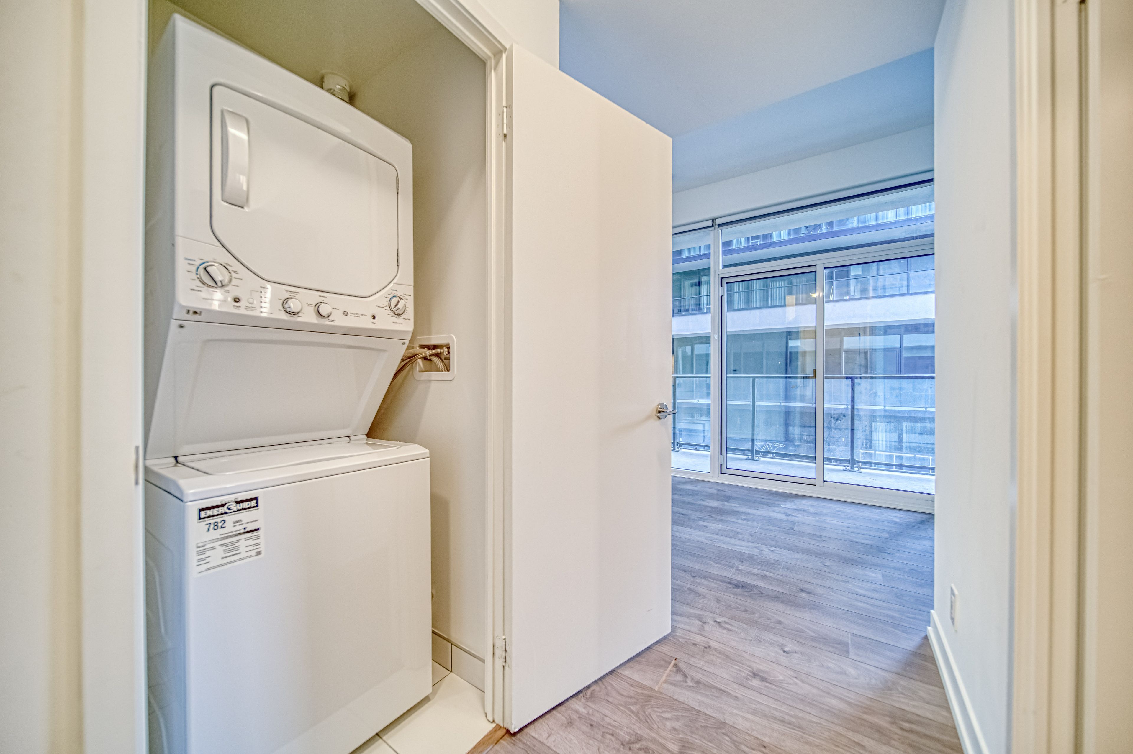 Stylish and functional 1 bedroom plus 1 den and 1 bathroom suite at xo condos, located at 270 dufferin st in the vibrant king & dufferin neighbourhood, offering modern comfort and unbeatable urban convenience. This bright south-facing unit features an efficient open-concept layout, a contemporary kitchen with sleek finishes, a spacious living area, and a huge private balcony perfect for relaxing and enjoying sunset views. The bedroom is well-sized with ample natural light, creating a warm and inviting space. Enjoy exceptional building amenities including a fully equipped gym, 24-hour concierge, co-working space, dining room, outdoor terrace, lounge, yoga studio, bbq area, party room, and gaming room. With a perfect transit score, this location places you just steps from the 24-hour king streetcar and dufferin bus, ensuring effortless commuting throughout the city. Xo condos sits at the crossroads of liberty village, king west, and queen west, giving residents walkable access to some of toronto's most desirable destinations, trendy restaurants, stylish boutiques, entertainment, bmo field, and the greenery of trinity bellwoods park. Offering modern living, outstanding amenities, and unmatched connectivity, this suite is ideal for those seeking a vibrant and convenient downtown lifestyle. Some photos have been virtually staged. Furniture and décor shown are for illustration purposes only and do not represent the current condition of the property.