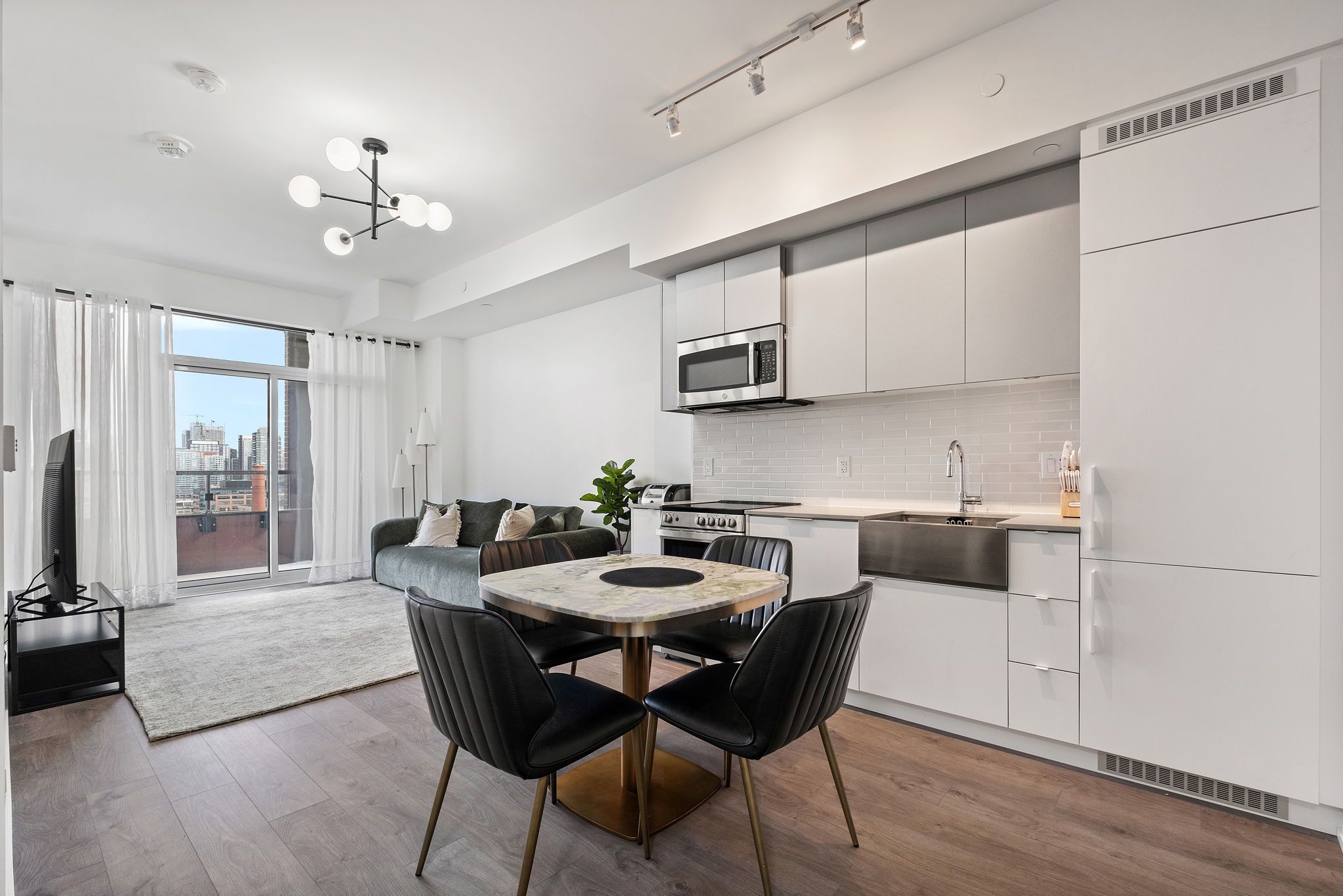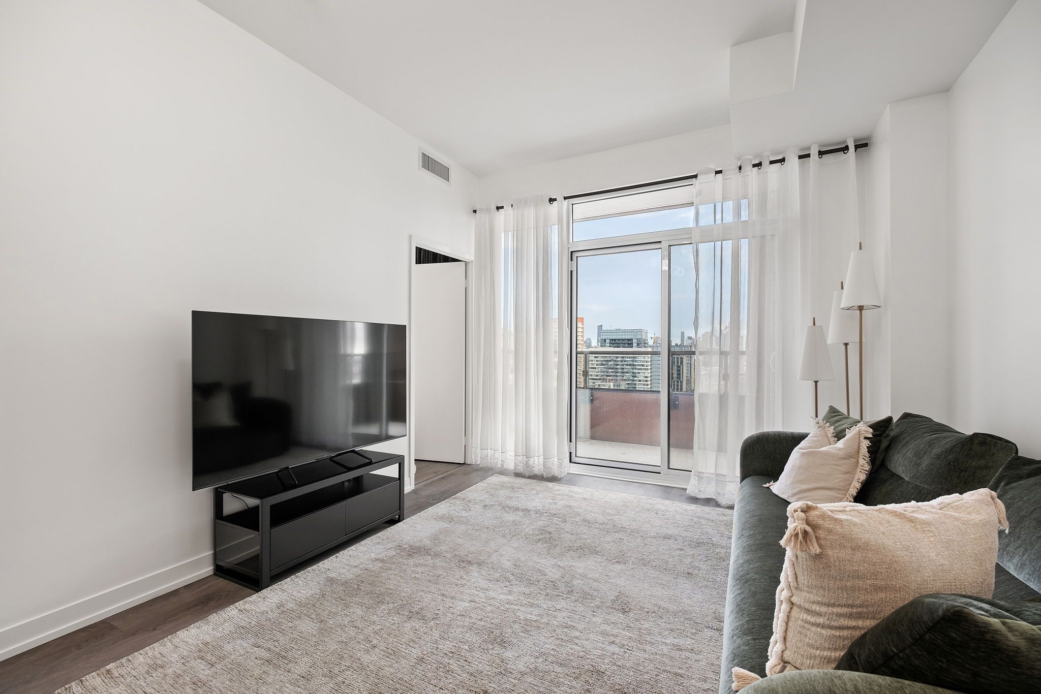 • Building amenities include a gym, yoga room, and beautiful outdoor spaces.