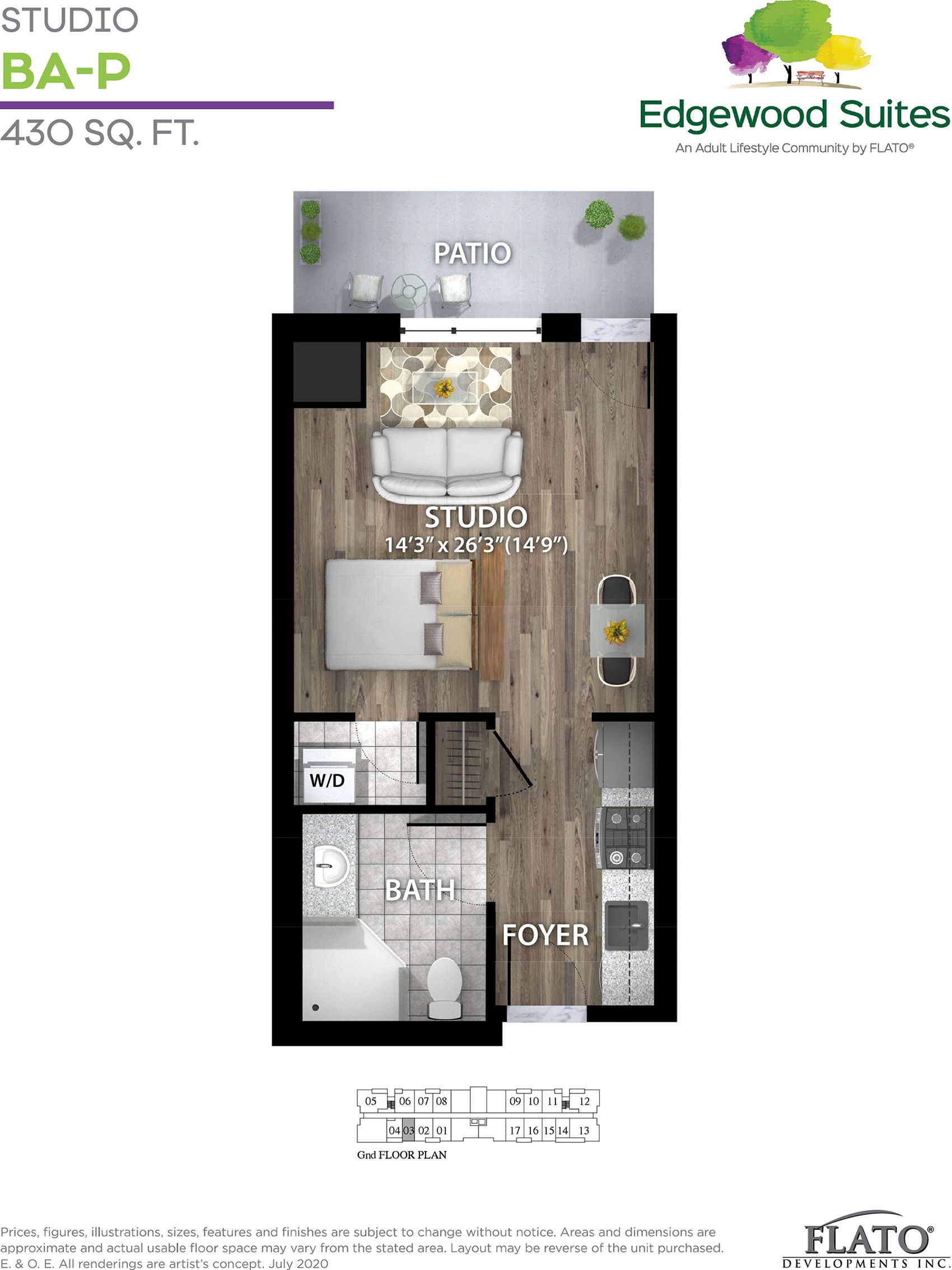 Adult 55+ ground floor studio/batchelor apartment w/patio,430 sq ft edgewood suites adult lifestyle apartments the heart of dundalk. This is a studio apartment on the ground floor, other units also available, choose from other studio rentals and one bedroom apartments. Beautiful building with tile floors, carpet free, common area building amenities, games room, kitchen /dining/ gathering room, faith room, library, gym, guest suite, 2 patios one with bbq gazebo, concierge. Cable/internet package available directly from supplier. Parking is also available for extra $35. 00 per month