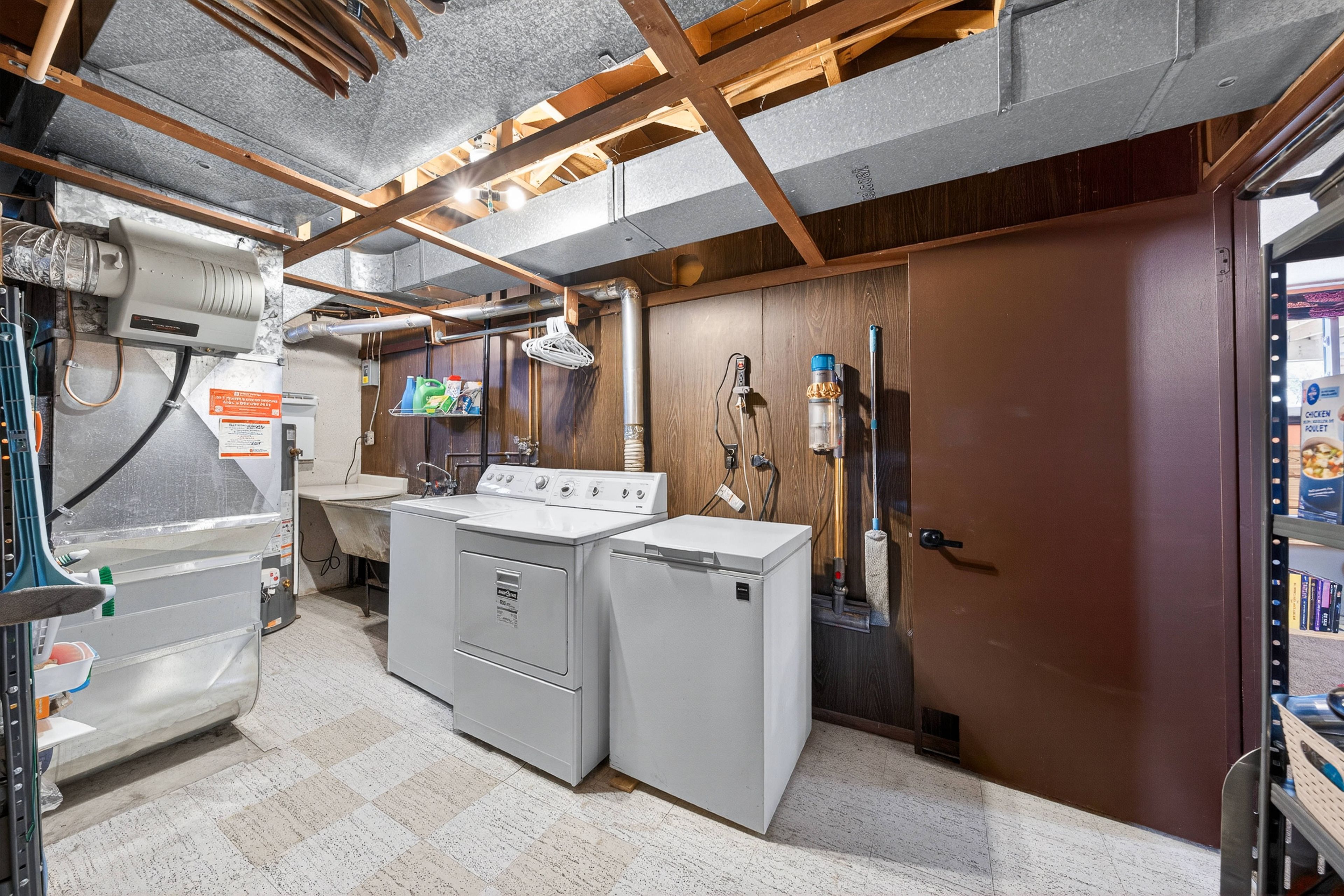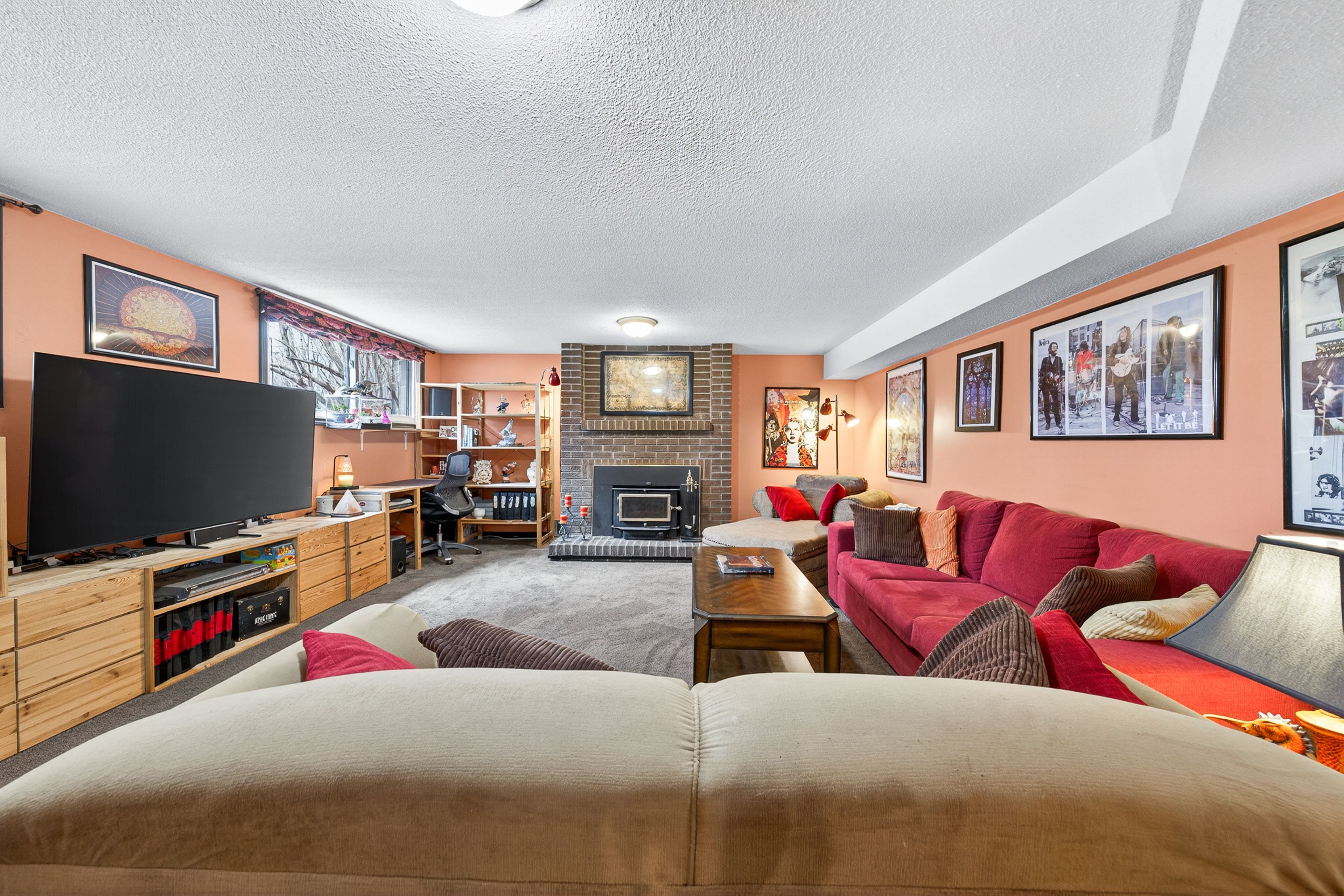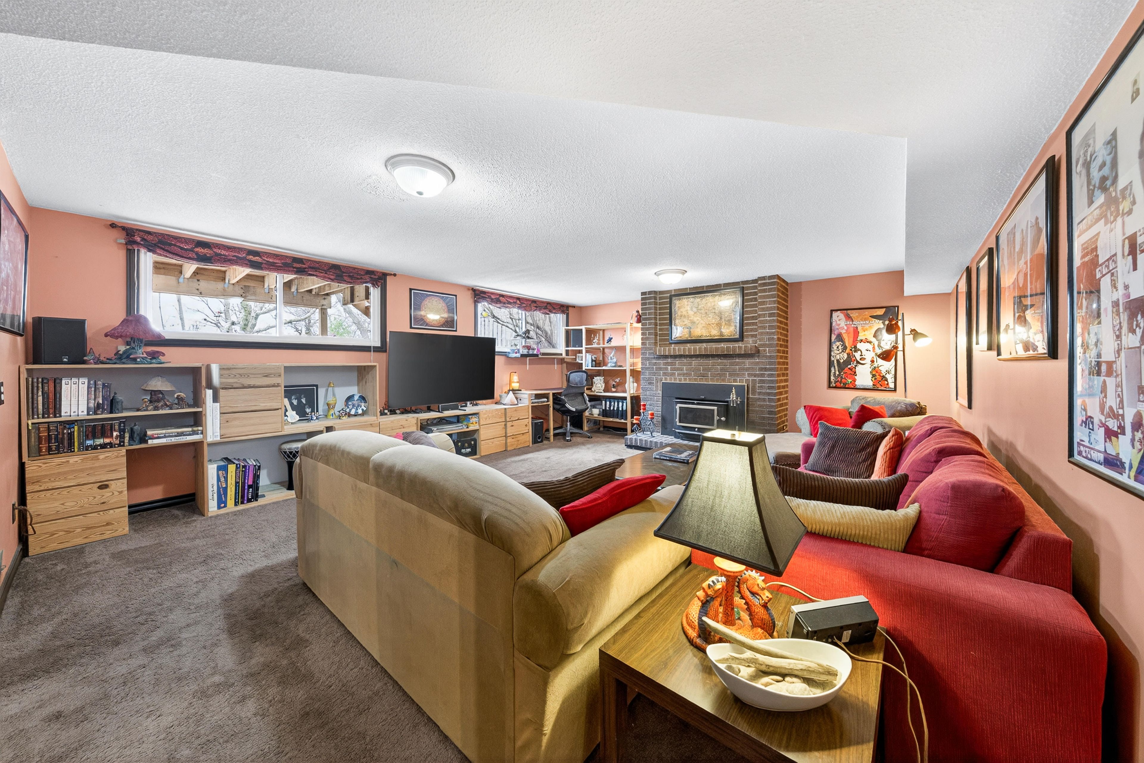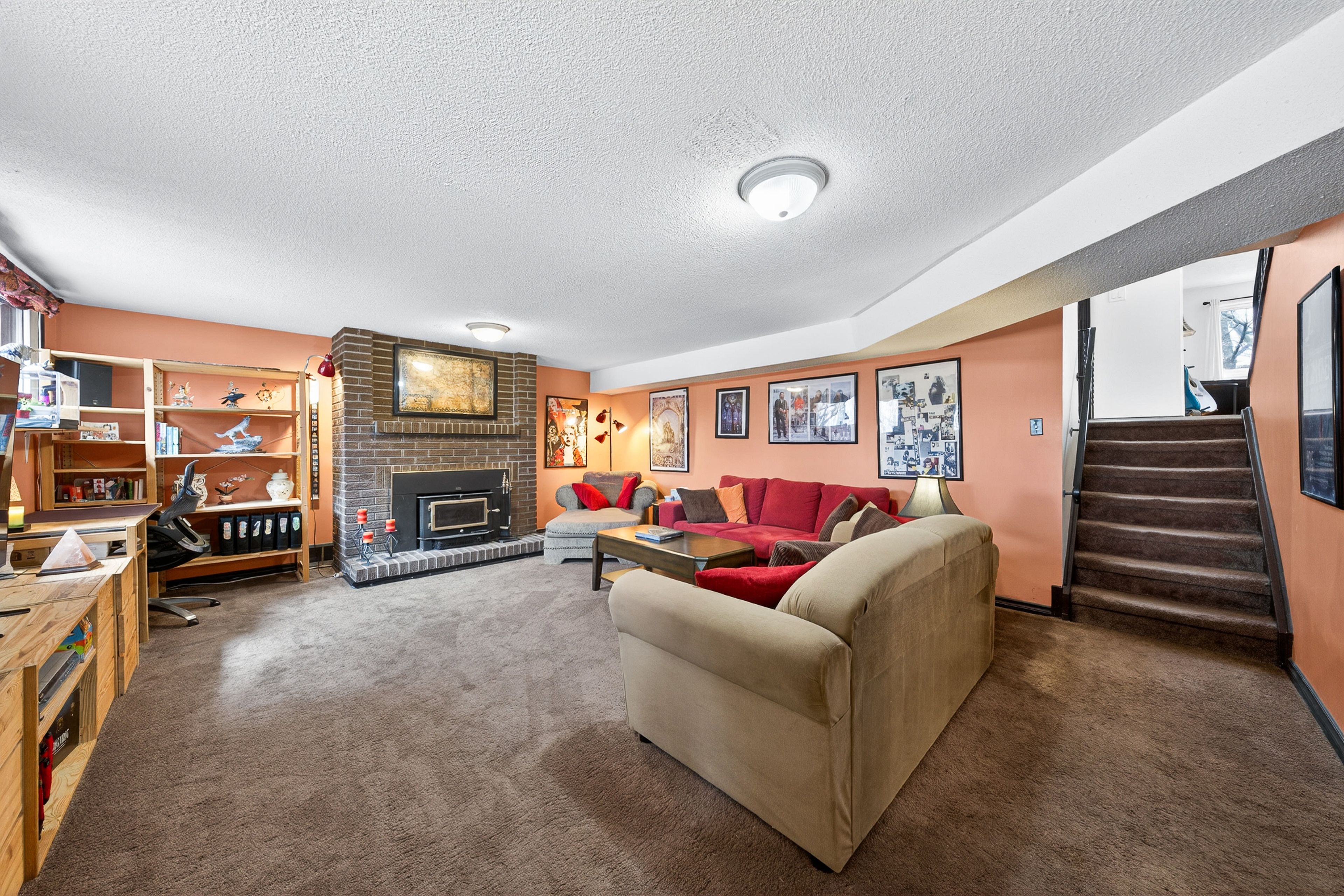 • Finished basement with a rec room, extra bedroom, and powder room.