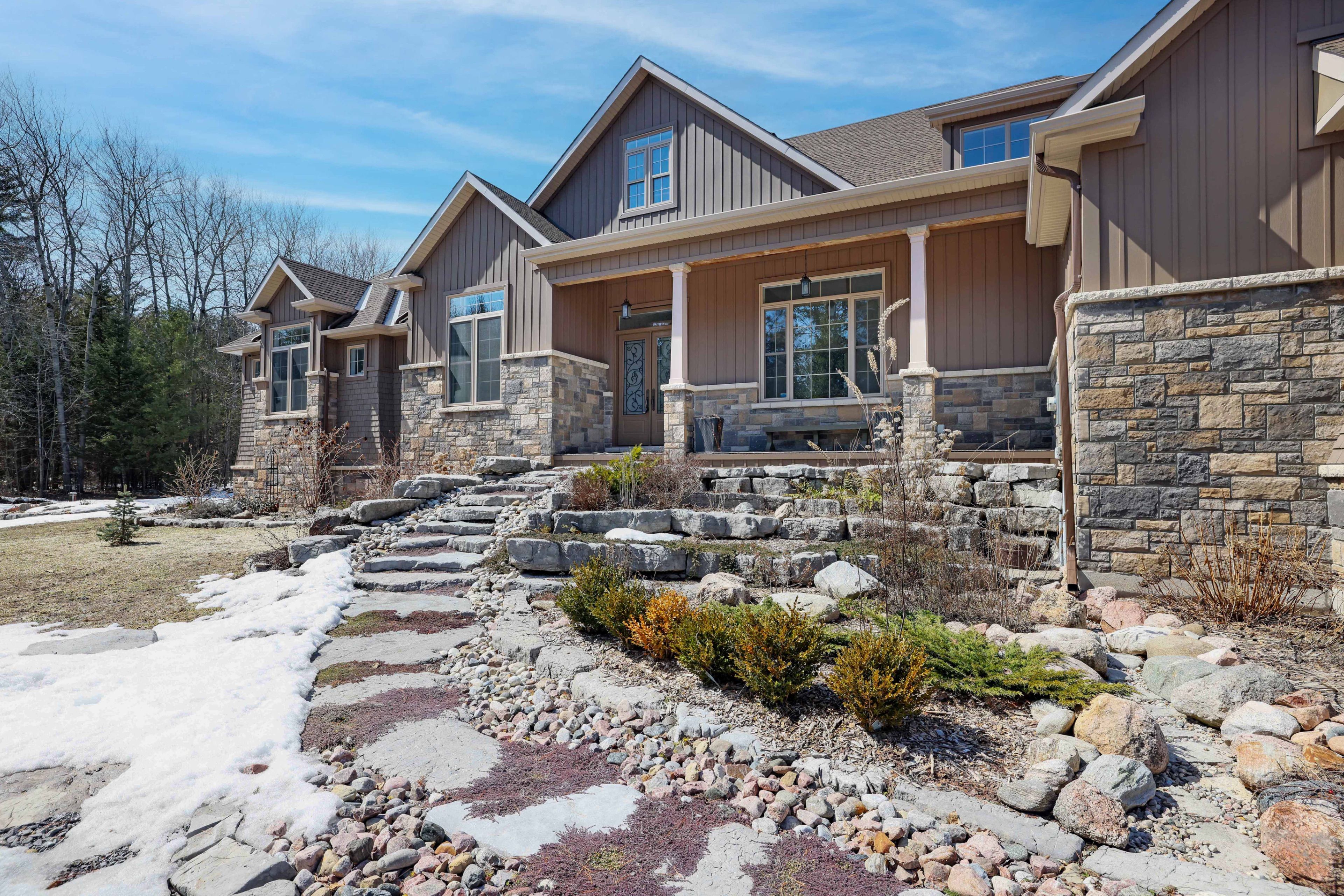 A very special property. This highly customized home was carefully crafted by the home owners with no detail overlooked. High ceilings in the primary living spaces have interesting detail with slopes and contrasting material to draw the eye upward. This is a true 4 bedroom large footprint bungalow. The primary bedroom and two others each has an ensuite bathroom. This kitchen is beautiful, detailed, and very much a chef's delight. The great room is just that! Grand in scale but warmed by the woodburning fireplace to keep the home cozy. Formal dining room at the front of the house has southfacing views. Screened porch is a must for a rural property to extend the seasons. Unspoiled lower level is wide open, to allow your imagination to roam as to how you might want to use this space with very high ceilings. Oversized 3 bay garage. Foundation is icf for the best insulation a foundation can have. The site is 4. 31 acres of woods with trails throughout. Location is very important - maclarens landing residents have an opportunity to share in a private neighbourhood beach for only $50 per year. Less than 15 minutes to arnprior with many amenities, 20 minutes to kanata north. Treat your family to this welcoming community and a home with true lifestyle possibilities.