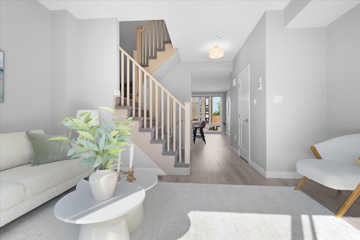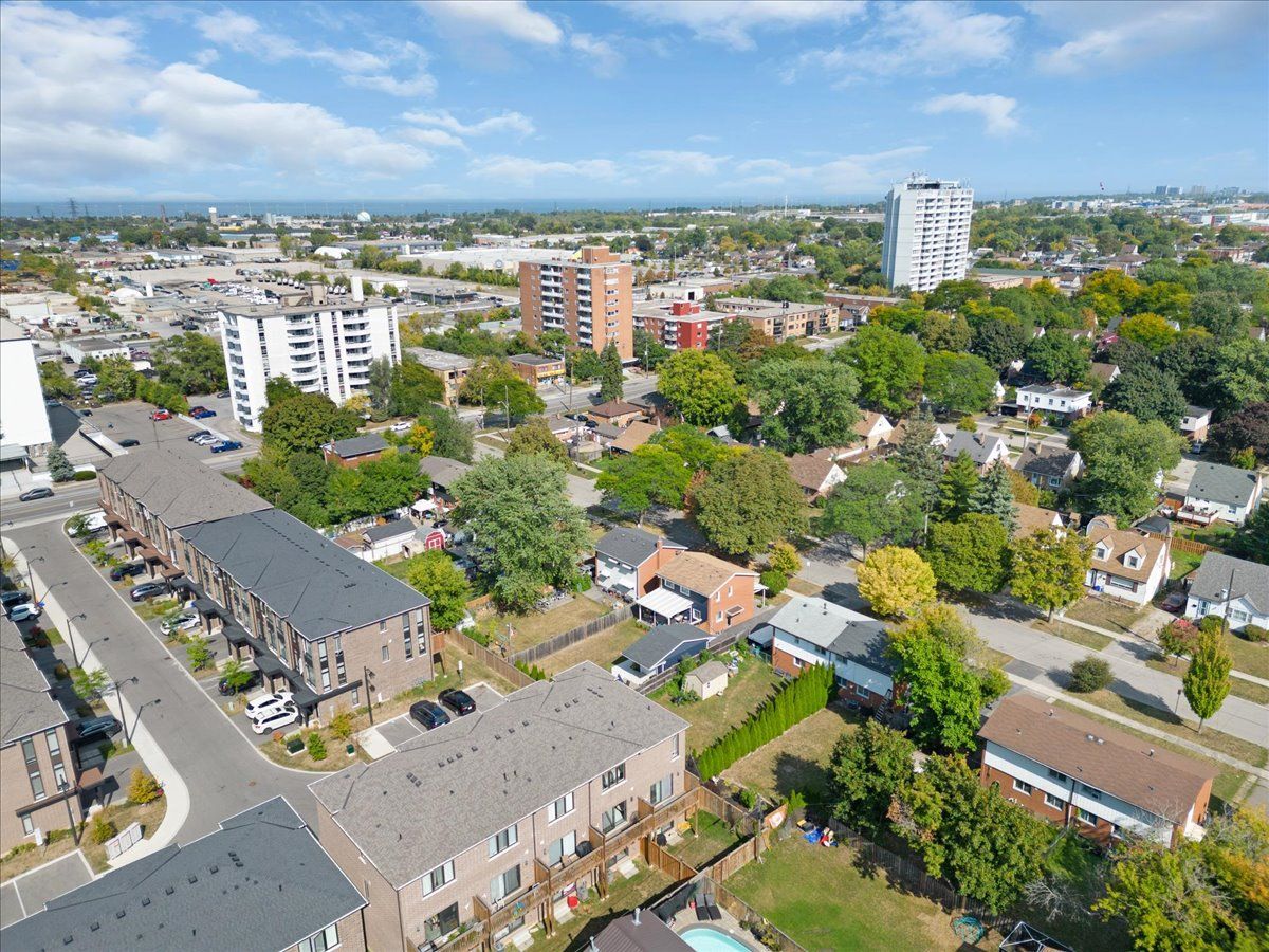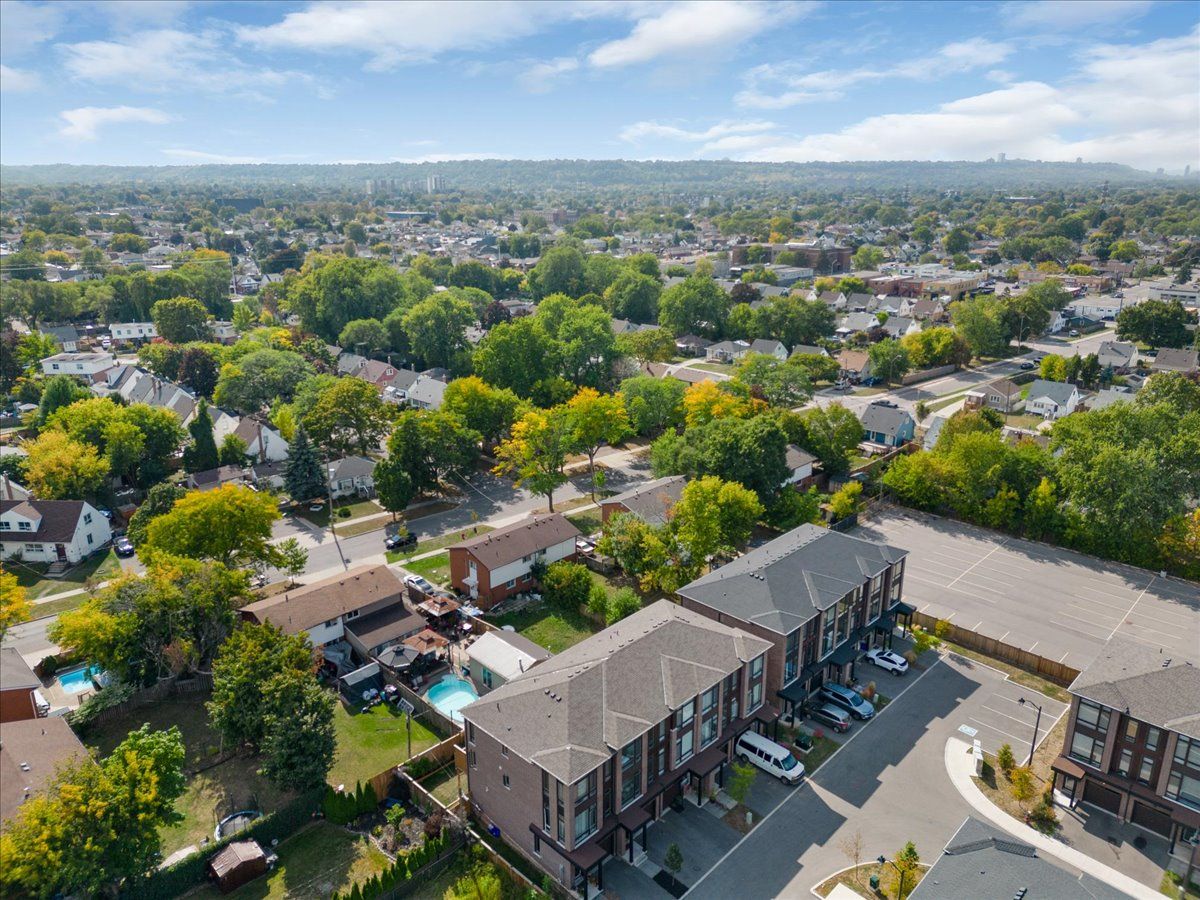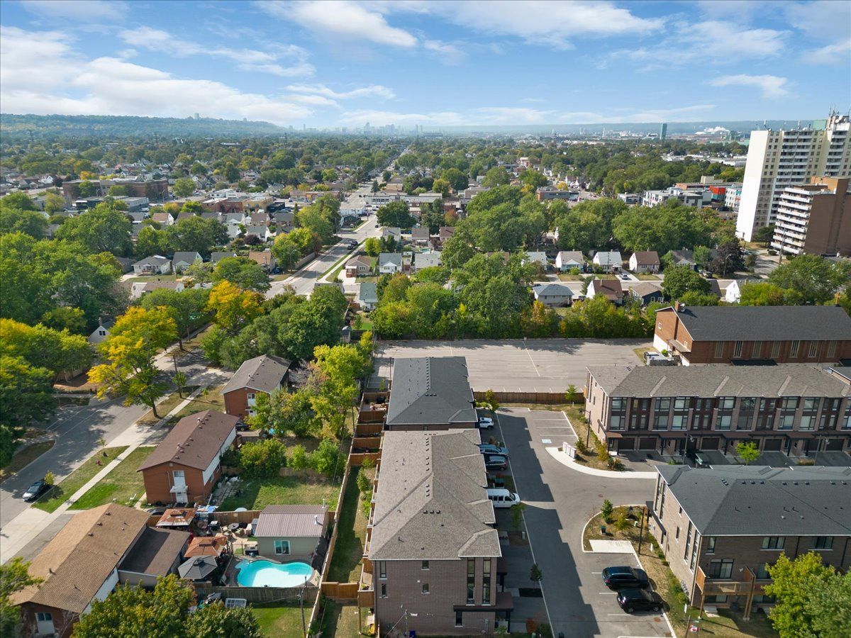 Welcome to this beautiful 3 year old, 3-bedroom, 2-bath freehold townhouse. Thoughtfully designed across three levels, this 1600+ square foot home combines modern luxury with everyday convenience. Located at the back of the complex in one of the most private and quiet settings, this home backs onto a residential neighbourhood rather than busy streets or apartment buildings and fronts on a quiet street where kids can play. Ample visitor parking is available, and the private driveway plus garage with direct inside entry add to the ease of daily life. Step inside to a spacious foyer that sets the tone for the bright and airy layout. The ground floor offers a walk-out to the backyard an ideal space that can be used as a rec room, office, or even a 4th bedroom. The main floor features 9 ft ceilings, a large open-concept kitchen with stainless steel appliances, granite countertops, and a central island, seamlessly combined with a large and incredibly bright dining area. The living room offers a walk-out to an upper deck overlooking the quiet residential surroundings perfect for relaxing to watch the sunset, or entertaining. Upstairs, you'll find three generous bedrooms, including a large primary with his & hers closets, plus the convenience of an upstairs laundry room. This family-friendly complex is only 3 years old, well maintained and ideally situated close to schools, shopping, parks, and nature trails (red hill valley trail), with easy access to the red hill parkway, the linc, the qew, and transit/future transit including the confederation go station and hamilton lrt. Whether commuting to toronto, mississauga, or exploring niagara's wine country, this location puts everything within reach, at an accessible price-point! Upgrades incl. Water line run to fridge, moen faucet, upgraded cabinets & hardware, backsplash.