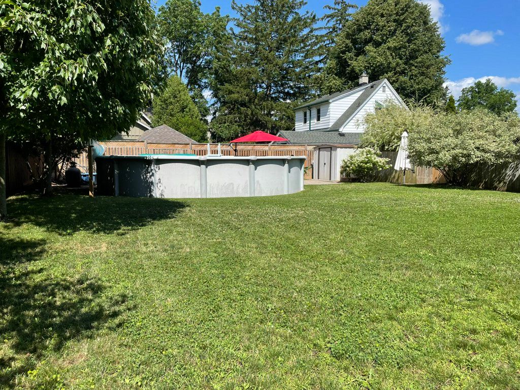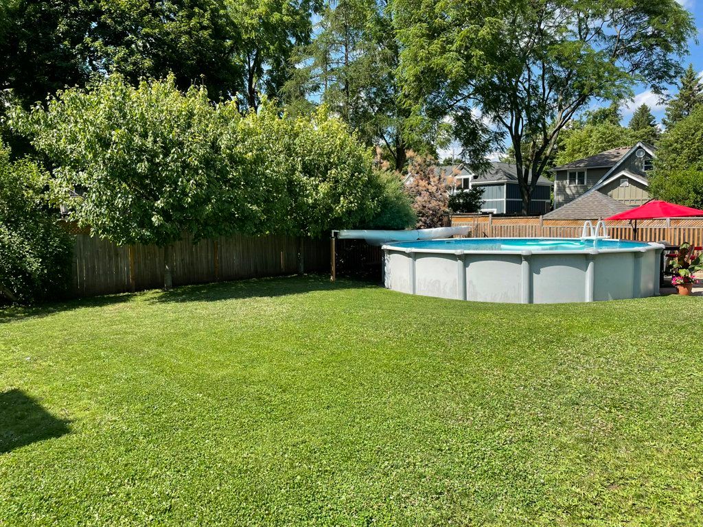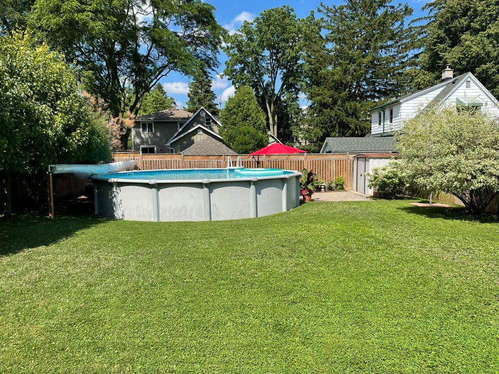 Charming and spacious 1. 5 storey home on beautiful mill st in the core of waterdown! Incredible location, walking distance to schools, shops, walking trail, restaurants and memorial park. The main floor of this home offers a generous amount of living space including a brightly lit front living room with cove ceiling, a kitchen with ample cabinetry and convenient pantry closet, a formal dining room, a large family room addition with gas fireplace and beamed ceiling and a 4 piece bathroom. A hardwood staircase takes you to the upper level that includes a spacious primary bedroom with 2 closets and a good sized second bedroom also with two closets. The basement level offers a handy separate walk up entrance, recreation room and loads of storage. The beautifully manicured fully enclosed backyard features an above ground pool with recently replaced liner, pump and filter and two patio spaces. Additional features include loads of attic storage, 2 sheds, recently painted exterior, newer washing machine, updated furnace, a/c and roof. This home offers so much opportunity for those looking for a solid affordable detached home with vintage charm, character and potential for reimagination. A fabulous core offering, not to be missed!