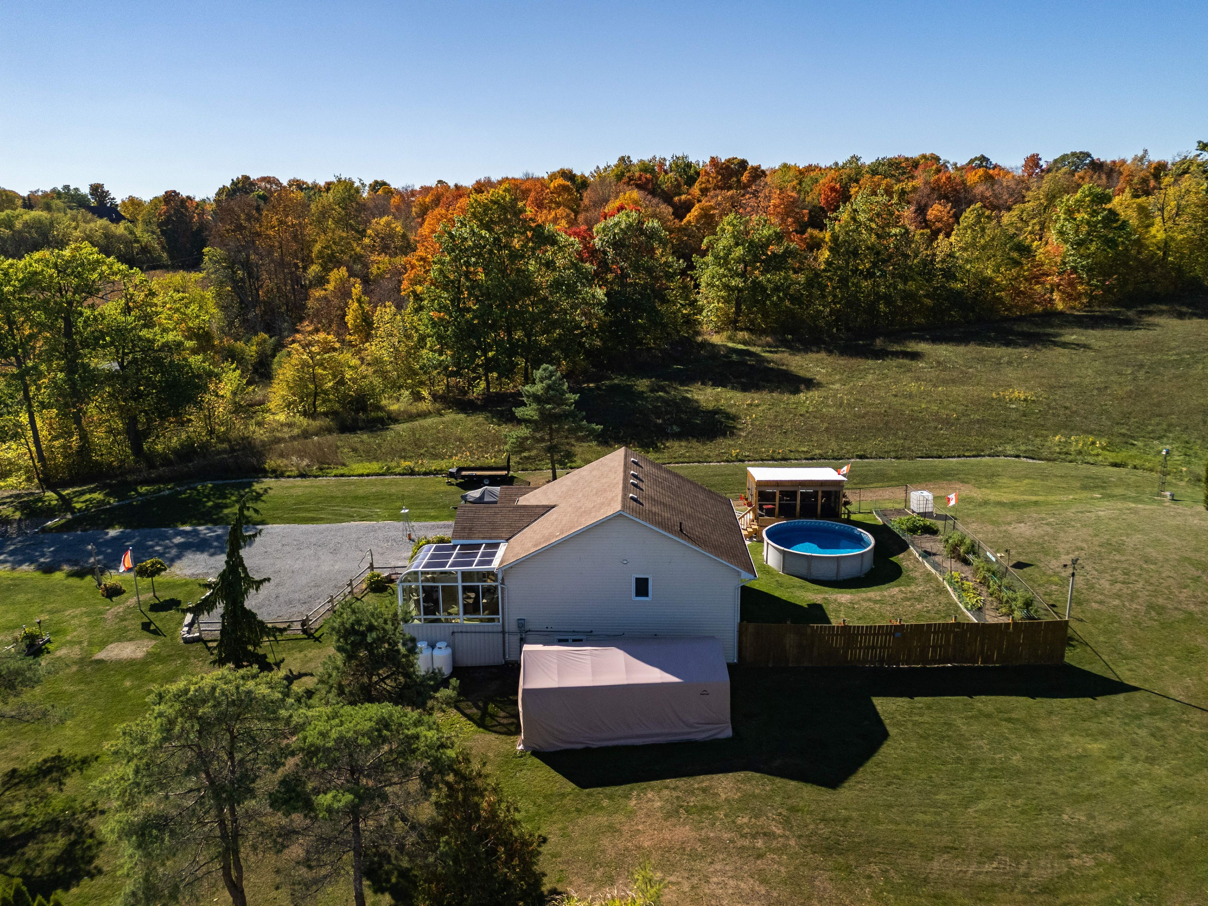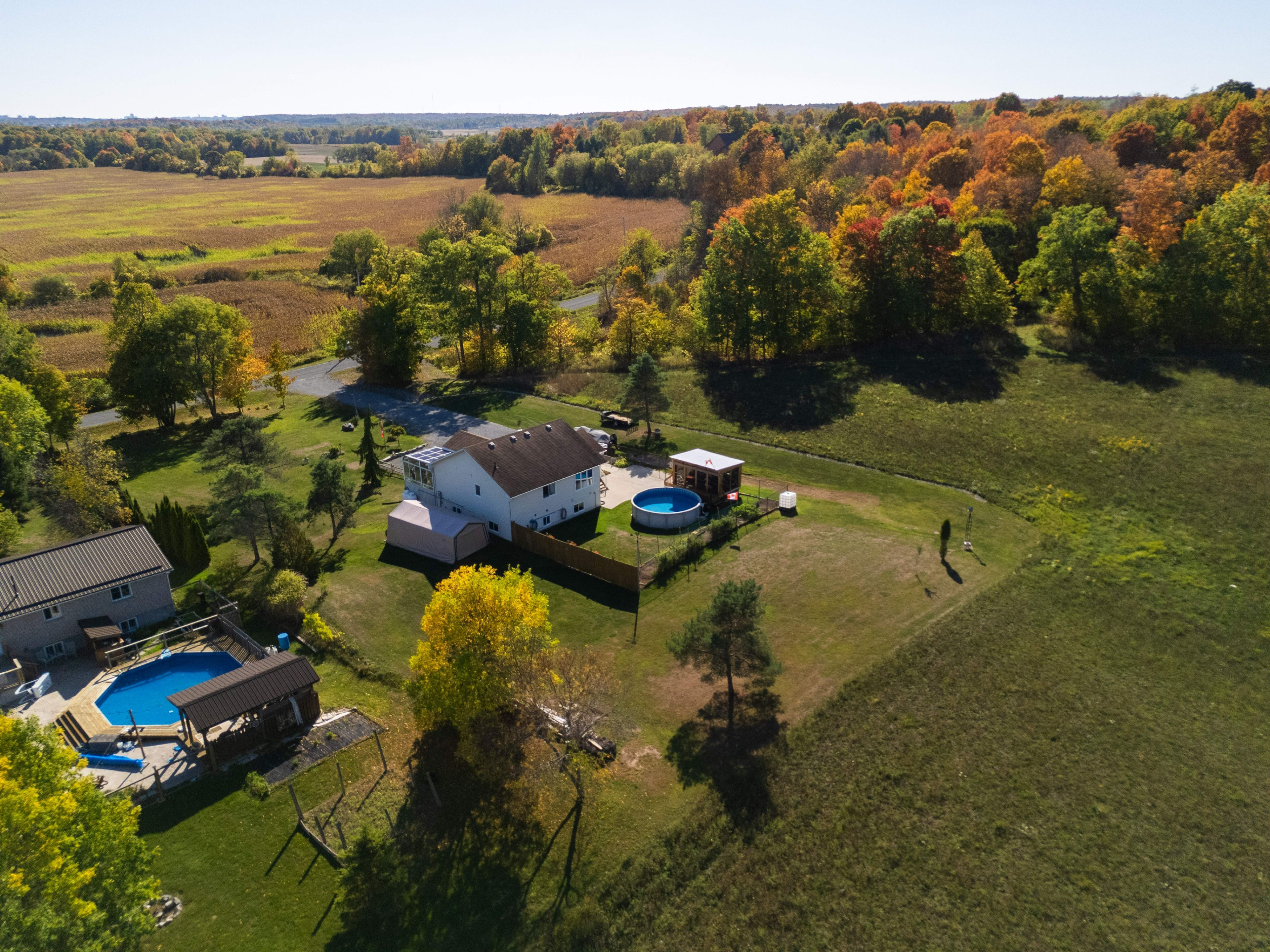 Beautifully updated and meticulously maintained raised bungalow, set on a private and manicured one-acre lot just five minutes north of the 401. Offering 2,000 square feet of finished living space, this wonderful family home features 2+2 bedrooms, 2 full bathrooms, formal dining room, a main floor family room, a bright solarium and a lower level re/media room warmed by a cozy propane stove. Recent updates include refinished kitchen and bathroom cabinetry, new countertops, updated flooring, a new above-ground pool and a custom screened-in sun-room designed for extended summer enjoyment. Positioned high above the road, the property offers sweeping views of rolling farmland and a peek of the rideau waterway. Immaculately maintained with every detail thoughtfully cared for, this home is truly move-in ready.