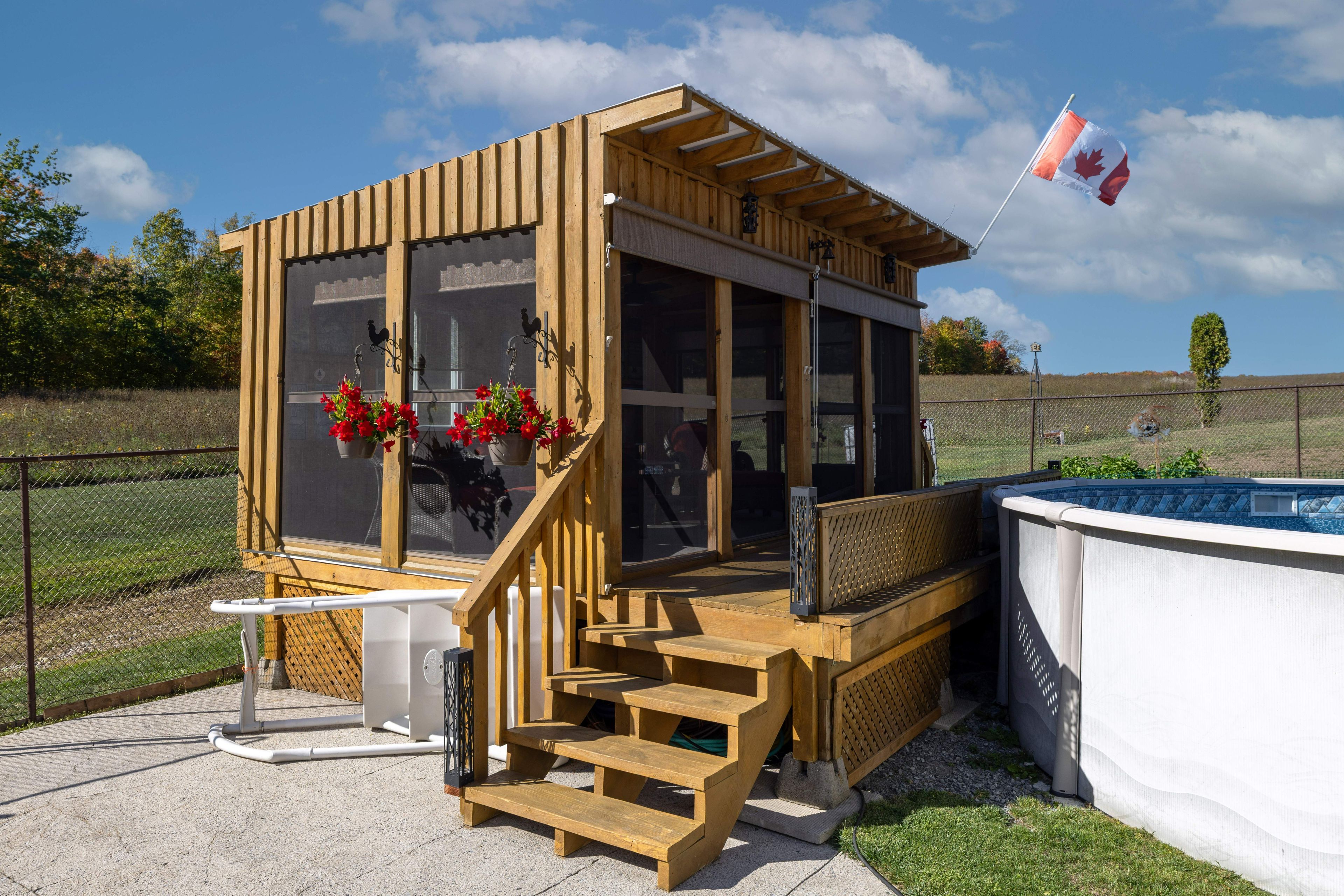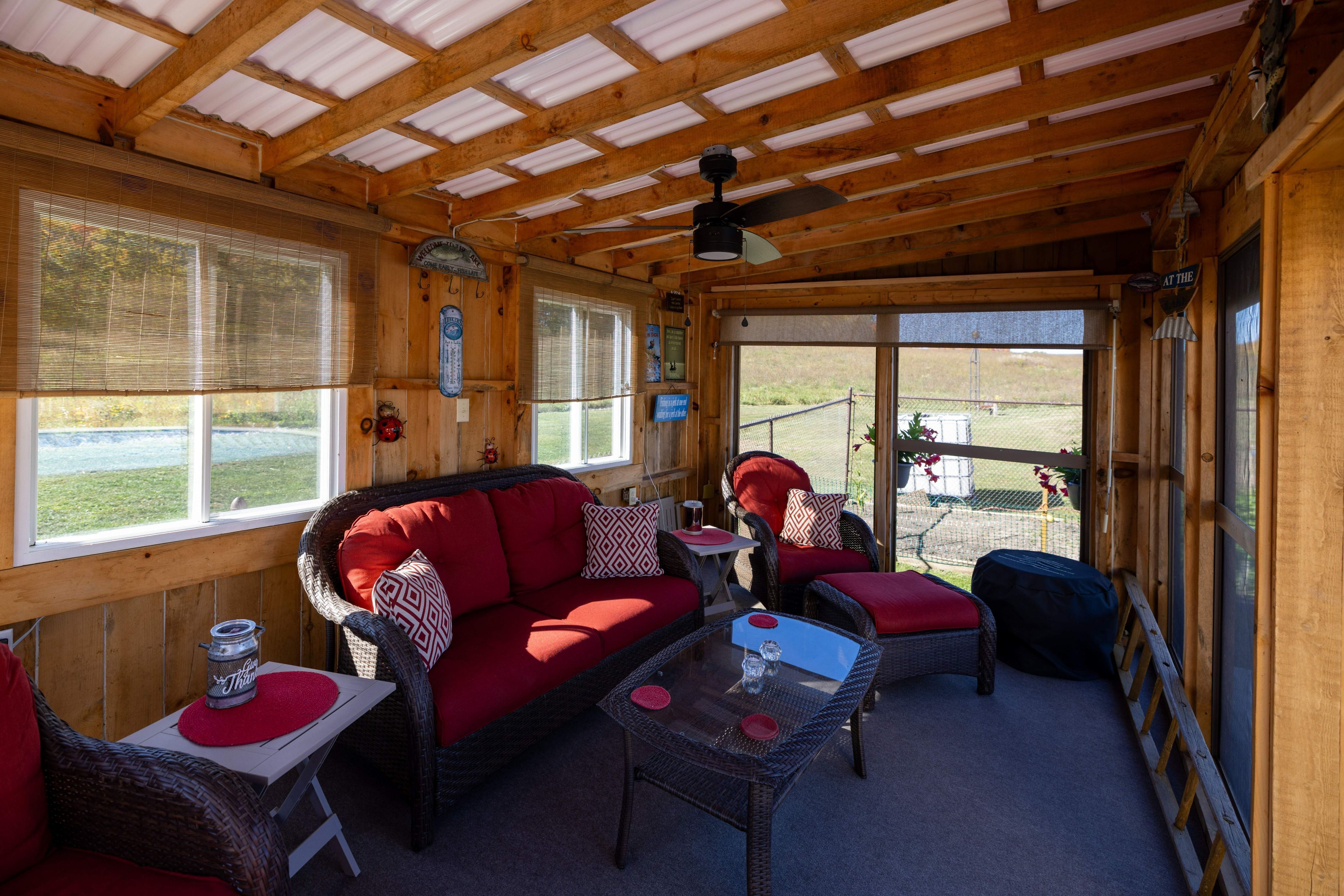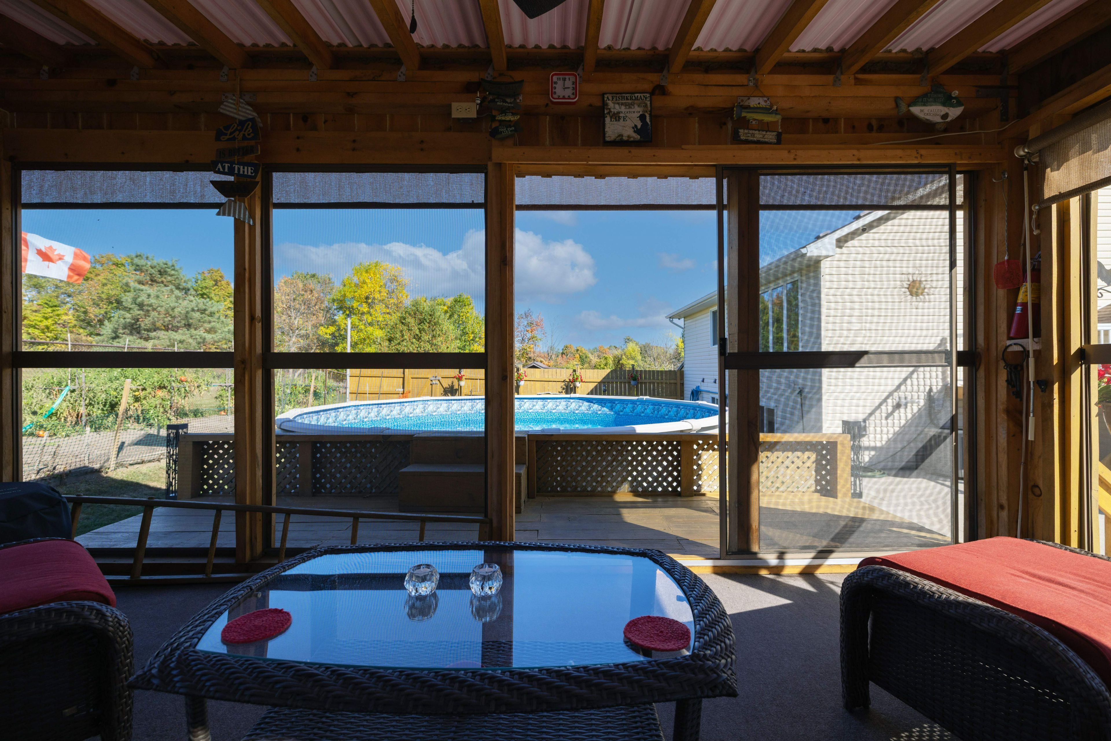 • Custom screened-in sun-room and new above-ground pool for summer enjoyment.
