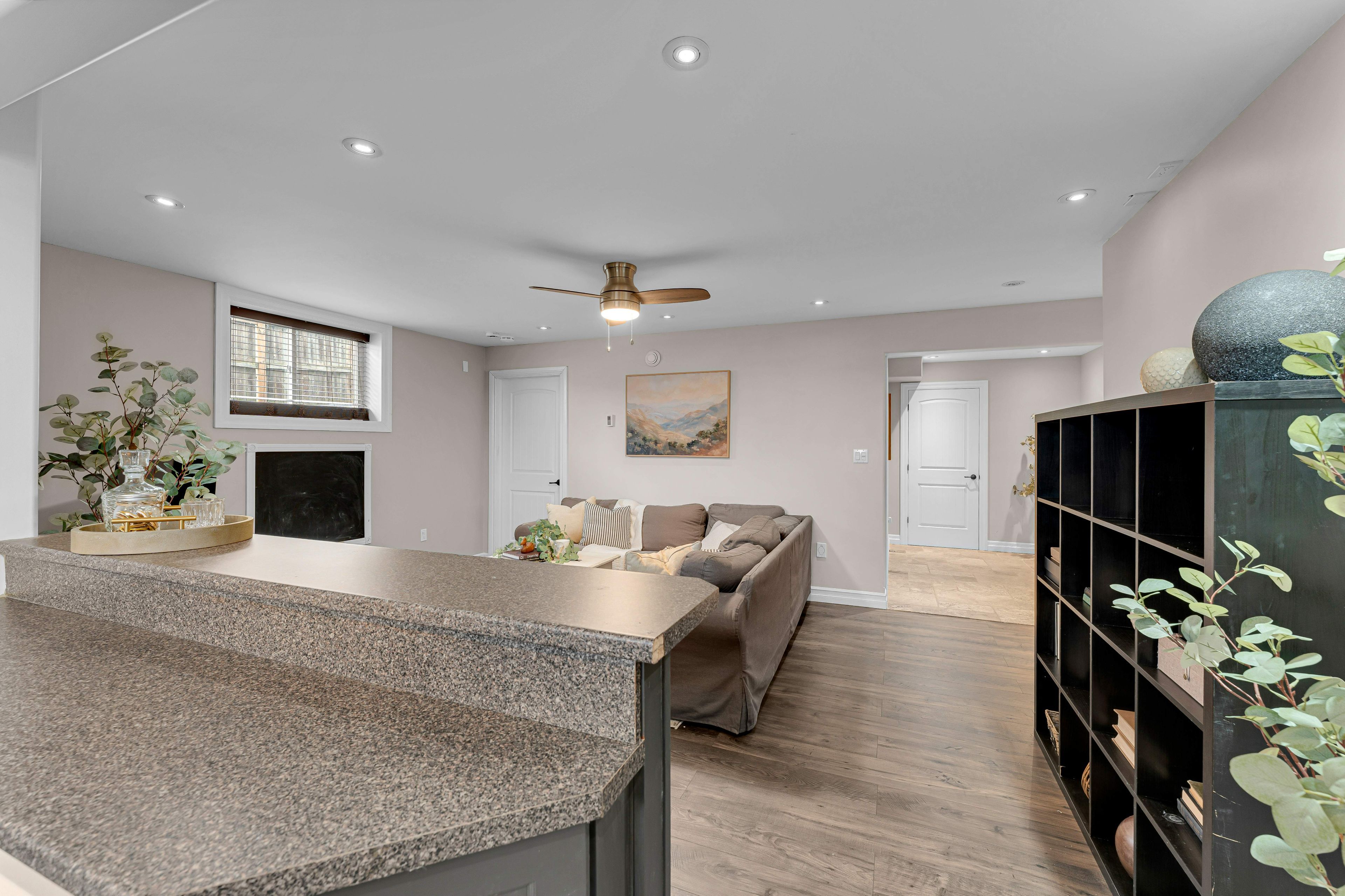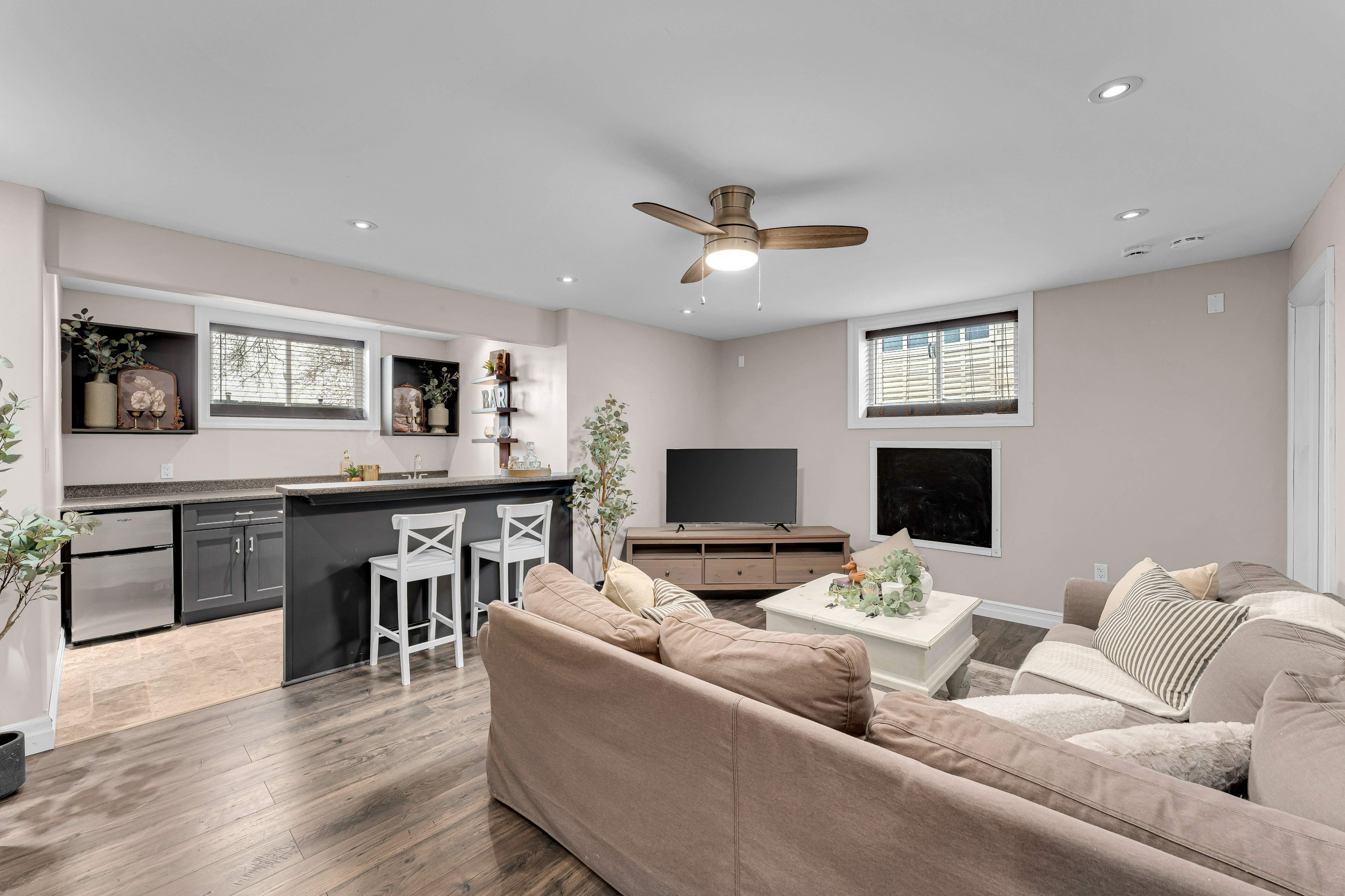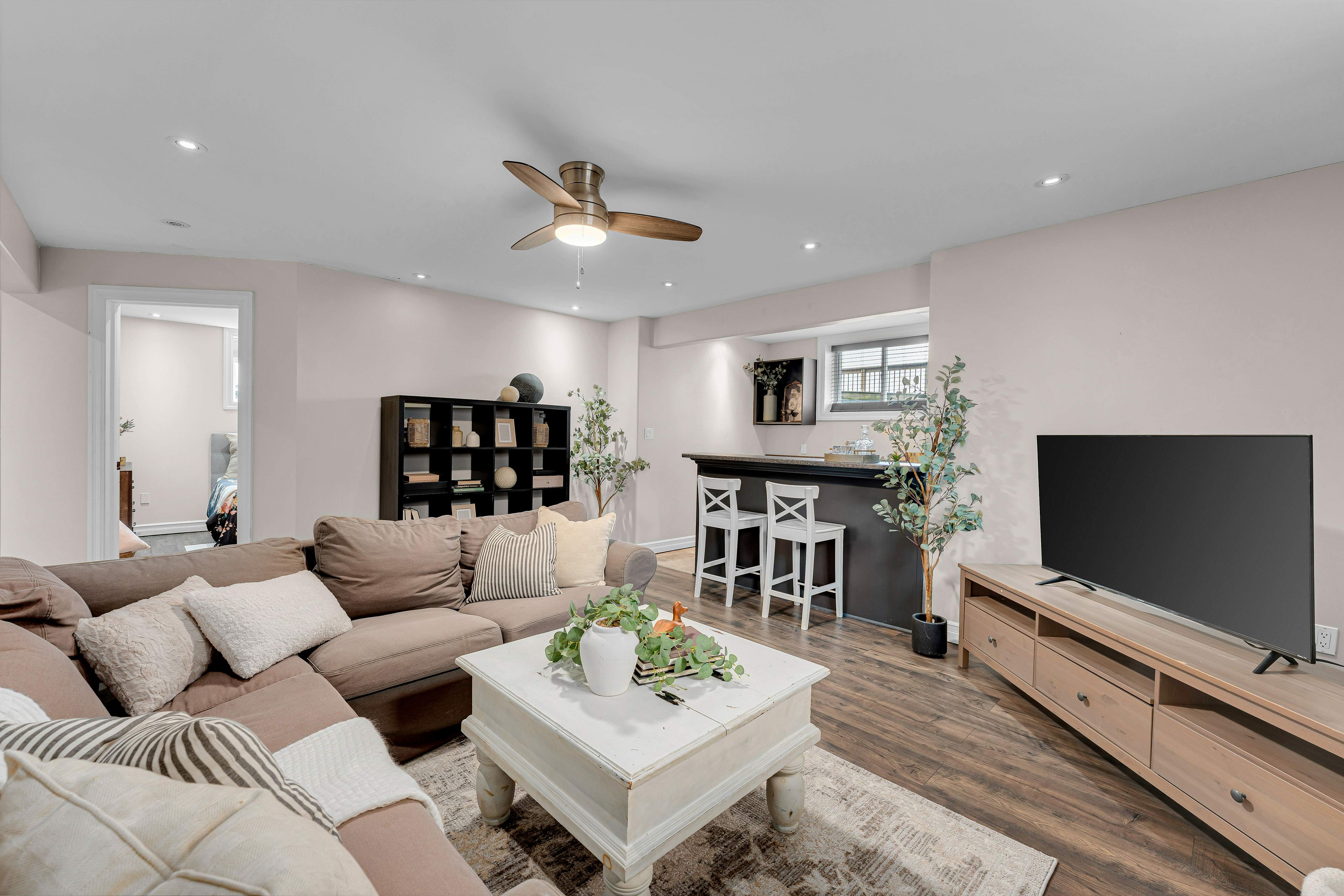 • Fully finished basement with rec room, wet bar, and extra bedroom.