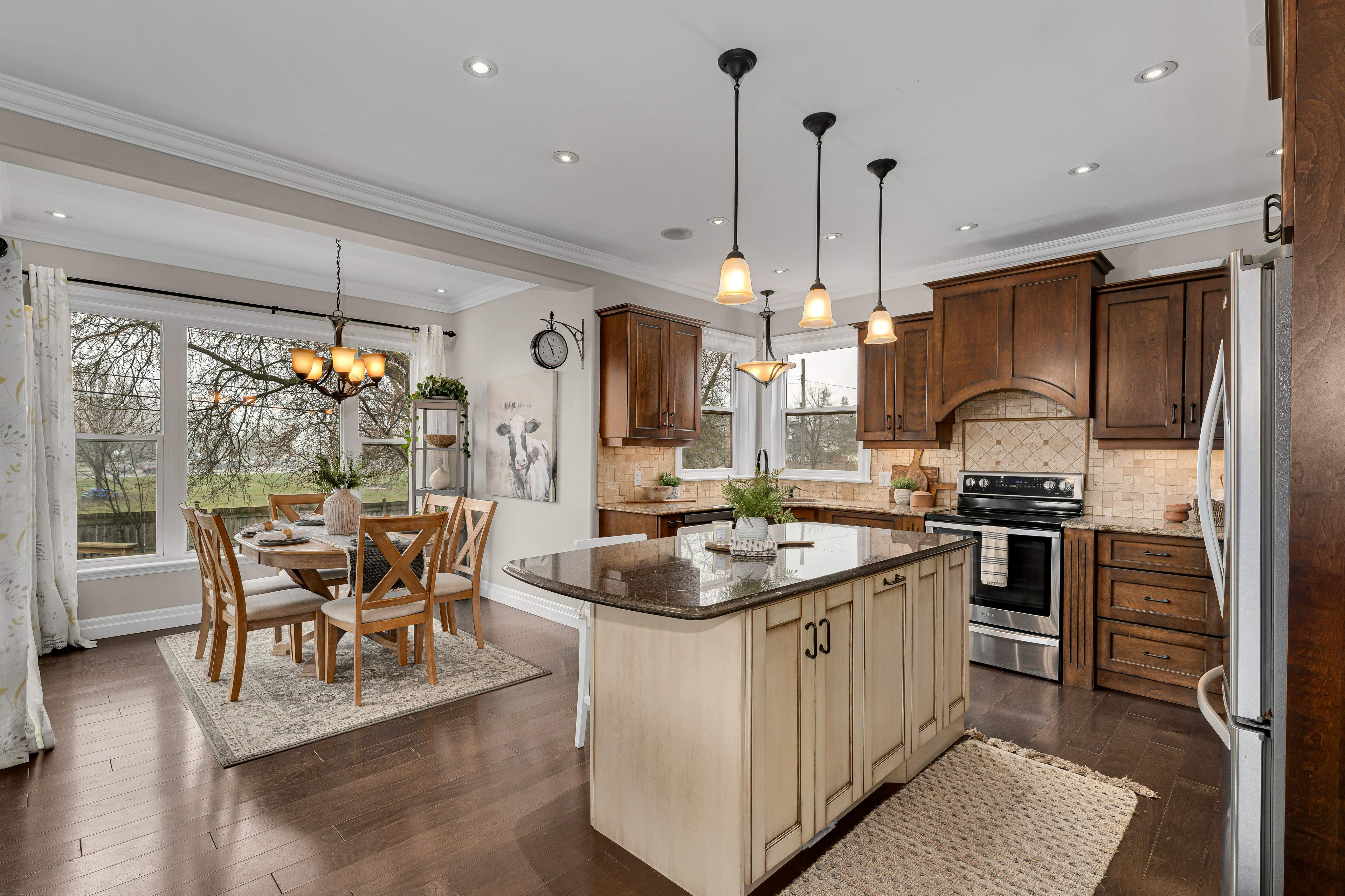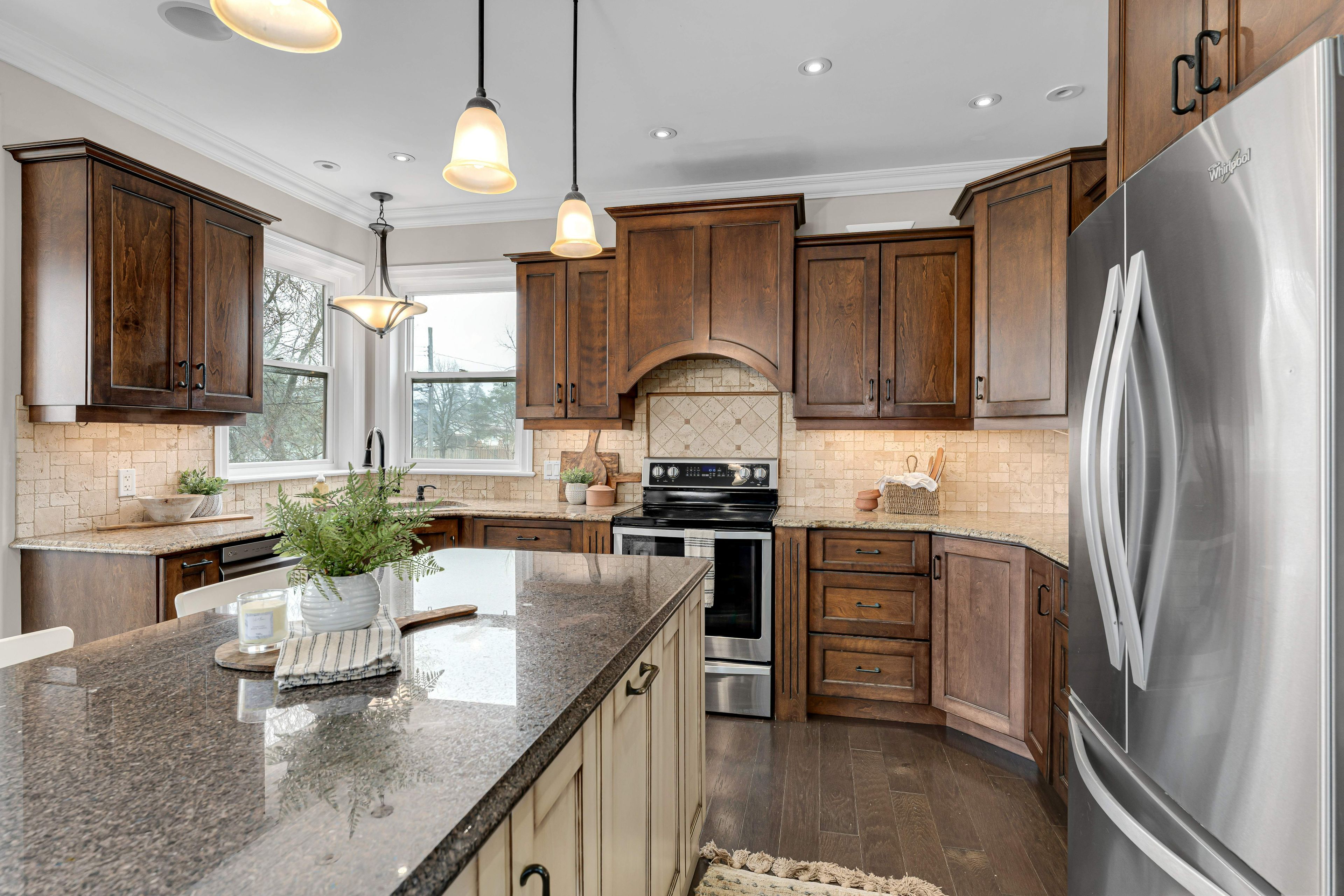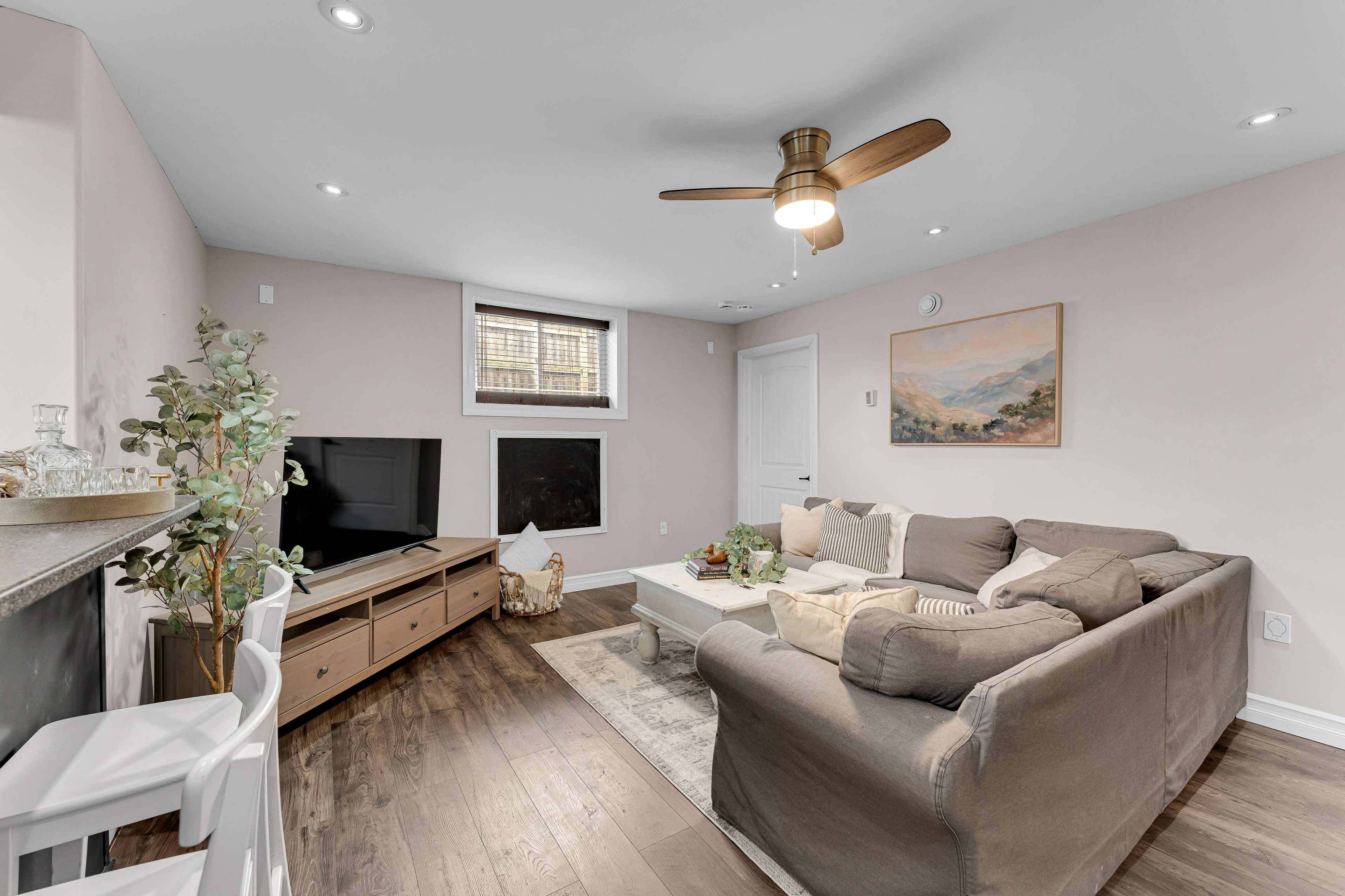 • Fully finished basement with rec room, wet bar, and extra bedroom.