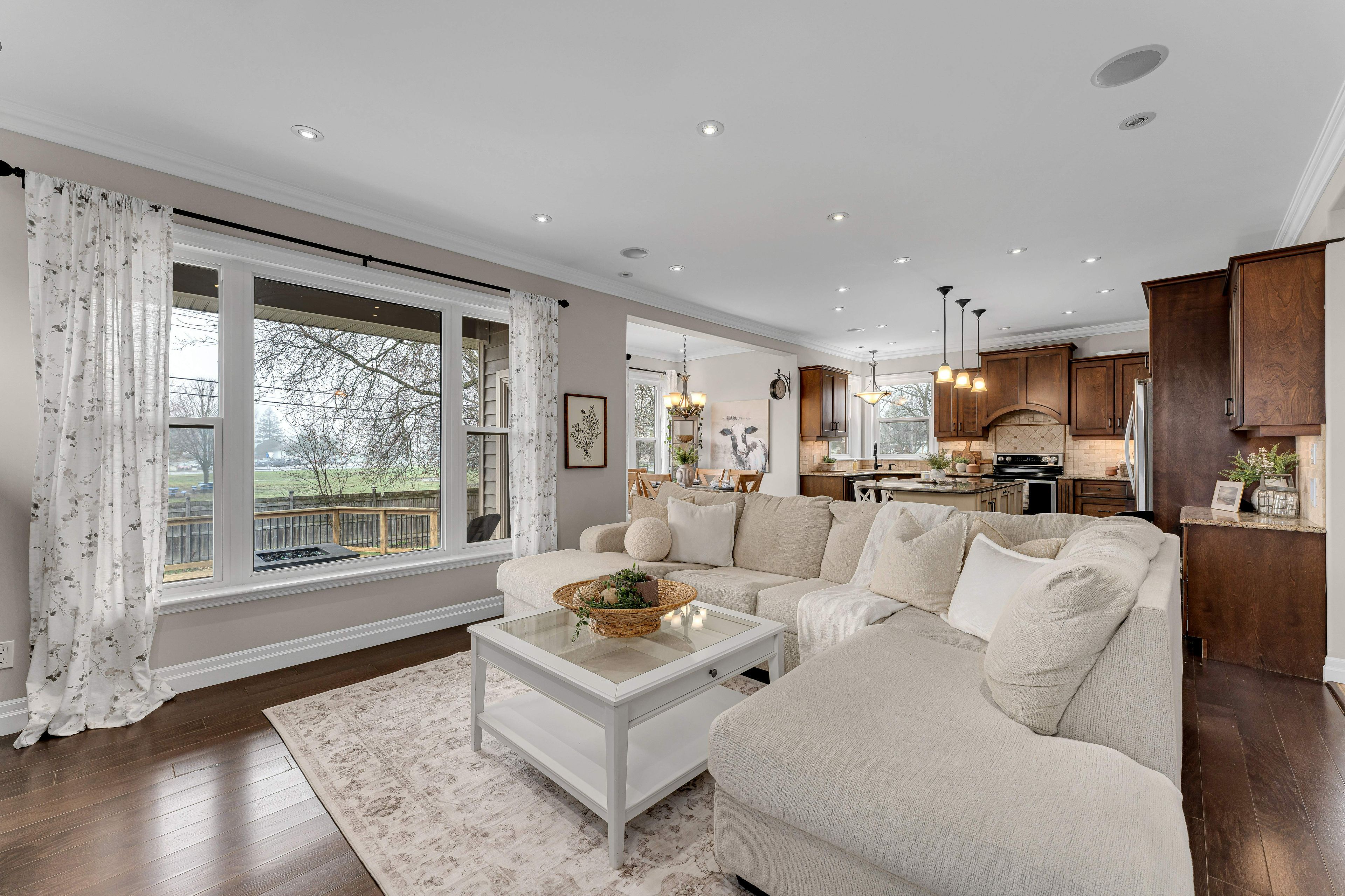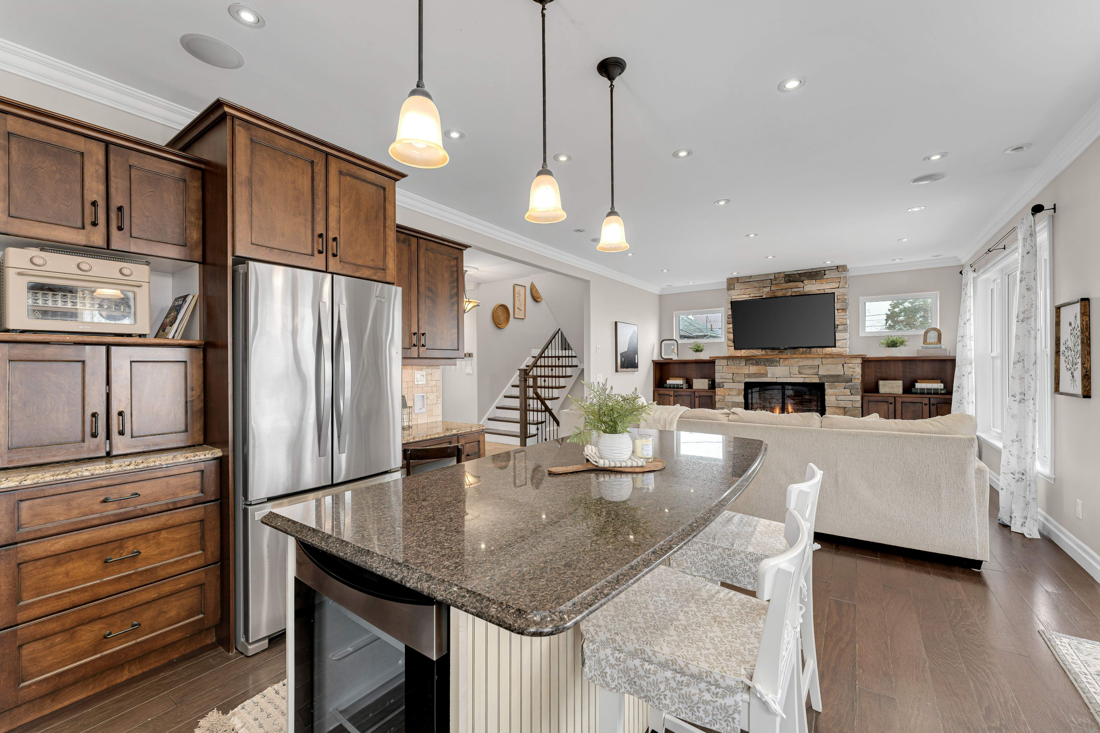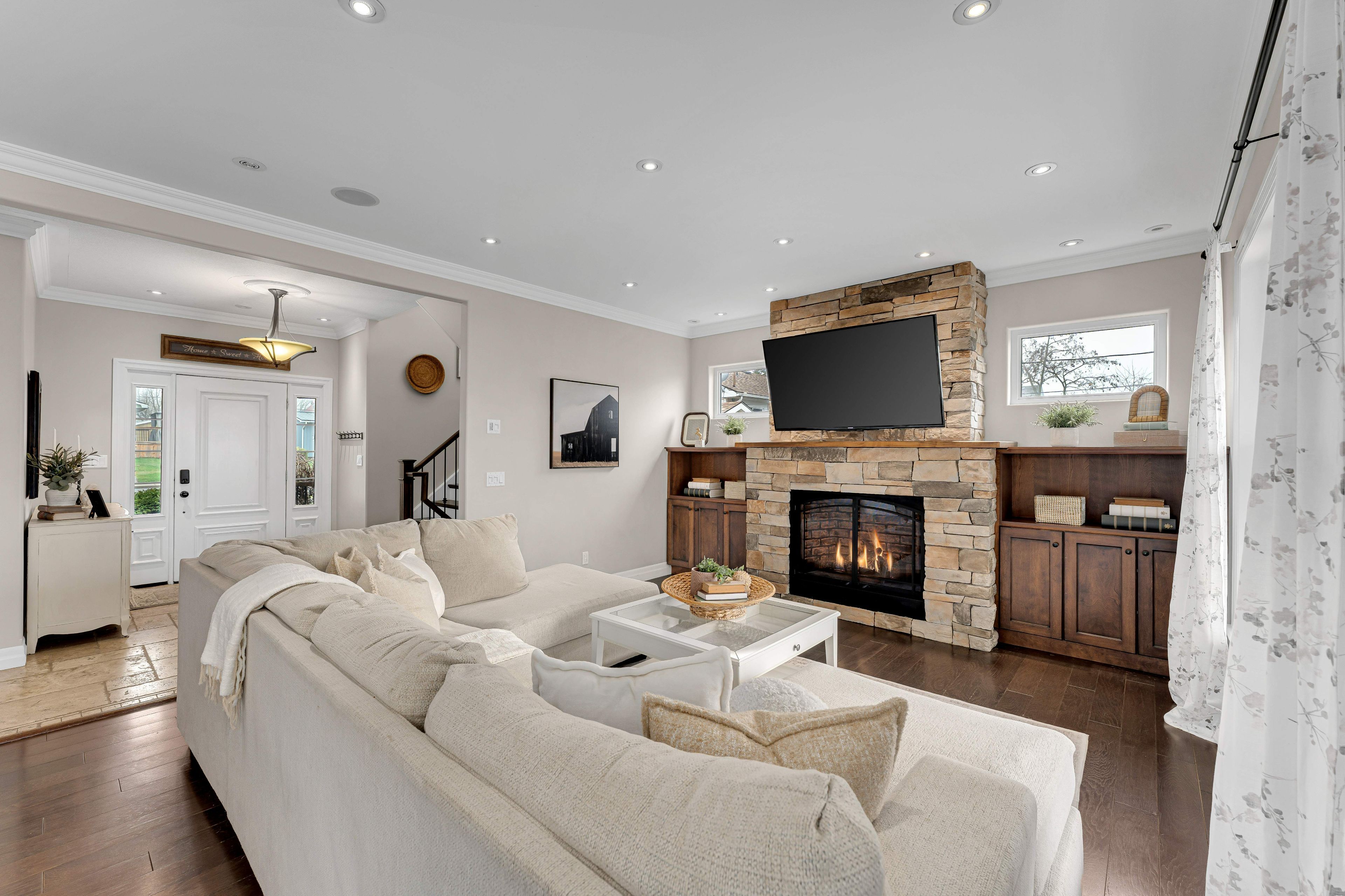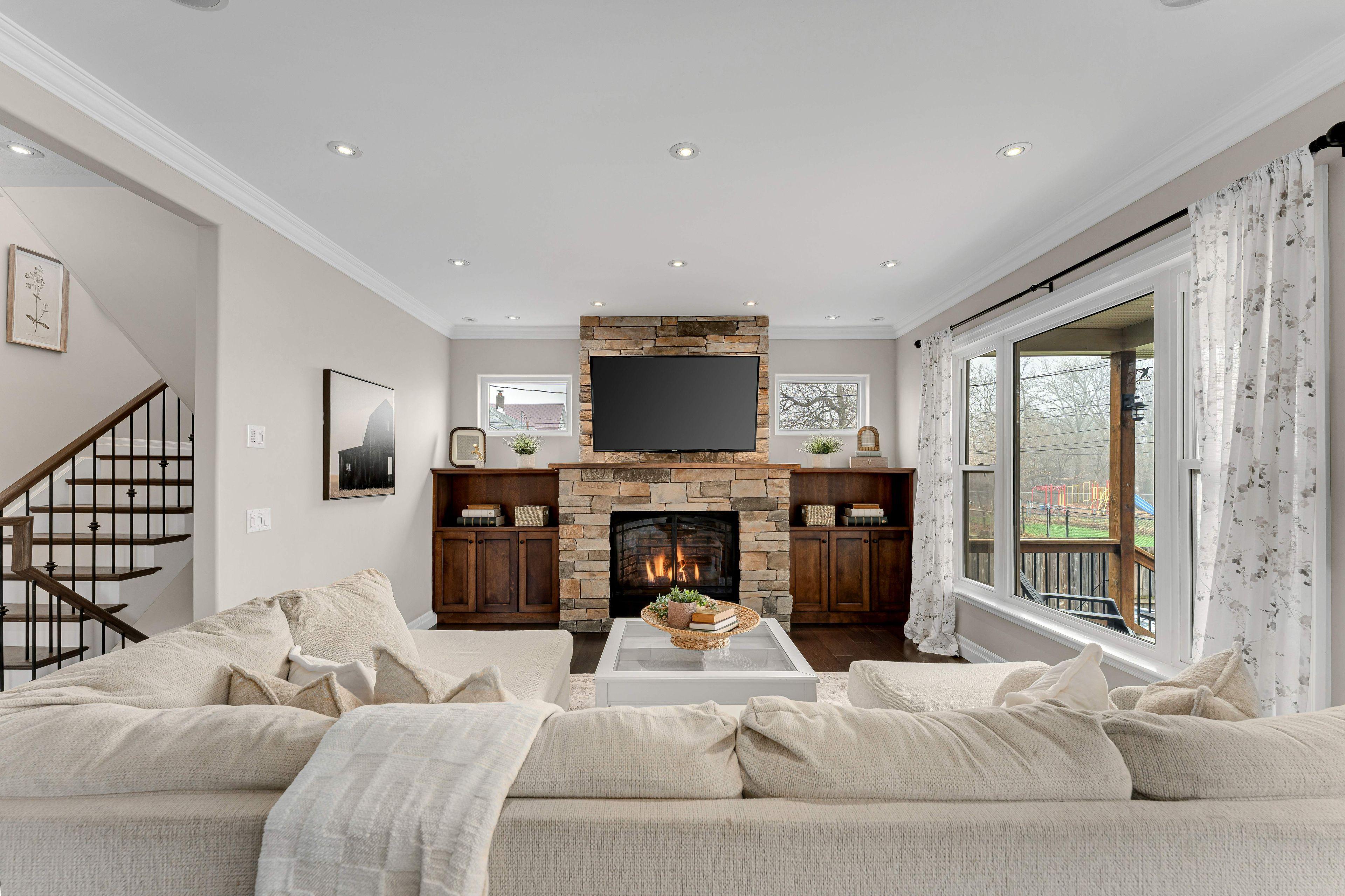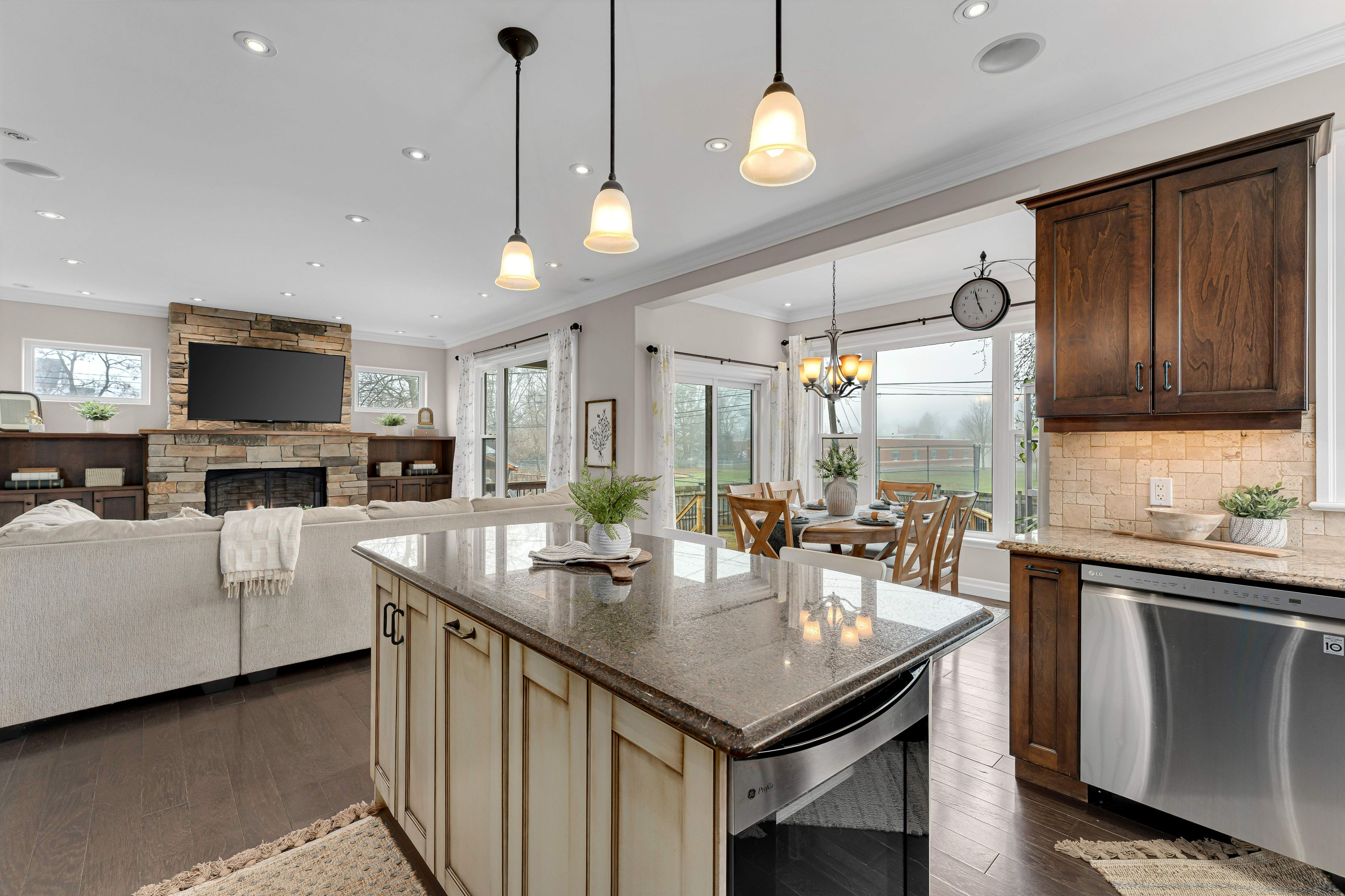 • Open-concept living with a chef's kitchen and cozy gas fireplace.