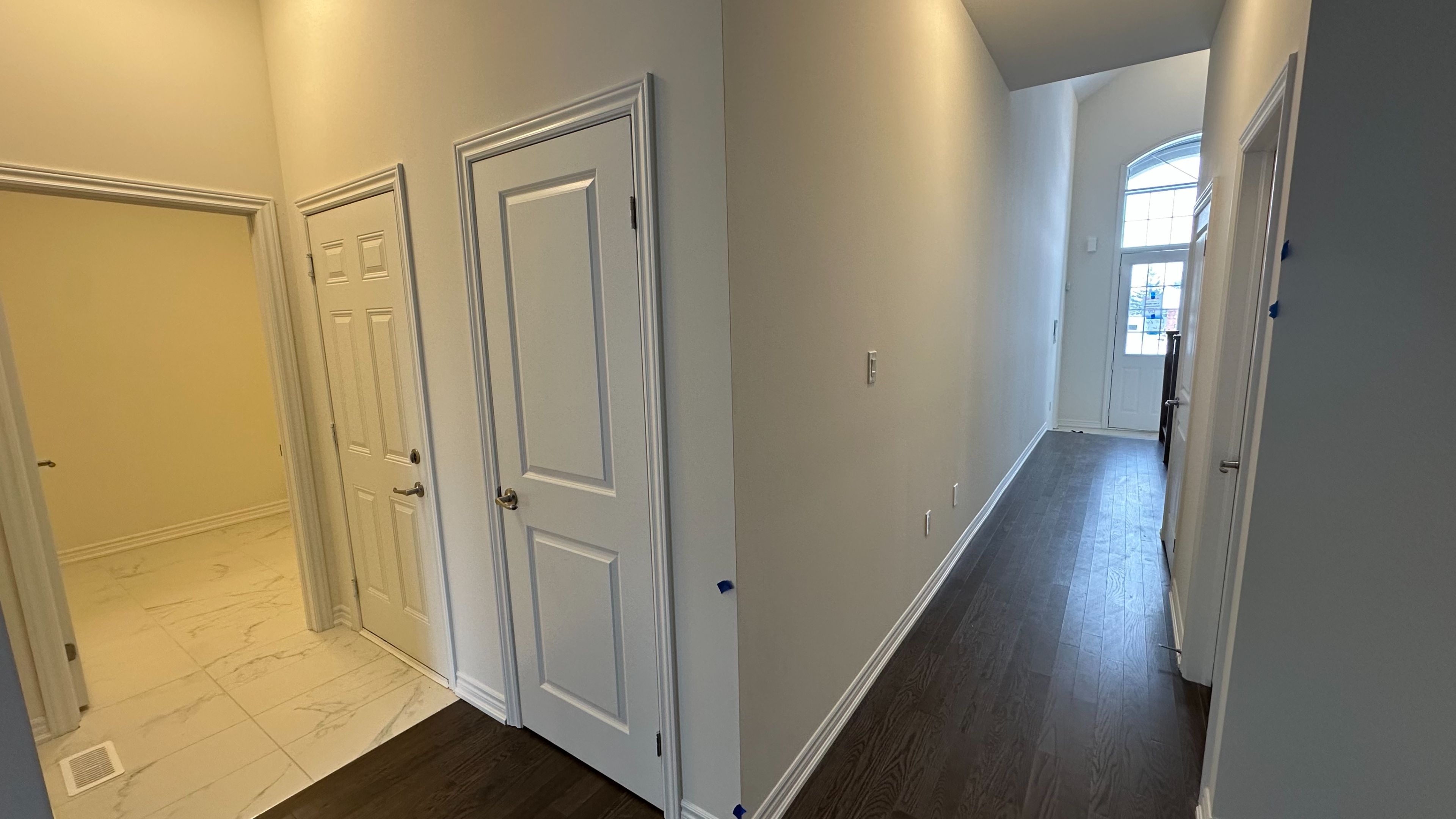 • Elegant stone and brick front with grand double door entry.