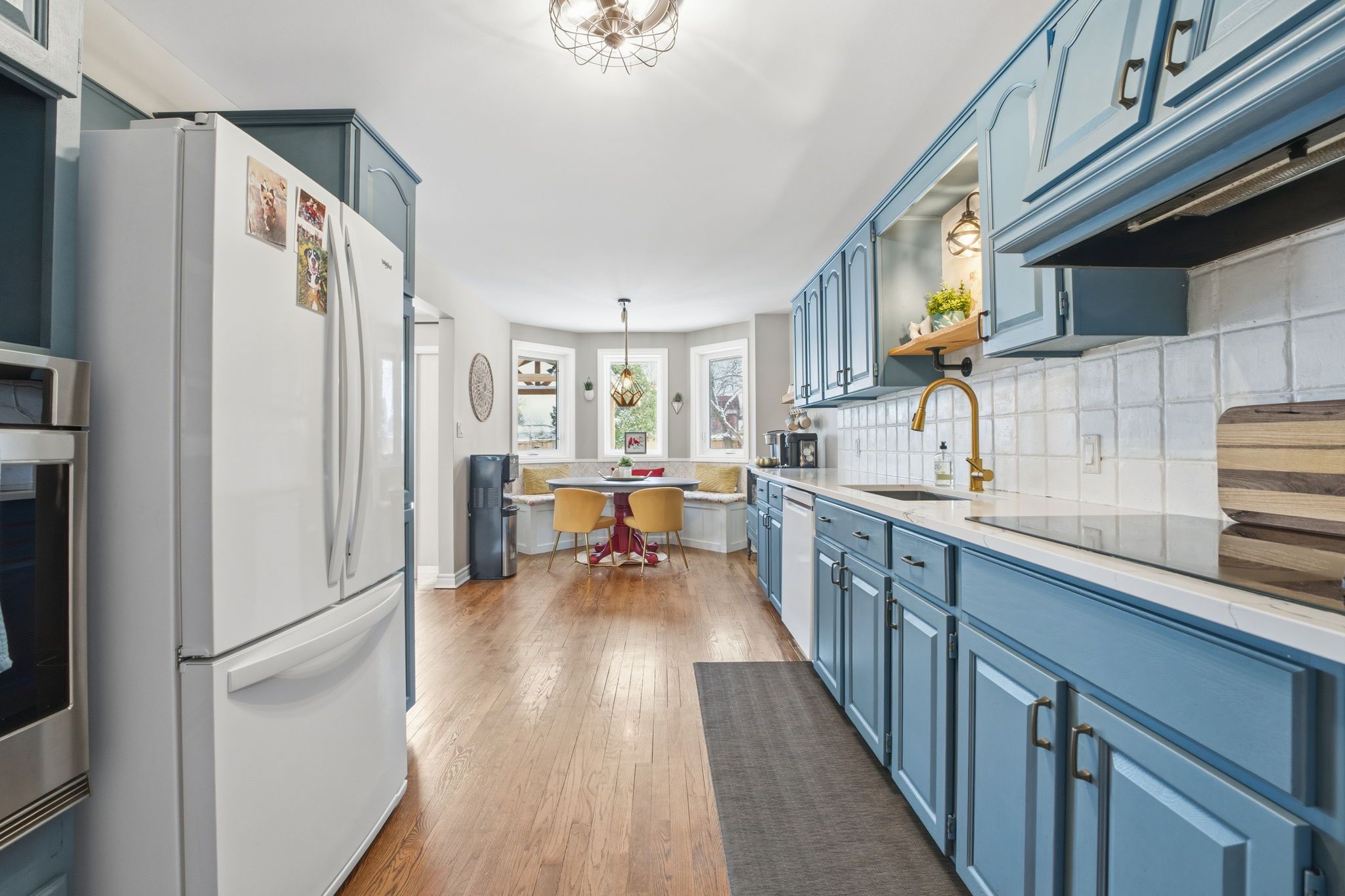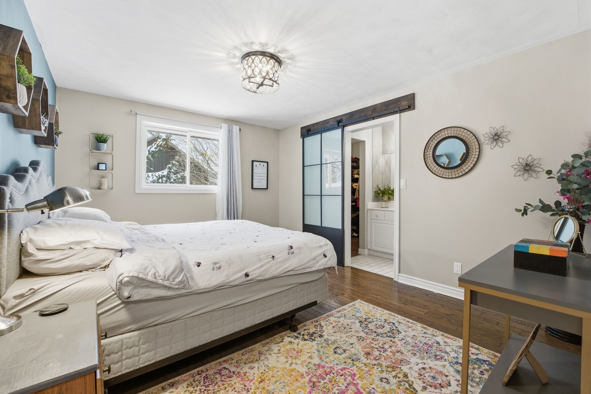Welcome to this meticulously maintained and beautifully updated bungalow with an in-law suite, ideally located on a quiet street in the heart of courtland. Offering an attached garage and outstanding curb appeal, this home delivers both functionality and style from the moment you arrive. The main floor features a bright and inviting living room with large front windows, a natural gas fireplace, and generous space for everyday living and entertaining. The updated kitchen is a standout, complete with new appliances, quartz countertops, a new sink, and a charming built-in banquette for casual dining. An oversized dining area provides the perfect setting for hosting family gatherings and dinner parties. The primary bedroom offers a private, updated ensuite, while additional family bedrooms, laundry and a full bathroom complete the main level. The finishedlower level offers exceptional flexibility with its own kitchen, bedroom, and bathroom. Ideal for extended family, guests, or multi-generational living. Outside, the home truly shines. Professionally designed landscaping, landscape lighting, and a full sprinkler and garden bed irrigation system keep the property looking pristine. The backyard is fully fenced and features a new deck with pergola, plus a fire pit and seating area. Perfect for relaxing or entertaining, all while maintaining convenient access and visibility to the driveway. This impressive property offers comfort, versatility, and exceptional outdoor living in one complete package. A rare opportunity you won't want to miss.