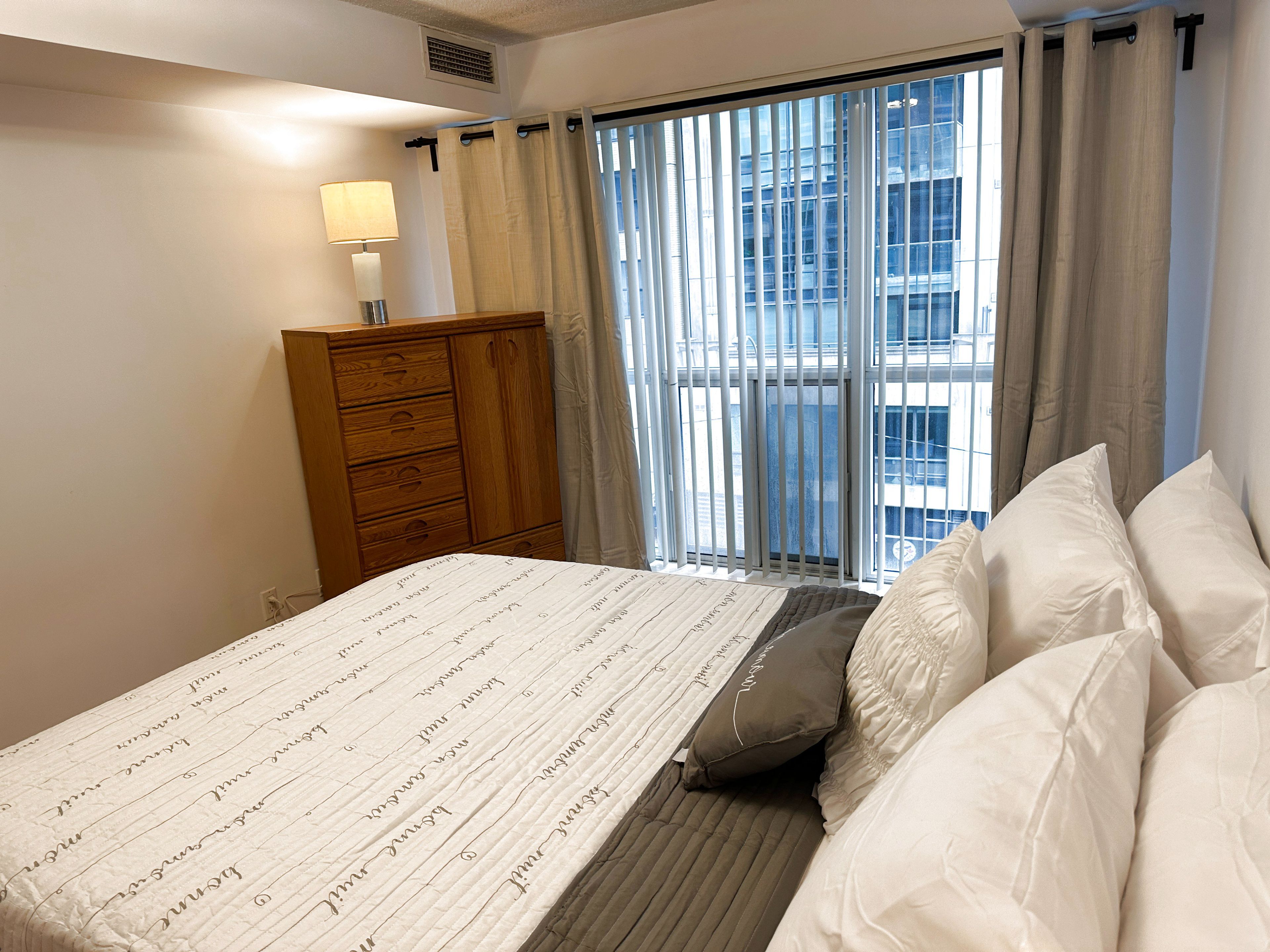 Furnished 2 bedroom luxury condo living in the heart of toronto (3 to 9 months short term) the icon with amazing direct south view and steps to cn tower and rogers center * loads of sunshine facing south. This condo is a popular model in size and layout * the centre hall plan allows no wasted space, you can enjoy lots of living space * each room is defined plus super attractive spacious living room and dining room with a bar table and 4 chairs. . Enjoy a walk out to large private balcony . The livingroom features lovely electric fireplace, watch a movie on netflix. The large primary bedroom offers excellent space, a quality queen size bed, large dresser, matching night table plus office desk and chair. The 2nd bedroom features a double bed, dresser and night table. The chef inspired galley kitchen provides lots of counter space. * spacious living * wonderful new & modern colour quality vinyl flooring throughout, this unit is allergy free. This icon 1 luxury building has a back door entrance into the laneway at the rear, right to you mercer street and john so it is only 1 minute to walk through the doors of metro hall for the p. A. T. H shopping, subway - union station and all transit lines plus go train ** amazing to walk through that whole underground city to the eaton's centre and dundas square -- plus other various attractions. Best toronto!! ** all inclusive wifi, tv and netflix 24-hour concierge, a rooftop lounge on the 14th floor, a fully equipped gym, sauna, and pool. Elevate your lifestyle in this exceptional condominium. Your urban oasis awaits! **** extras **** 24 hr concierge, top quality equipment in exercise/gym, sauna, aqua spa indoor pool, two 14th floor terraces, bbq's, loungers * stunning view of cn tower and rogers center > cyber lounge, party room, billiard room - amazing building just 1 minute from toronto's new sutton place hotel. This location is the most vibrant area of the entertainment district. Ask if parking is required.