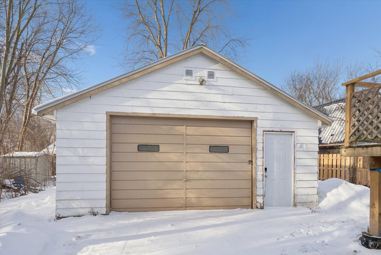 • Large detached garage offers extra storage and workspace.