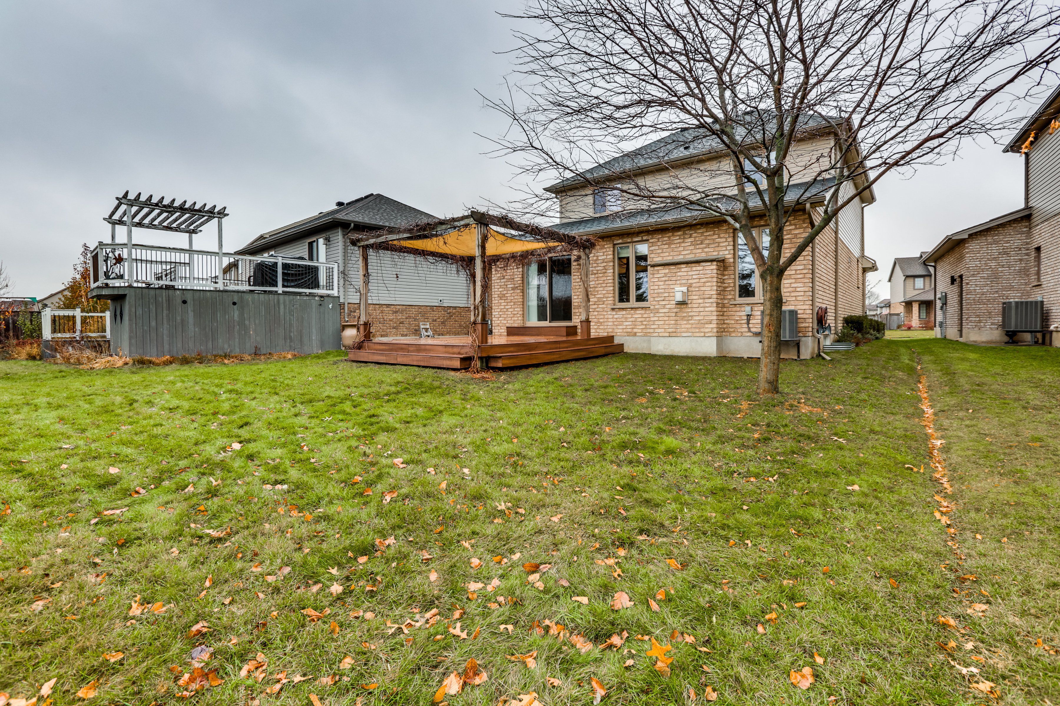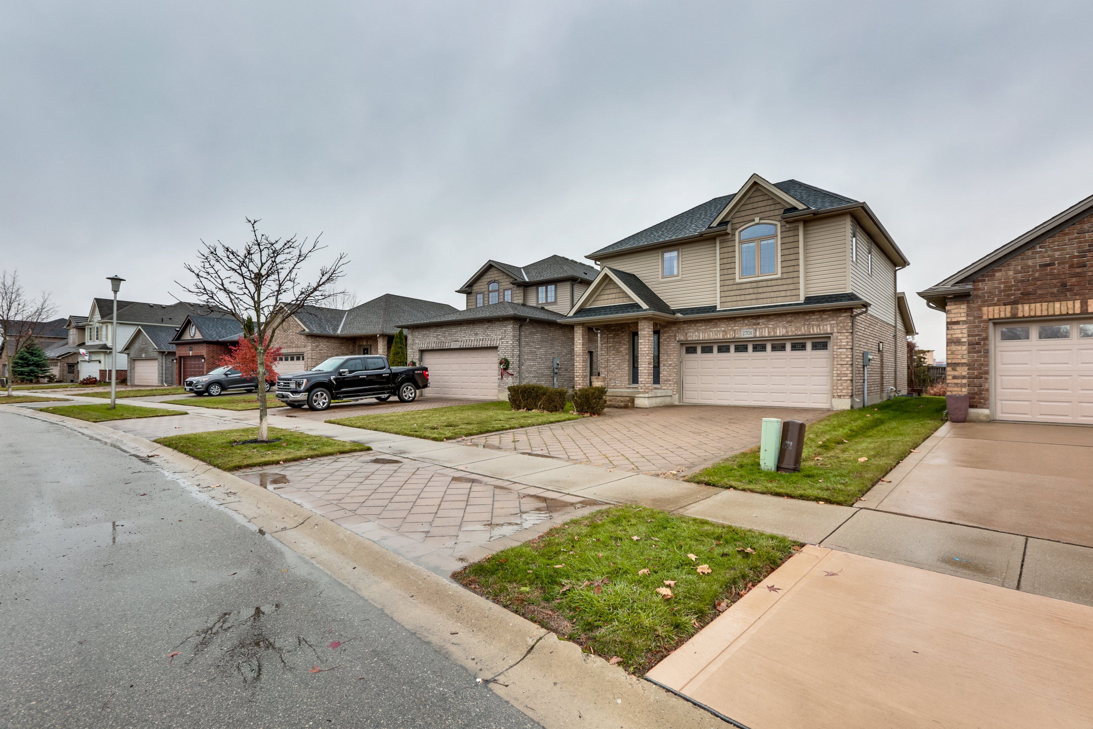 Private backyard oasis in desirable south london. Welcome to this beautifully maintained two-storey home in sought-after south london, ideally located with quick access to highway 401 and major commuter routes. Backing onto a large private green space, this property offers a rare sense of peace and privacy while still being close to everything the city has to offer. The fully landscaped backyard is designed for relaxation and entertaining, featuring a two-tone composite deck, gas bbq hookup and rough-in for a future outdoor fireplace. With full afternoon sun and plenty of space, the yard easily accommodates a future pool or expanded outdoor living area. Step inside to a welcoming entryway that opens to a bright open-concept main floor. The great room impresses with soaring vaulted ceilings, rich hardwood flooring and a cozy gas fireplace that creates the perfect gathering space for family and friends. The kitchen is both stylish and functional, offering quartz countertops, premium cabinetry and a spacious walk-in pantry ideal for busy households. Upstairs you'll find a generous primary retreat with a large walk-in closet and private ensuite bath. Two additional well-sized bedrooms, a full 4-piece bathroom and the convenience of upper-level laundry complete the second floor. The lower level is fully framed and insulated, offering a blank canvas to create additional living space tailored to your needs. The layout also presents excellent potential for a future in-law suite. Additional highlights include a double attached garage, private double driveway with parking for six vehicles, and energy-efficient heating and cooling for year-round comfort. A wonderful opportunity to own a move-in ready home with room to grow in one of south london's most convenient locations.(some rooms have been virtually staged.)