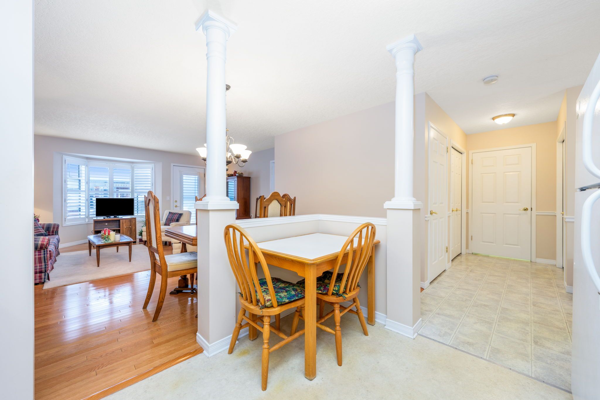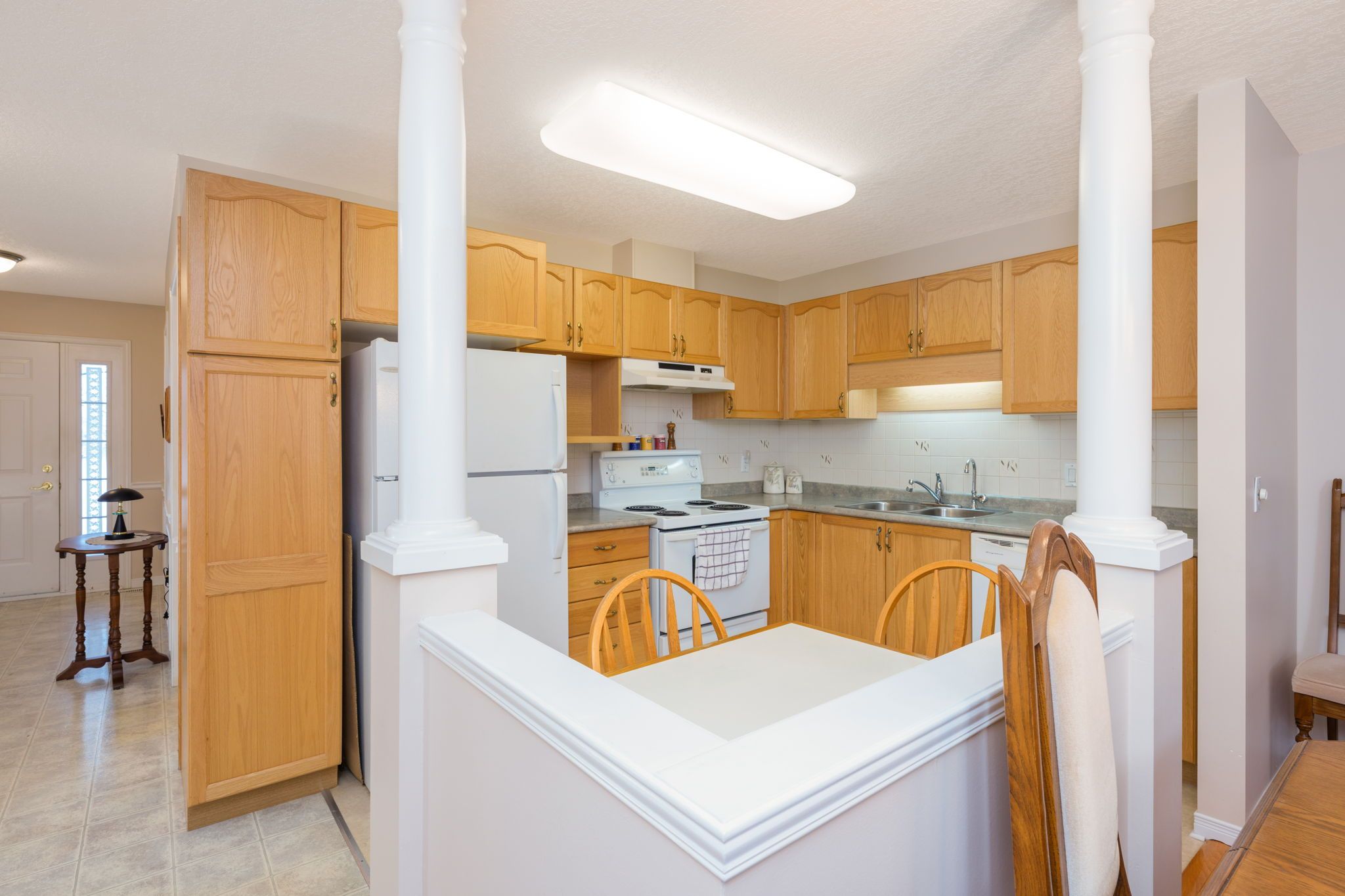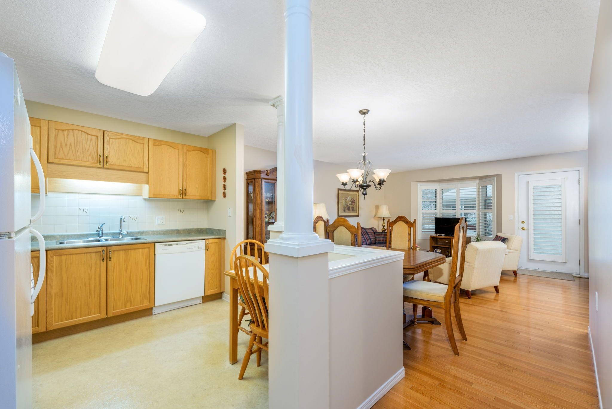 Welcome to trinity village terrace, a well-maintained 1,184 sq. Ft. Life lease townhome located in an independent living community for adults 55 and older. The entire terrace community is thoughtfully designed to be wheelchair accessible, featuring wide doorways and hallways and an accessible kitchen for ease of mobility and everyday comfort. This well-designed home offers 2 bedrooms and 2 bathrooms, all on a single, accessible level, and includes an attached one-car garage for added convenience. The open-concept living and dining area features engineered hardwood flooring and is filled with natural light from large windows, with a walkout from the living room to the private deck and backyard, ideal for relaxing or entertaining. Both bedrooms are generously sized and feature double closets, with the primary bedroom offering a private 4-piece ensuite. Main-level laundry adds everyday convenience. The basement is unfinished but offers significant potential for additional living space, storage, or customization. Recent updates include a new furnace and air conditioning system installed within the past month. Ideally located just 2 minutes from fairview park and 5 minutes from fairway station, with pharmacies, grocery stores, and shopping nearby, this home offers a perfect blend of comfort, functionality, and accessibility.