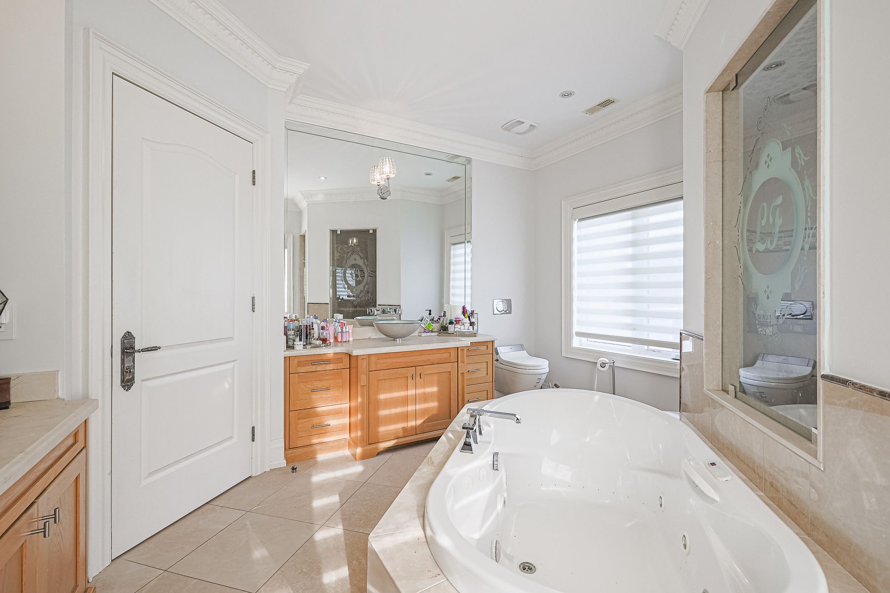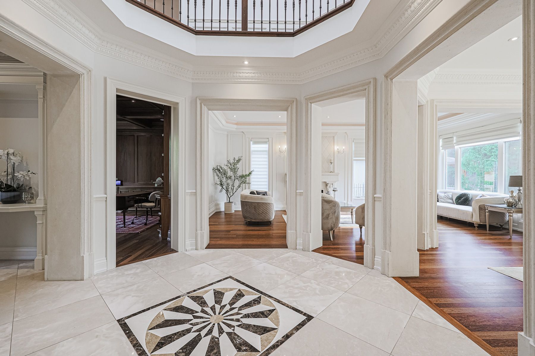 Welcome to this exquisite custom-built luxury residence, a true masterpiece offering timeless elegance and modern convenience. Set on a rare 100-foot wide by 220-foot deep lot, this stunning home features over 5,586 sq. Ft. Of refined living space, plus an additional 2,636 sq. Ft. Finished walk-out basement that opens to a private outdoor oasis. Beyond the dramatic curb appeal and auto-gated entry, you'll find an impeccably designed home showcasing top-tier luxury finishes throughout. The grand two-storey foyer with skylight sets the tone for soaring ceilings, rich brazilian cherry hardwood, and heated marble floors. The gourmet chefs kitchen is open to the breakfast area with walkout and overlooks the spacious family room complete with fireplace and custom built-ins. Additional highlights include an elevator, a main floor library, and five fireplaces throughout. Enjoy two lavish primary retreats, each with gas fireplaces, walk-in closets, and luxurious 5-piece ensuites. The lower level is ideal for entertaining and relaxation with a recreation room, gym, nanny or guest suite, roughed-in home theatre, and direct walkout to the expansive garden and pool. Additional features include two furnaces, a/c, and close proximity to top-rated schools, bayview village, york mills plaza, and highway 401.