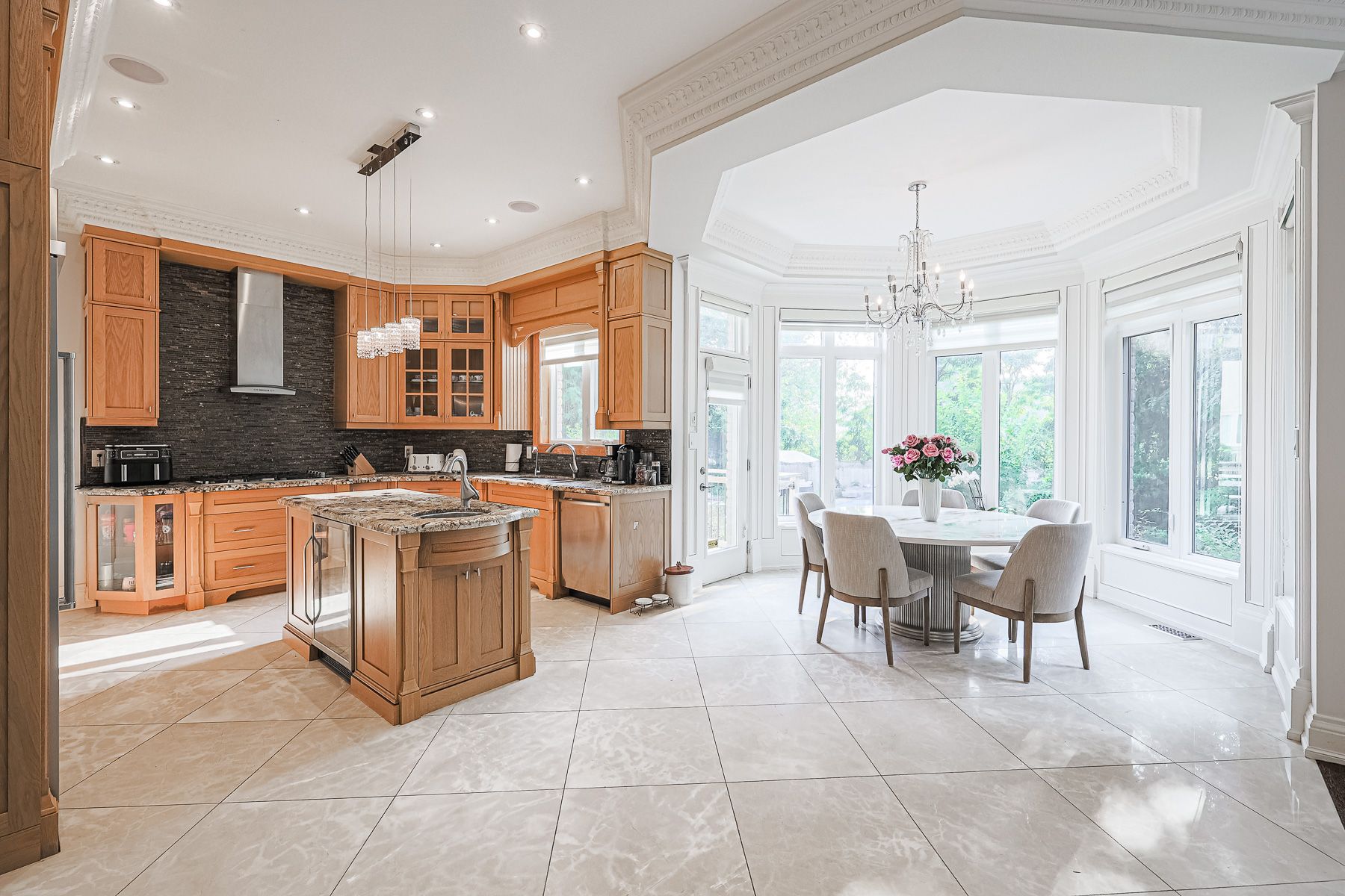 • Gourmet kitchen with a breakfast area and views into the family room.