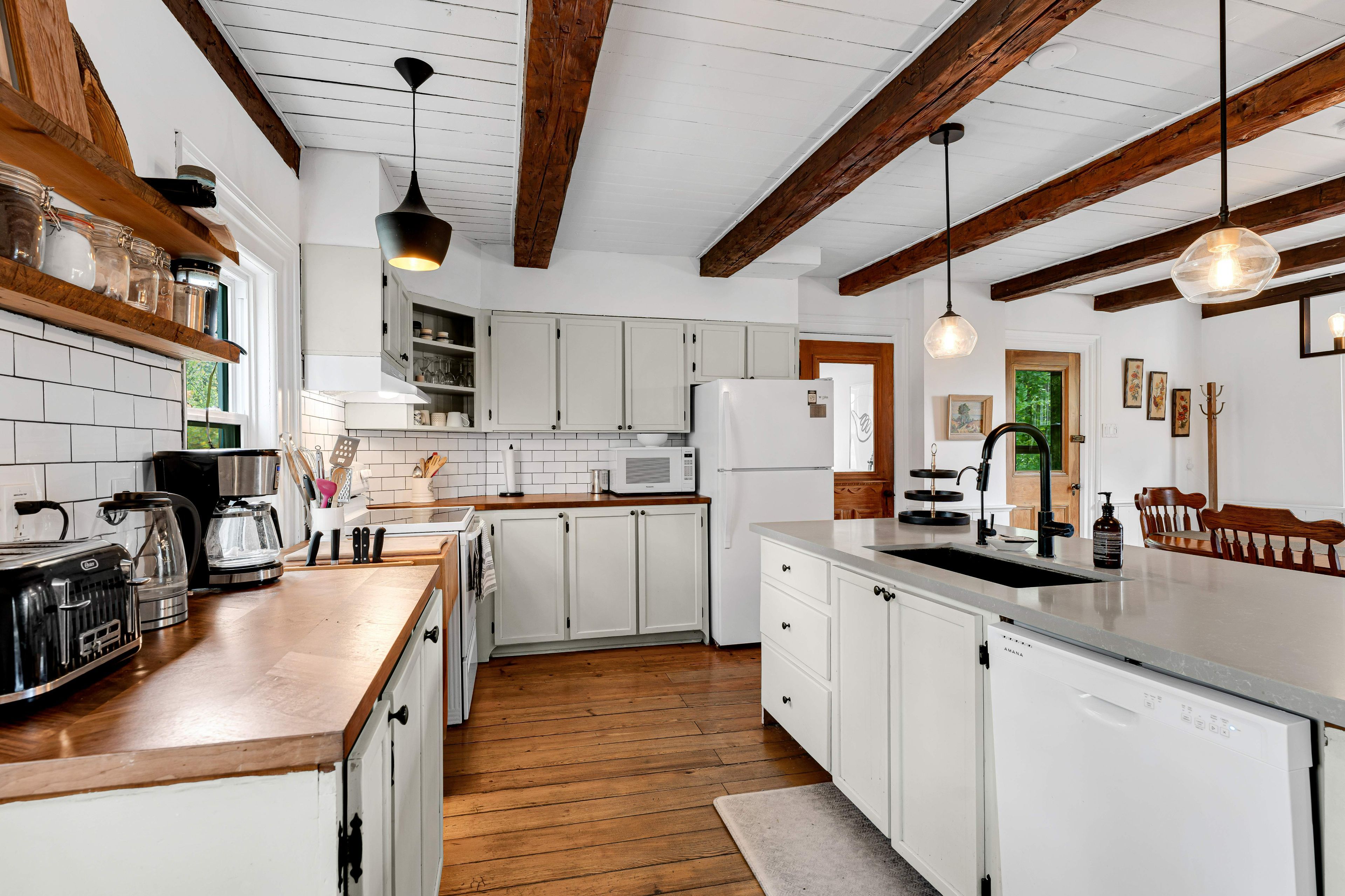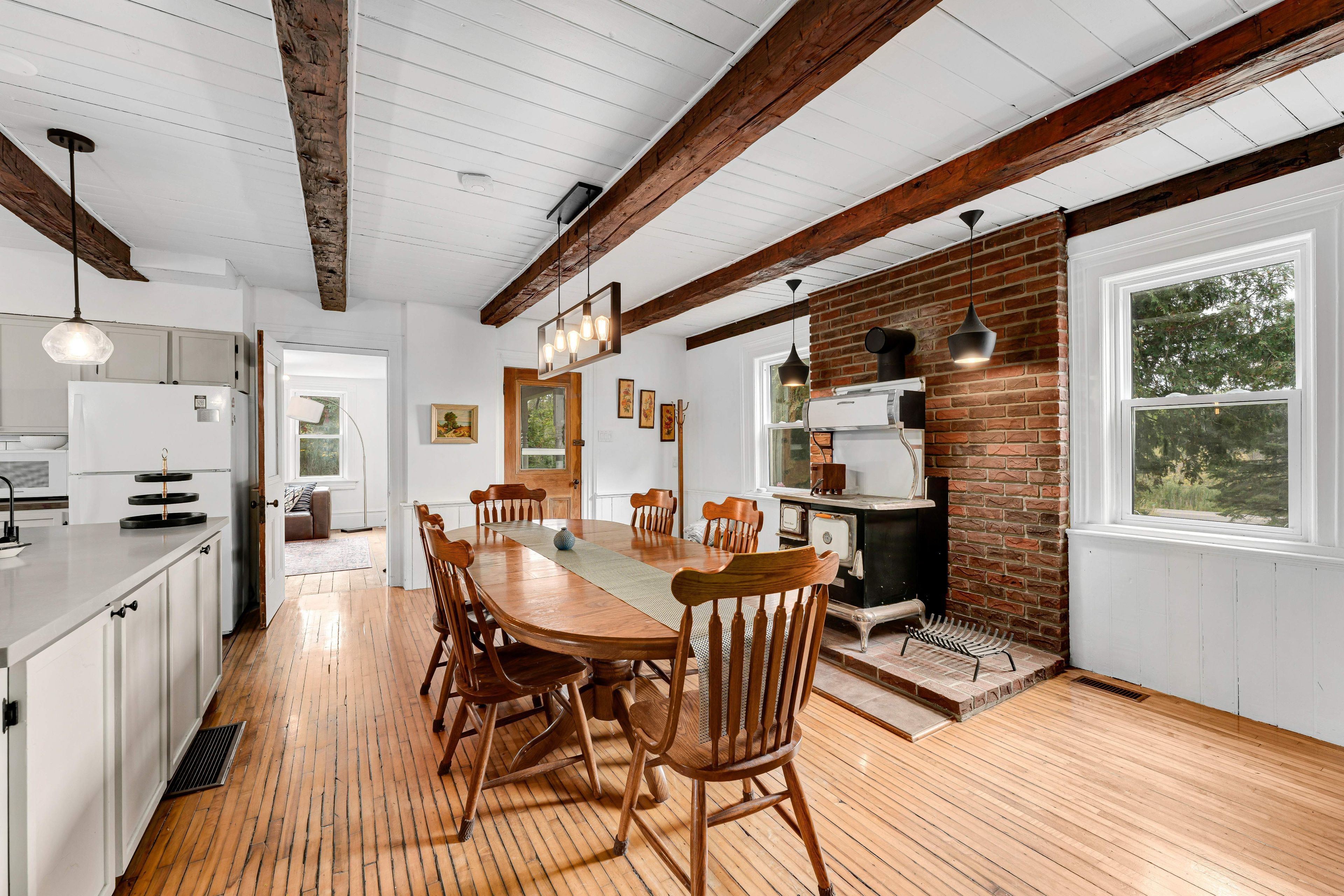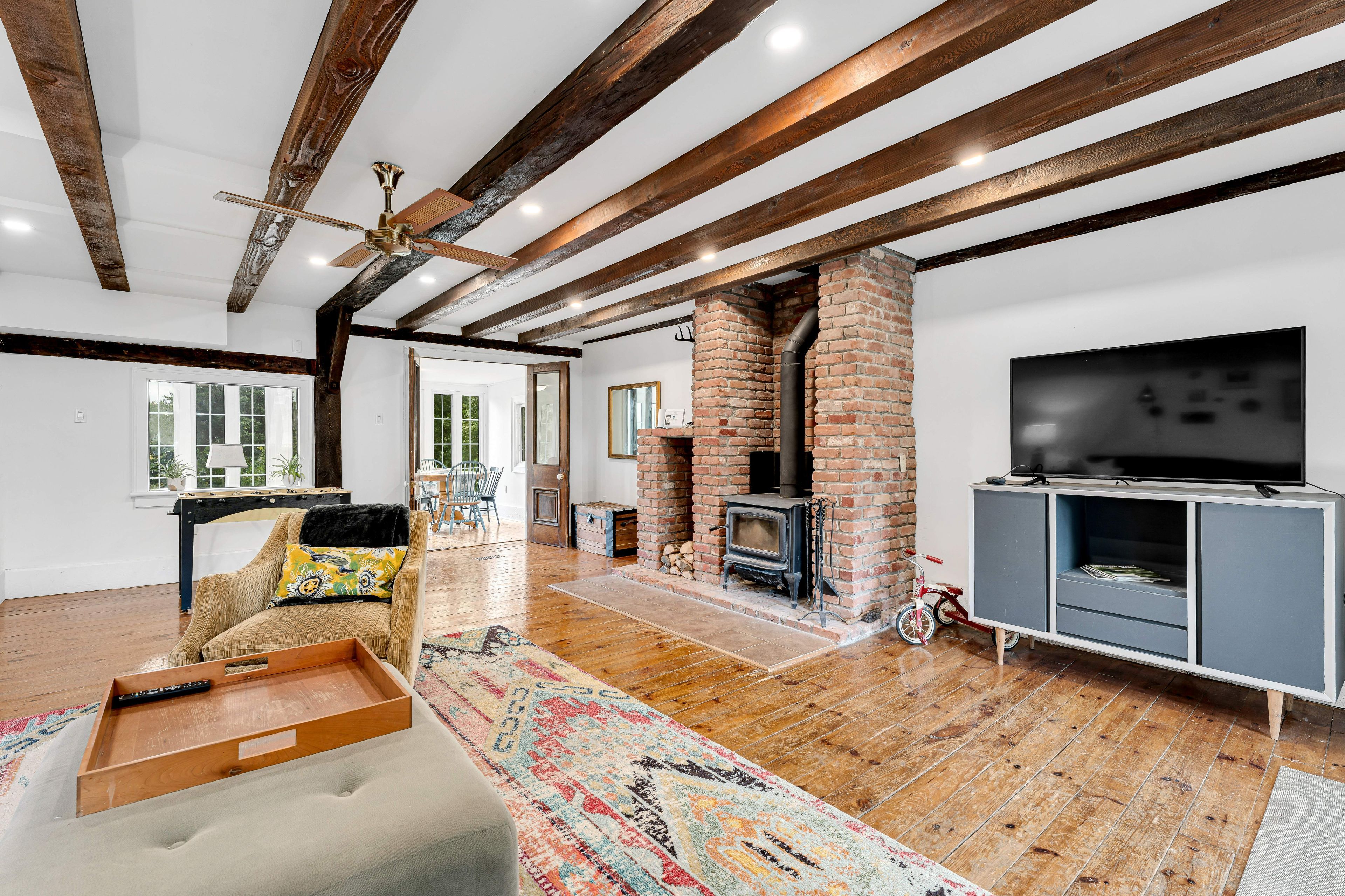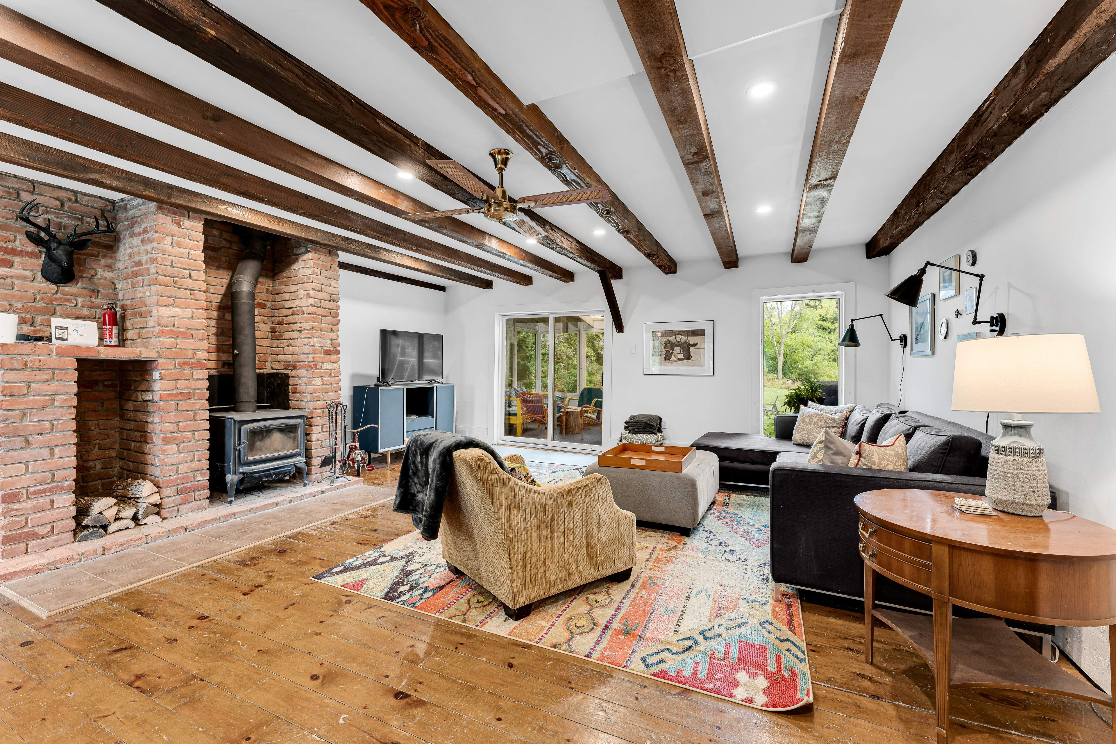 • Spacious family room features a cozy fire and an original wood cookstove.