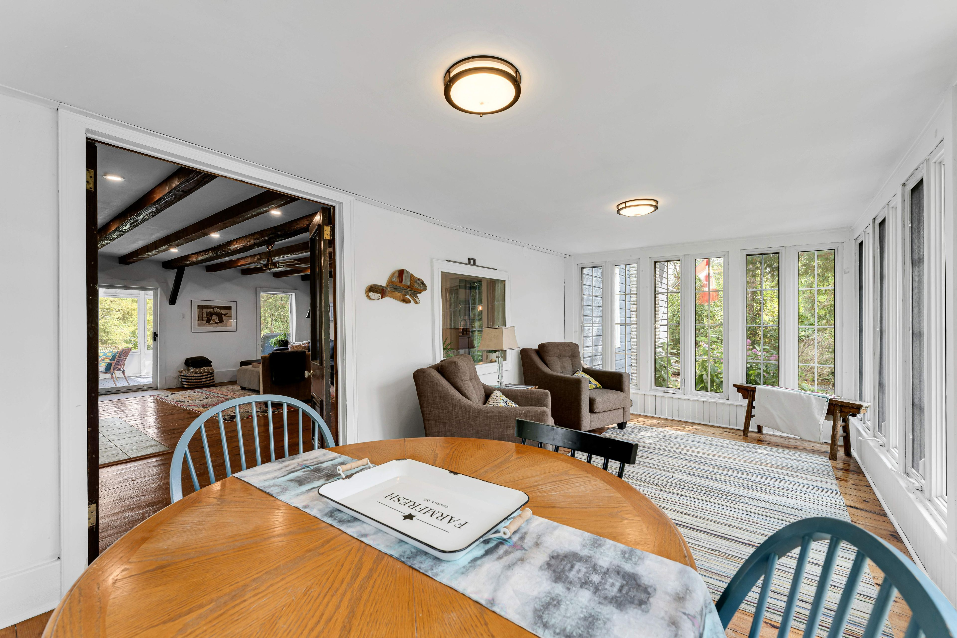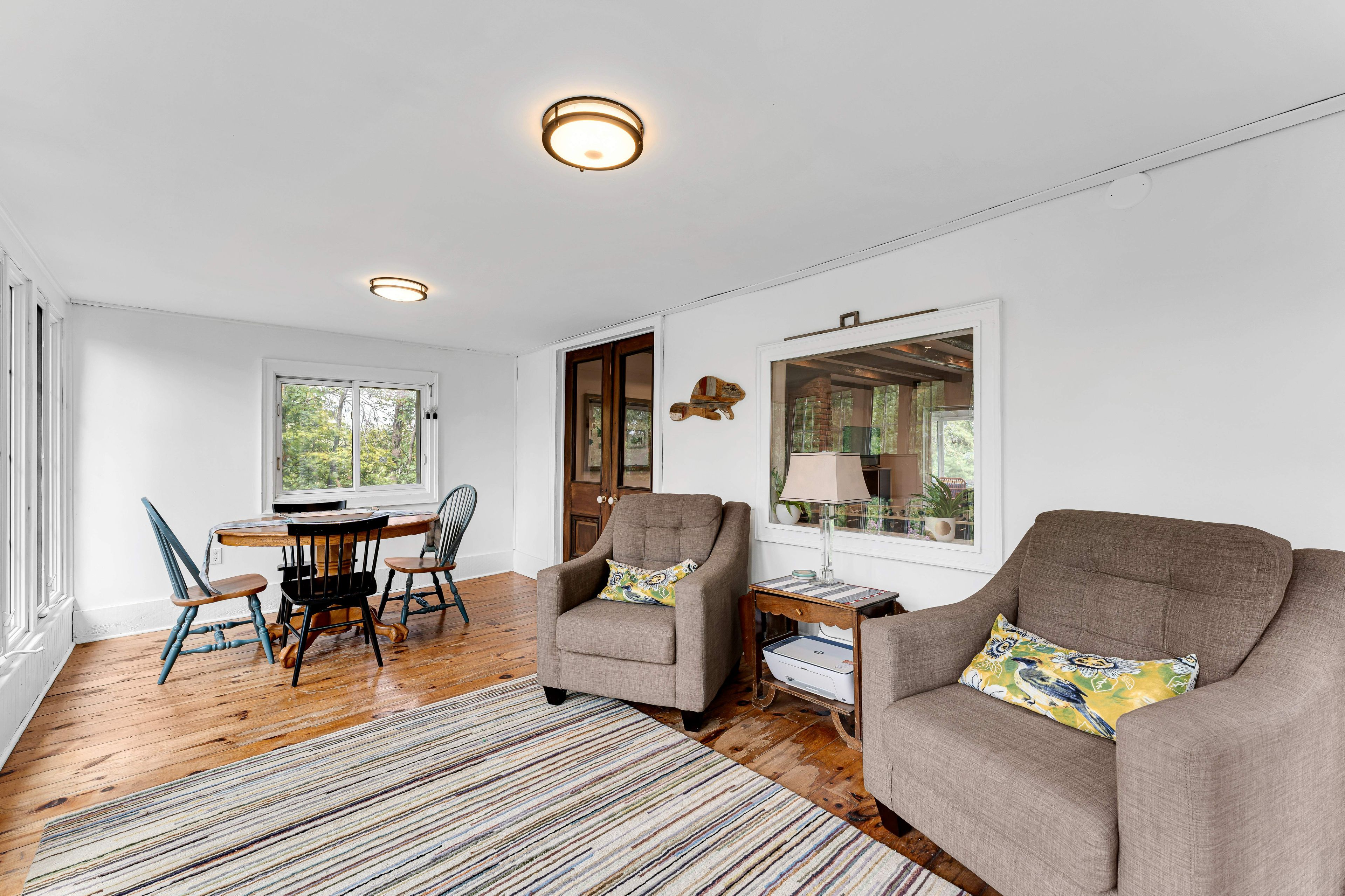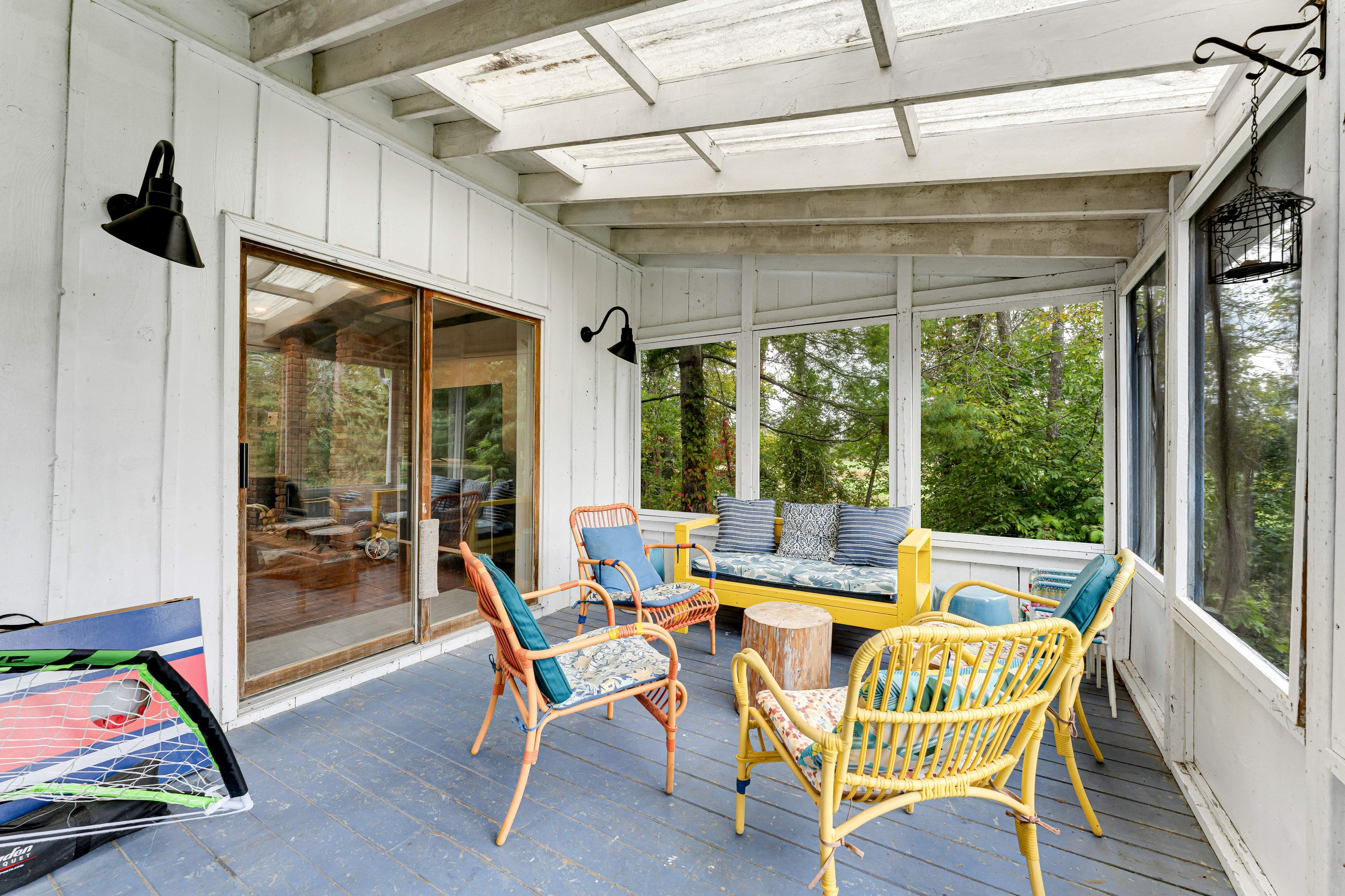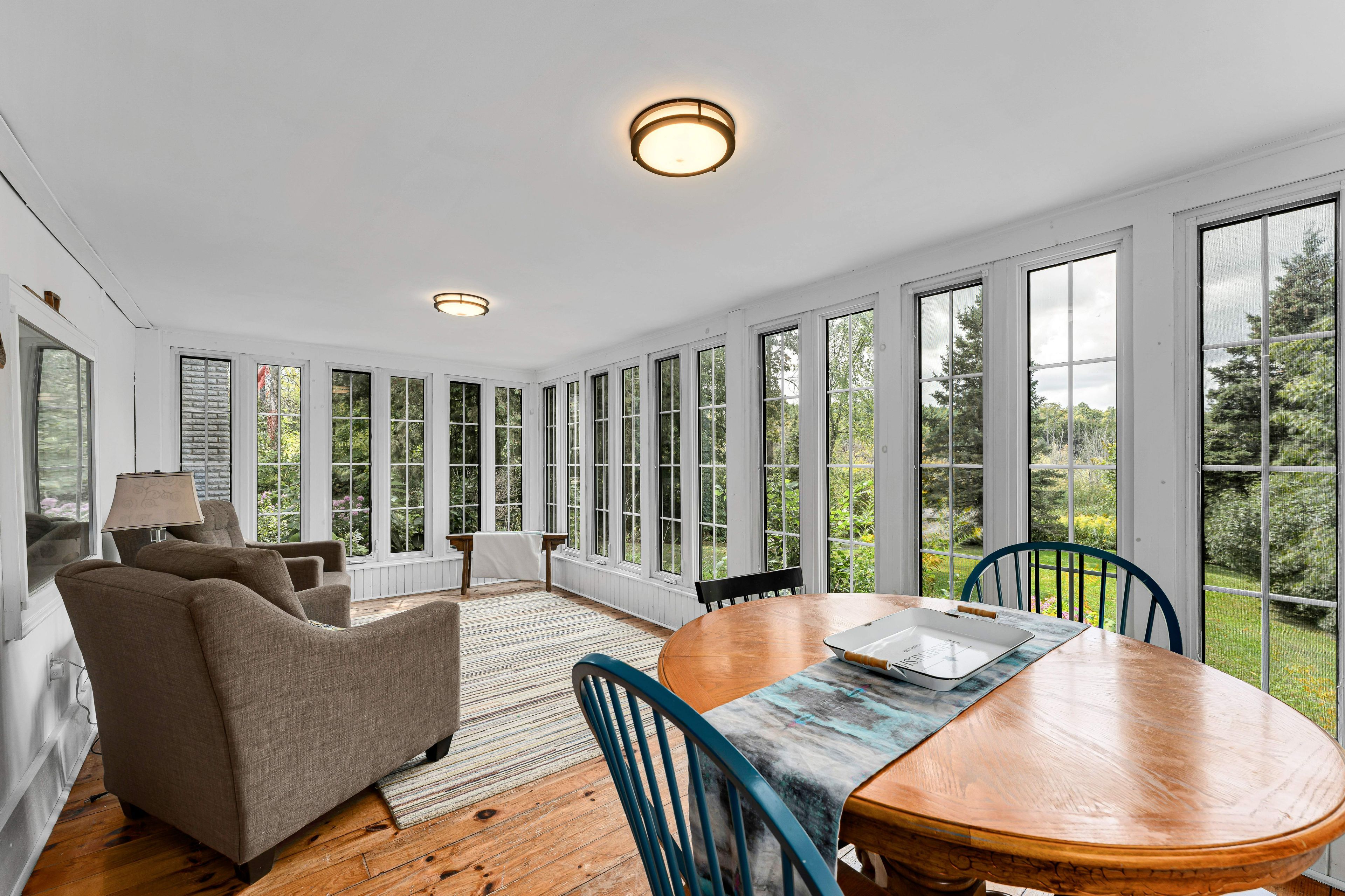 • Bright 4-season sunroom perfect for enjoying sunsets and natural views.