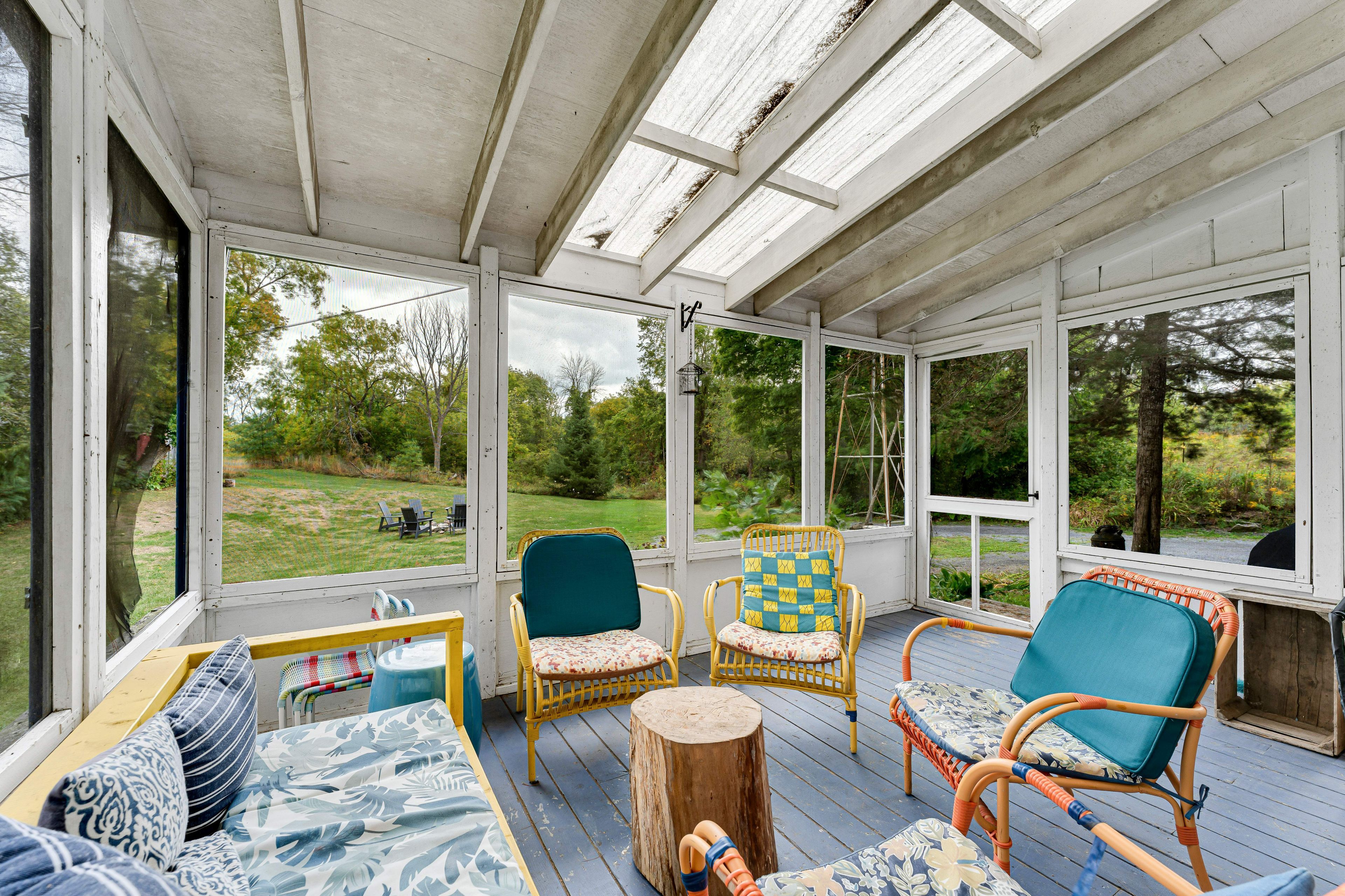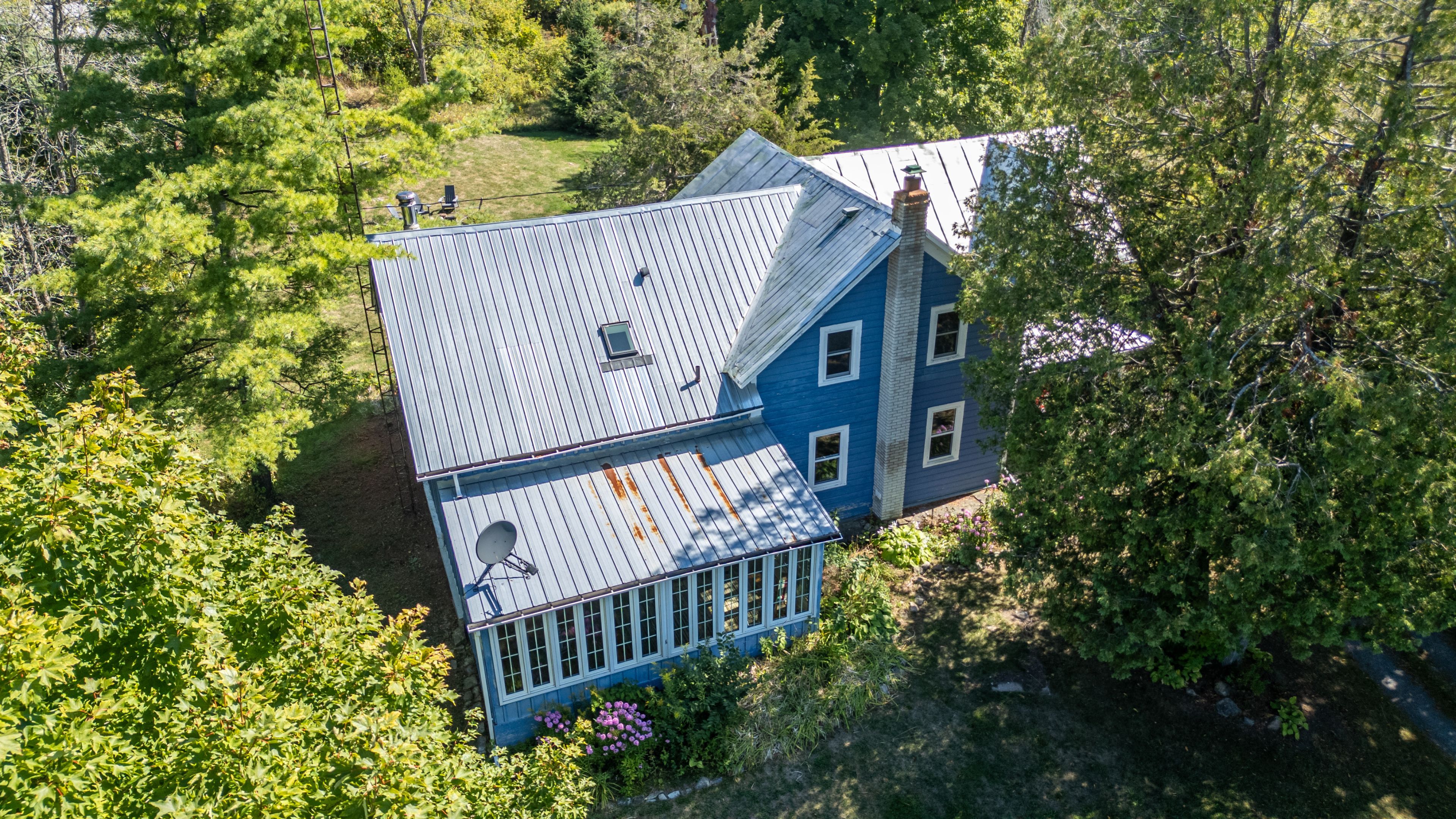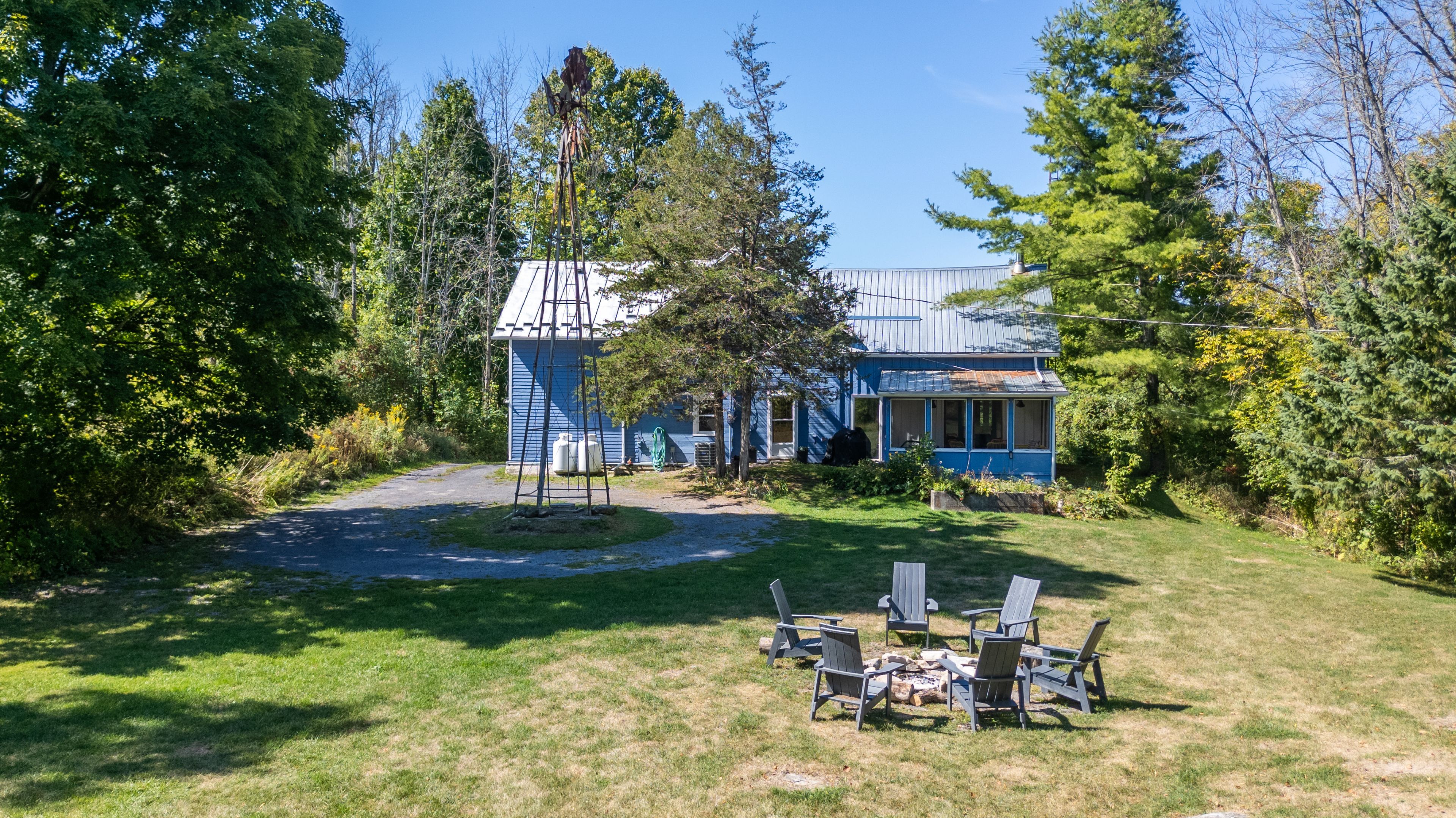 Your country oasis awaits. This lovingly updated farmhouse offers both space and charm as a 4-bedroom, 2-bathroom retreat with 2500 sq. Ft on 3 acres of private land. Imagine sipping coffee in the morning by the fire in the spacious family room, cooking in the freshly renovated kitchen (that kept the original "sweetheart" wood cookstove), or taking in the sunset in the west-facing and light-filled 4-season sunroom. An additional family room with built-in bookshelves is perfect for reading, game nights, or working on your hobbies get a perfect night's sleep in one of the four bedrooms, including a generously sized primary suite (with a modern 3-piece ensuite), and enjoy the ease of top-floor laundry in the second 3-piece bathroom, including original wide plank floors and a cast iron tub. A gardener's dream awaits with ample space for kids of all ages to play, relax by the firepit, or simply walk (or snowshoe) the property. Kick back in the 3-season screened-in sunroom to take in the natural country landscape to ease your peace of mind. A barn outbuilding offers additional storage space for toys and gear, and the property features a variety of spruce, pine, and oak trees planted up on the hill for added privacy and natural beauty. Built in the early 1900s, the home has been lovingly restored to blend rustic charm with modern amenities, including a newer furnace, metal roof, and central air to provide year-round comfort. The circular drive allows for easy access as you make the short trip to in-town amenities in napanee (20 minutes), kingston (35 minutes), and prince edward county (55 minutes) - not to mention the nearby bakeries, egg stands, and local butchers. Whether you are looking to work from home, commute, or simply seek a quiet weekend retreat, the "blue house" is the perfect blend of country living in modern times. (available fully furnished).
