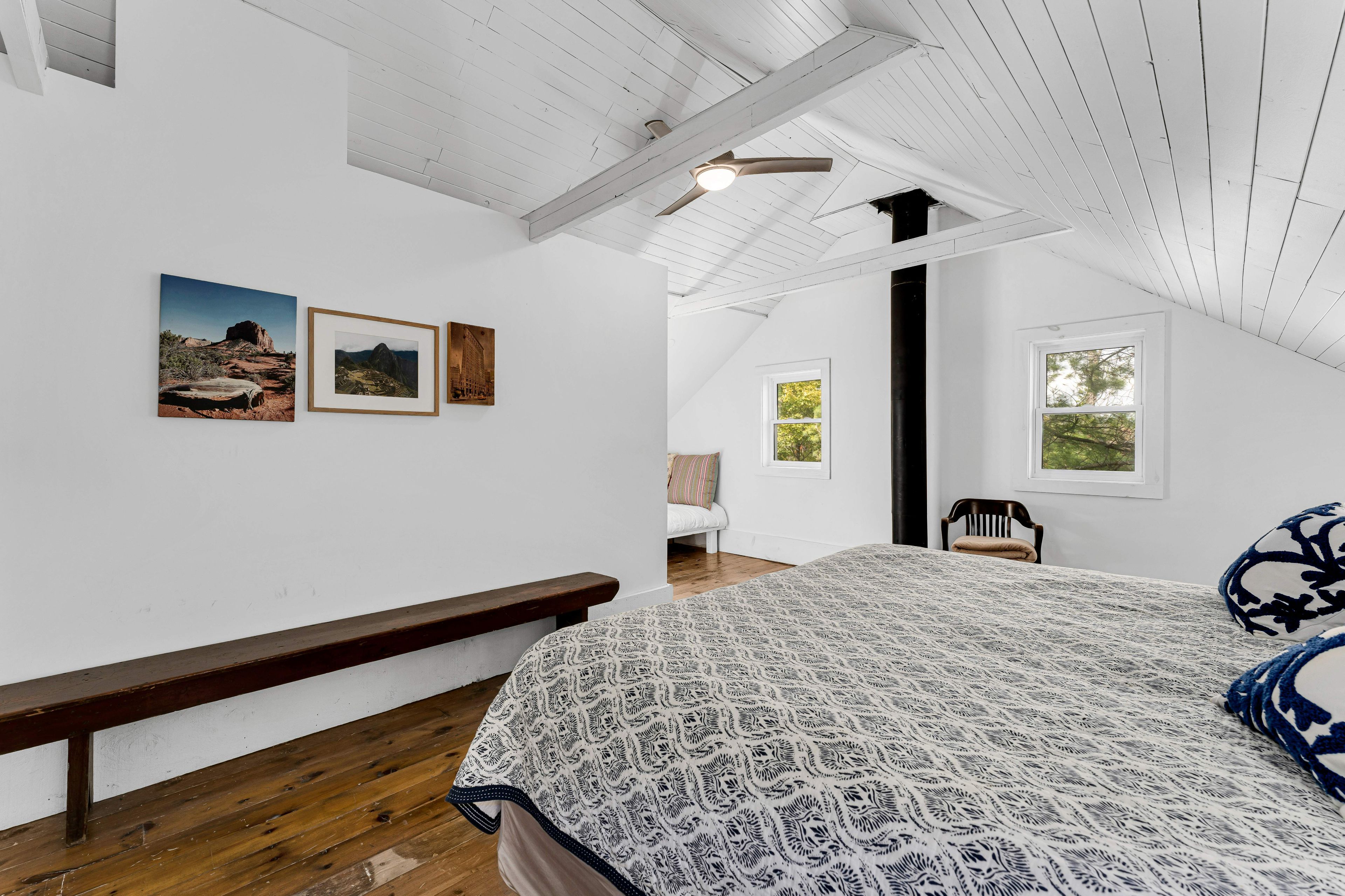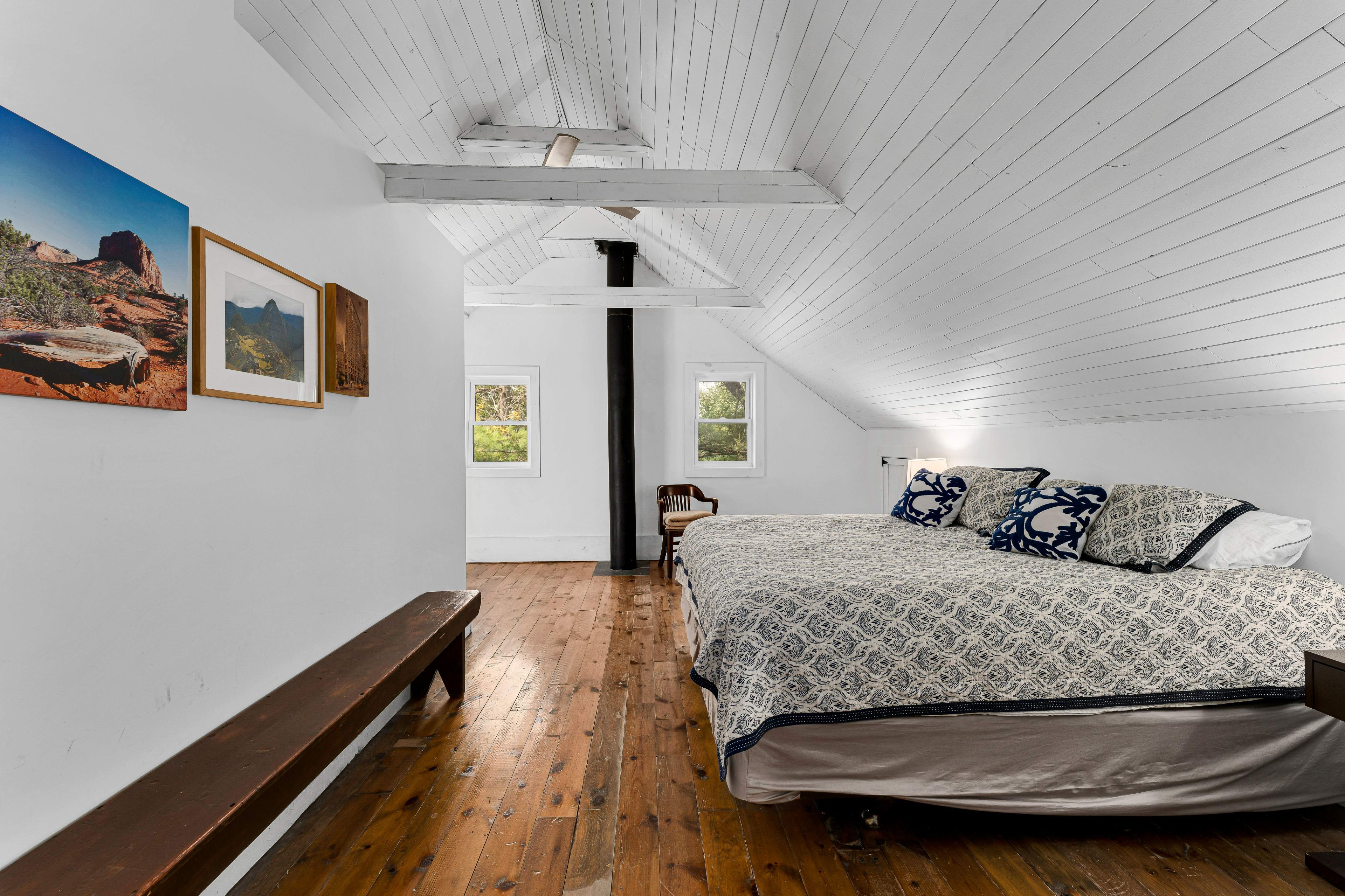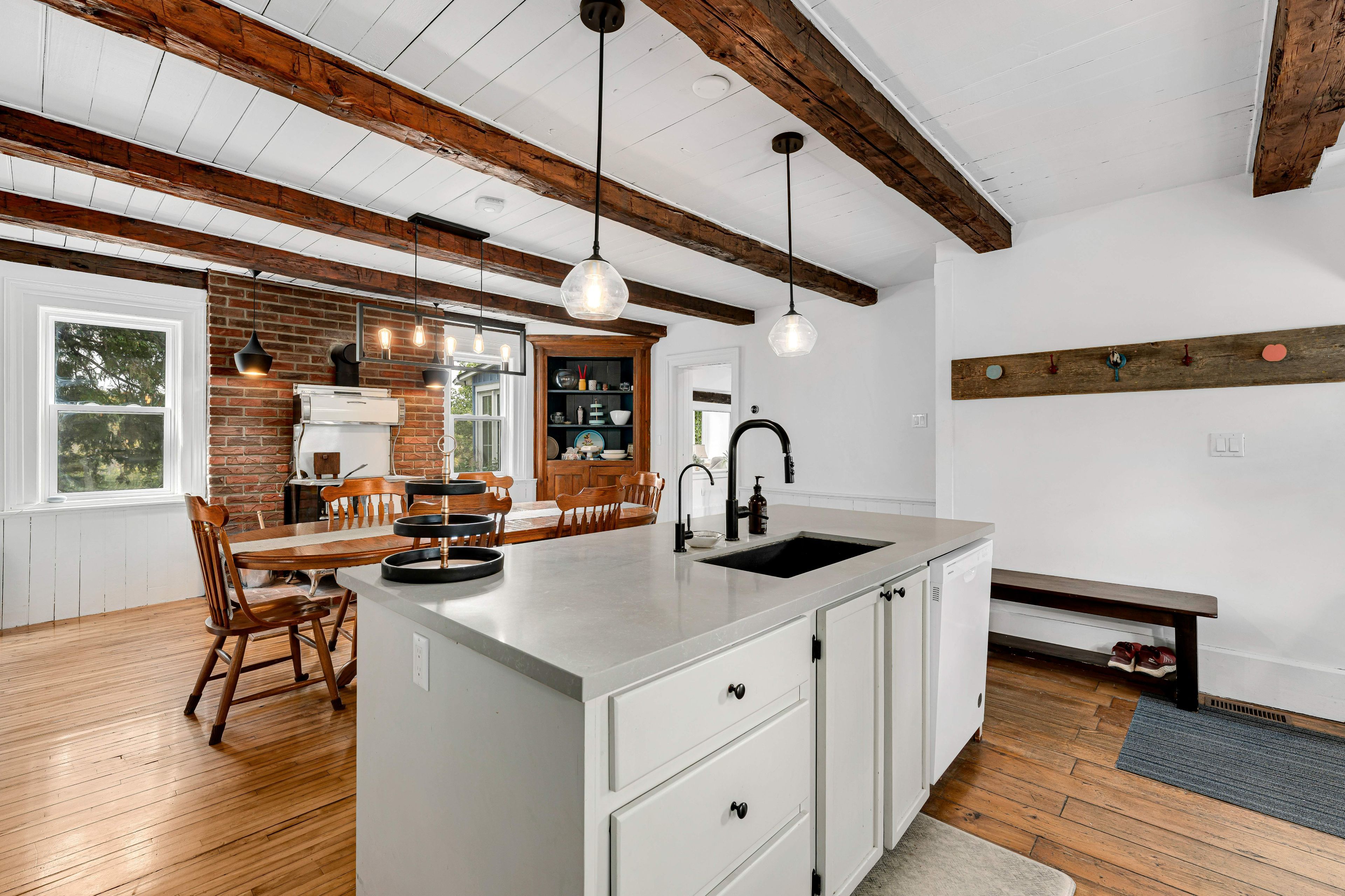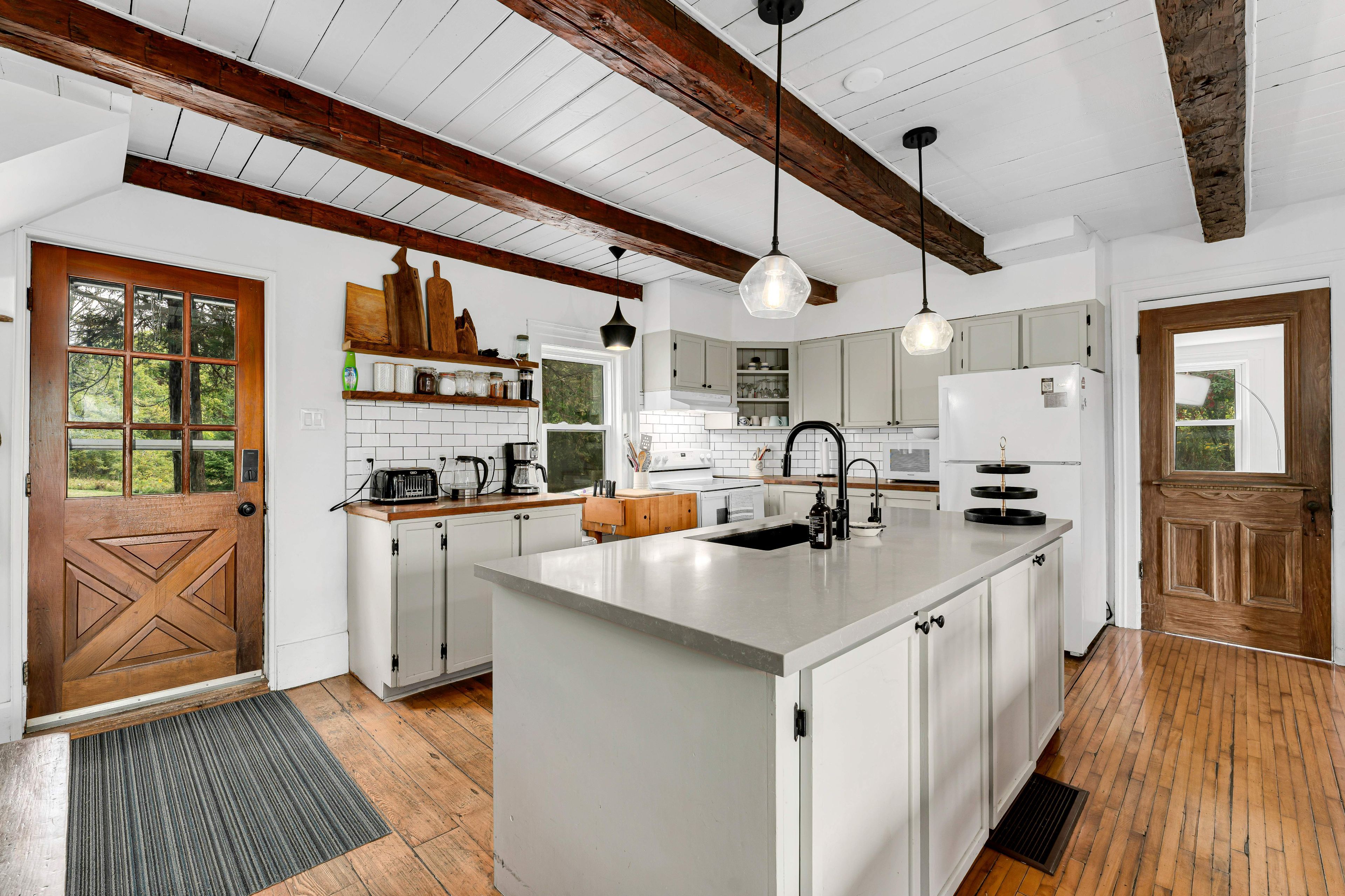 Your country oasis awaits. This lovingly updated farmhouse offers both space and charm as a 4-bedroom, 2-bathroom retreat with 2500 sq. Ft on 3 acres of private land. Imagine sipping coffee in the morning by the fire in the spacious family room, cooking in the freshly renovated kitchen (that kept the original "sweetheart" wood cookstove), or taking in the sunset in the west-facing and light-filled 4-season sunroom. An additional family room with built-in bookshelves is perfect for reading, game nights, or working on your hobbies get a perfect night's sleep in one of the four bedrooms, including a generously sized primary suite (with a modern 3-piece ensuite), and enjoy the ease of top-floor laundry in the second 3-piece bathroom, including original wide plank floors and a cast iron tub. A gardener's dream awaits with ample space for kids of all ages to play, relax by the firepit, or simply walk (or snowshoe) the property. Kick back in the 3-season screened-in sunroom to take in the natural country landscape to ease your peace of mind. A barn outbuilding offers additional storage space for toys and gear, and the property features a variety of spruce, pine, and oak trees planted up on the hill for added privacy and natural beauty. Built in the early 1900s, the home has been lovingly restored to blend rustic charm with modern amenities, including a newer furnace, metal roof, and central air to provide year-round comfort. The circular drive allows for easy access as you make the short trip to in-town amenities in napanee (20 minutes), kingston (35 minutes), and prince edward county (55 minutes) - not to mention the nearby bakeries, egg stands, and local butchers. Whether you are looking to work from home, commute, or simply seek a quiet weekend retreat, the "blue house" is the perfect blend of country living in modern times. (available fully furnished).