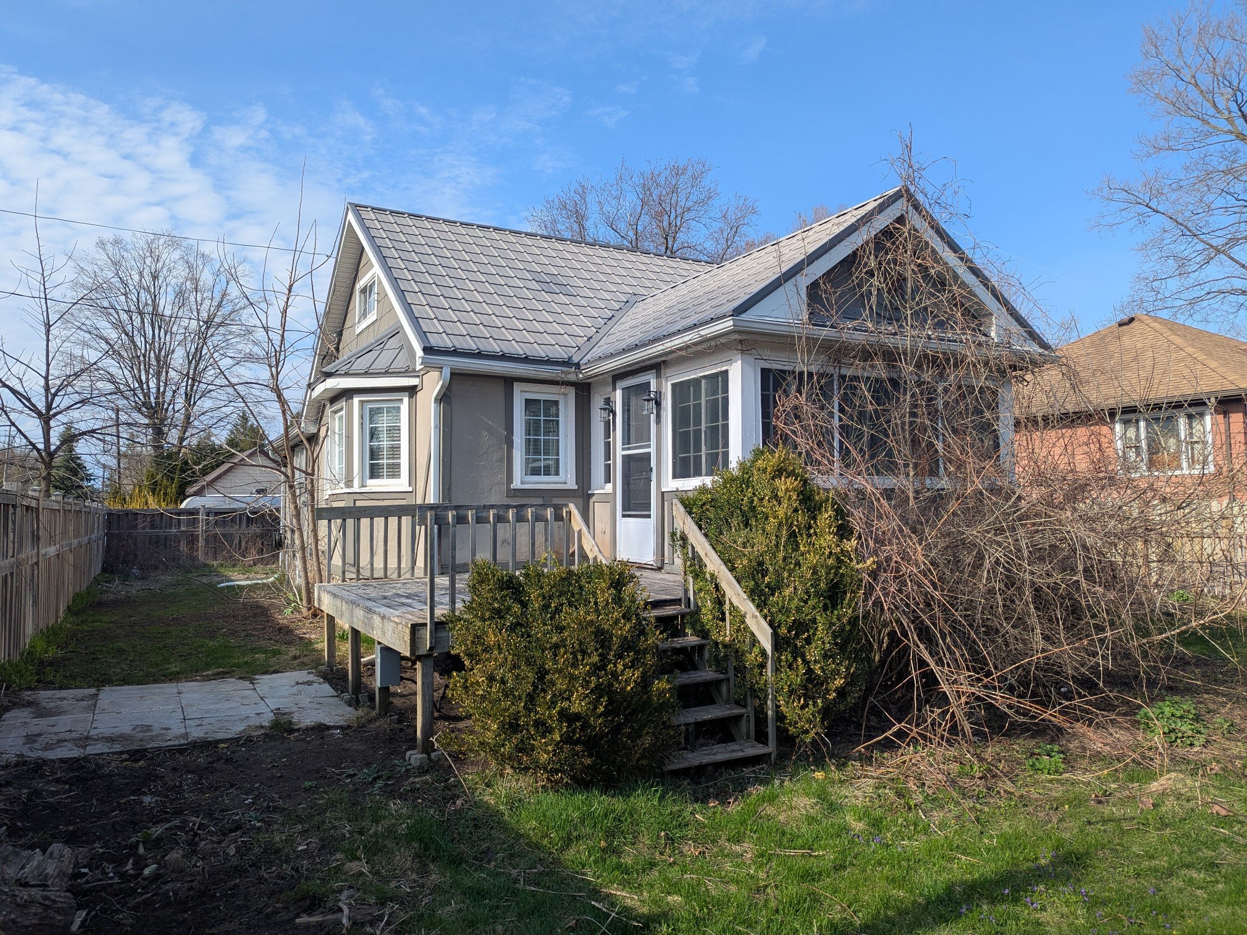 Opportunity knocks! This spacious house features two bedrooms on the main floor plus two additional rooms with low ceilings on the second floor (possibly additional bedrooms!). A storey-and-a-half home sits on a fenced corner lot just a short walk from the sandy shores at the end of 10th line in the sought-after community of alcona. Renovated in 2000, the home features a generous eat-in kitchen, a bright sunroom, and a combined living/dining area, perfect for family living. The main floor features two bedrooms and a full bathroom, while the upper level comprises two additional rooms and a 2-piece powder room. Enjoy the durability of a metal roof and take advantage of the separate two-car garage with loft and private entrance, ideal for storage, a studio, or potential workspace. The cellar-style basement, with original stone foundation and low ceilings, houses the laundry hookups, furnace, and other utilities. Municipal sewer and drilled well in place. Ideal for first-time buyers, investors, or a handy person looking to unlock this property's full potential and being sold as is, where is. No representations or warranties are made by the seller or the seller's agent.