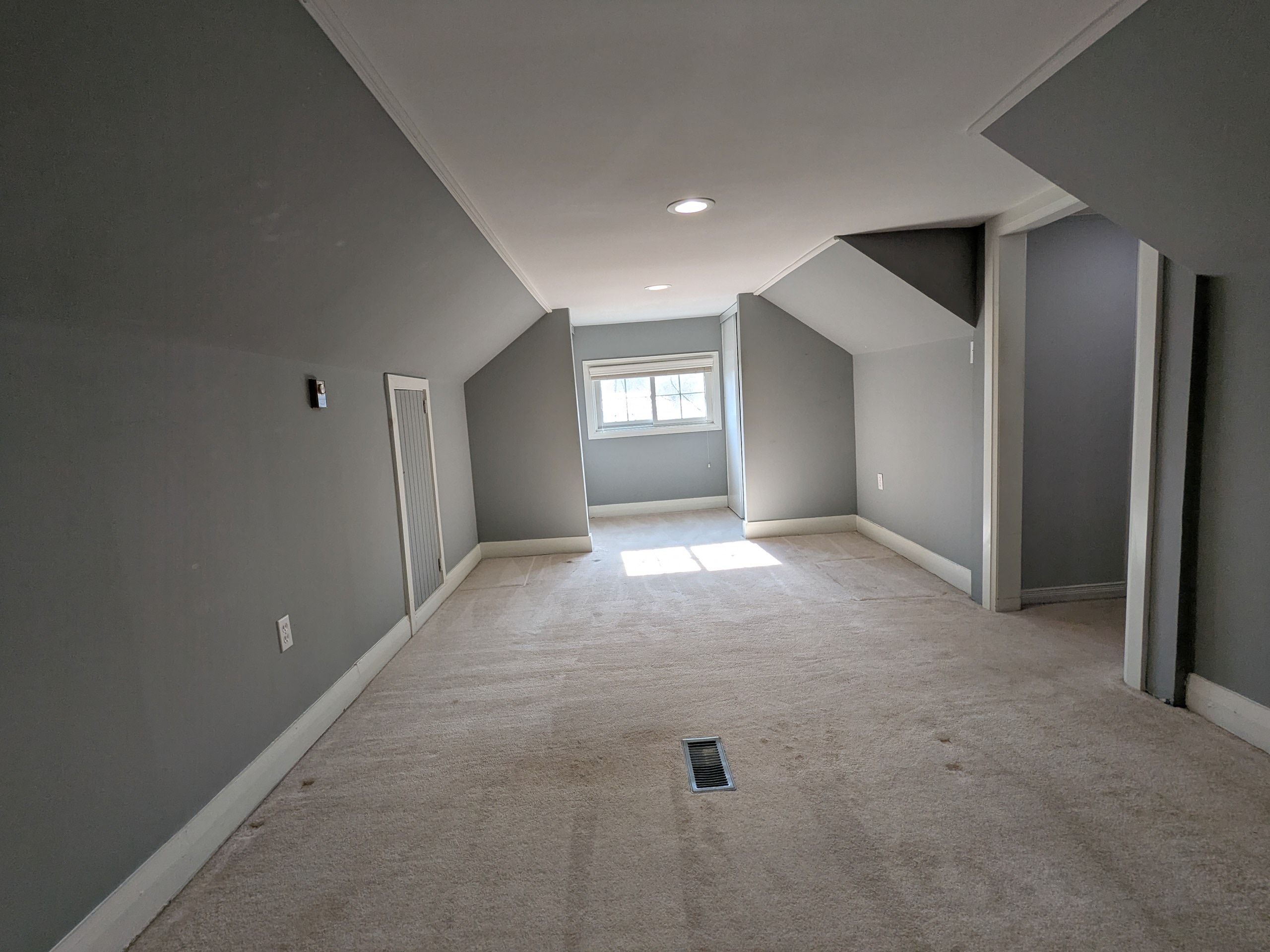 • Spacious house with two main floor bedrooms and extra rooms upstairs.