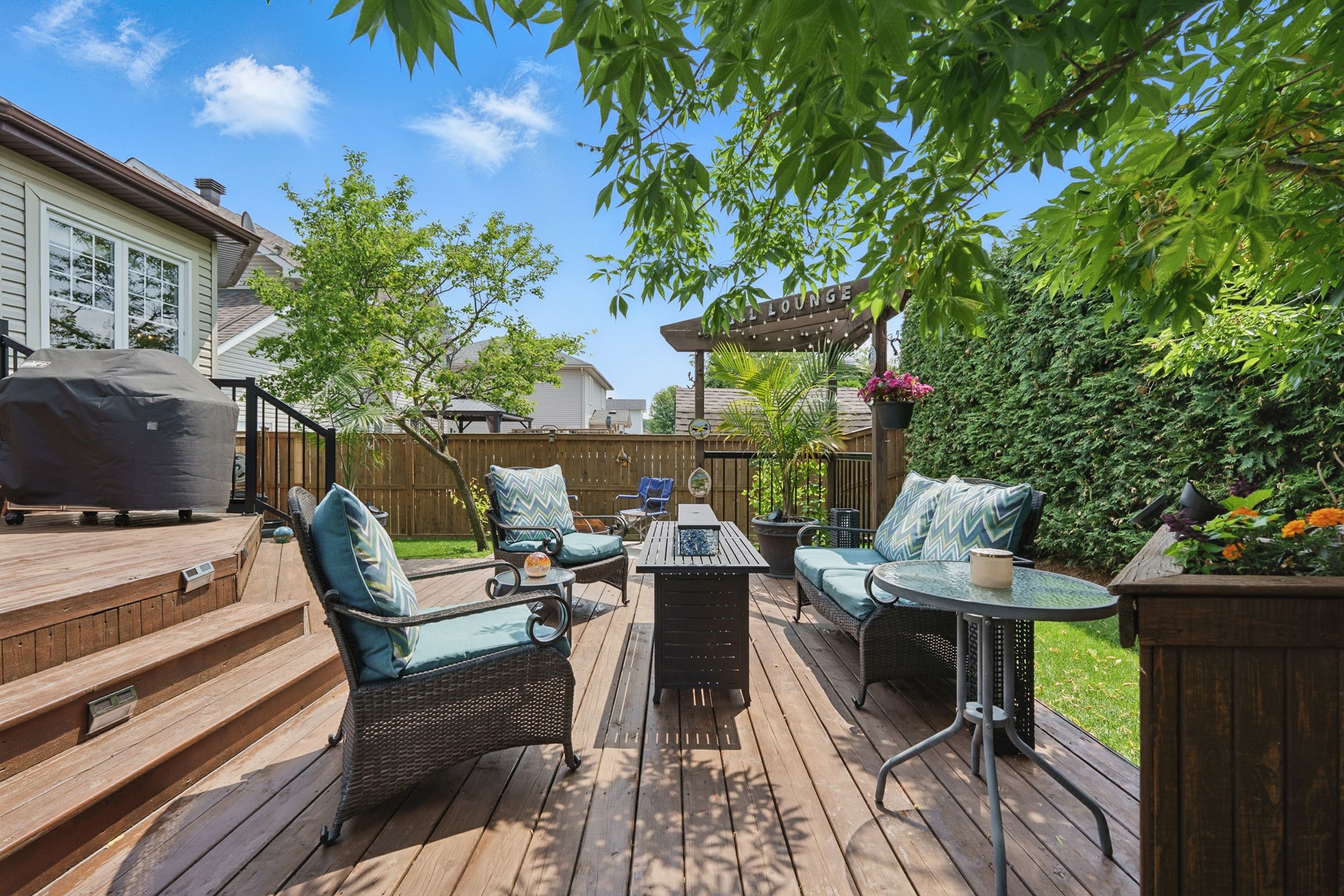 • Two-tier deck in private backyard, perfect for relaxation and entertaining.