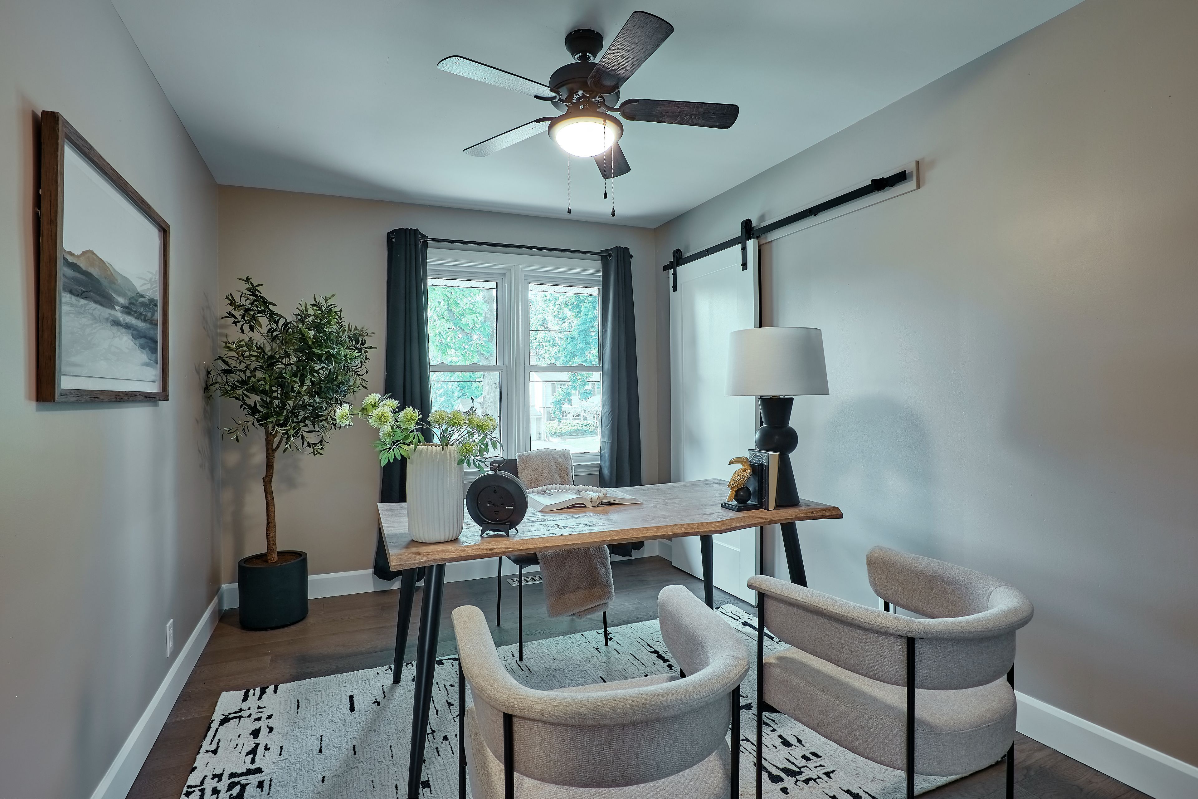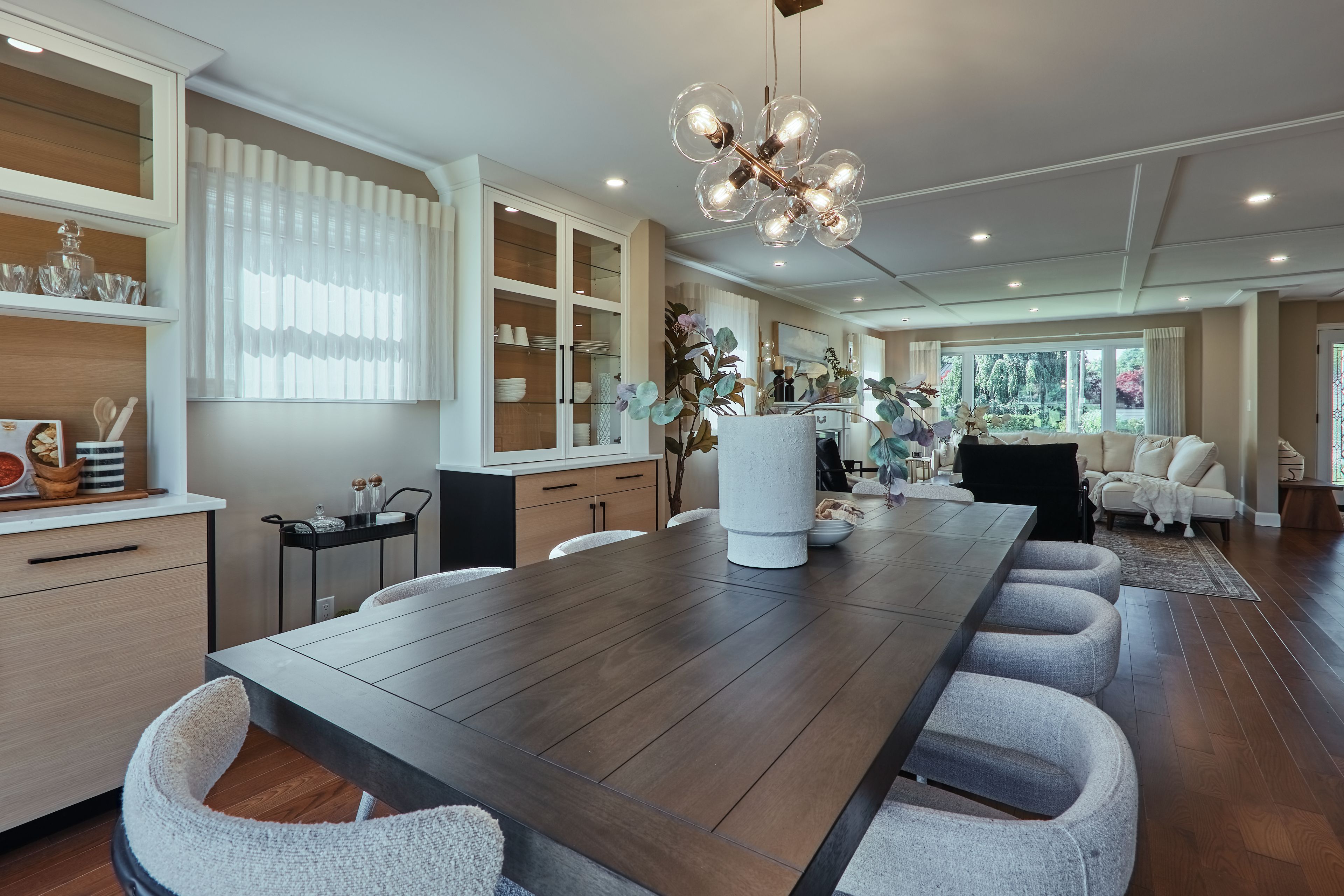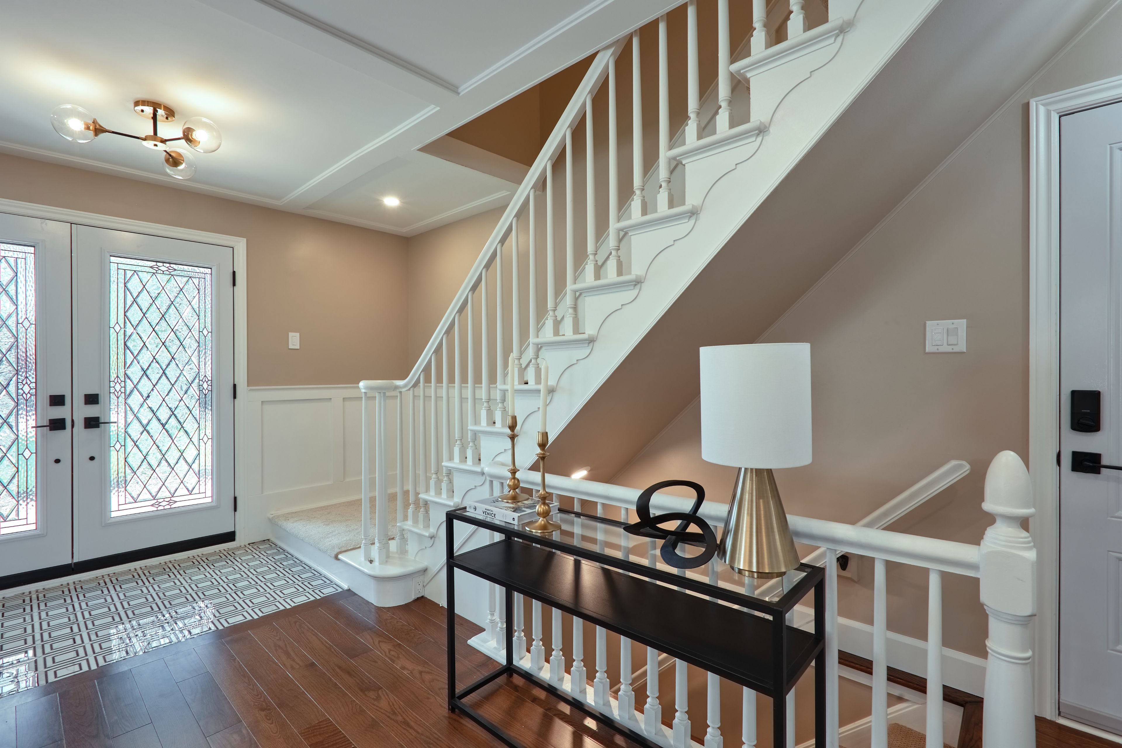 • Spacious main floor with hardwood flooring and beautiful light fixtures.
