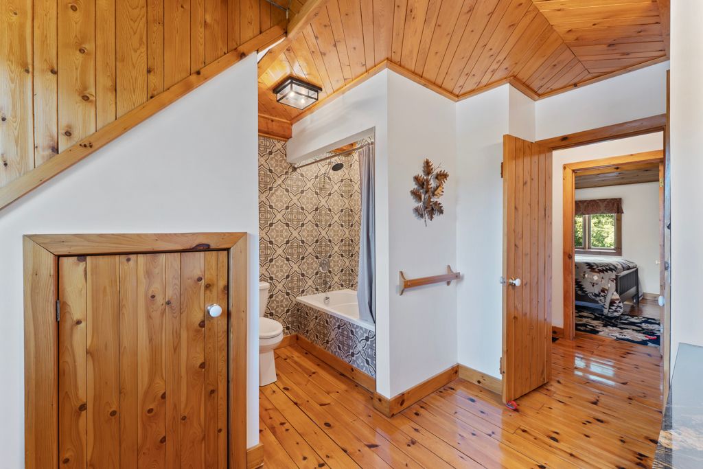 Executive hand-crafted custom built, scandinavian open concept white pine log timber frame house. This well-maintained, turn key log house is a 2 storey, single family home, an attached 2 car garage thats insulated and finished. 271 bay street has it all: curb appeal, quality throughout & prime location in southampton, ontario. Within 500m walking distance to sandy lake huron beaches, downtown southampton & saugeen shores multi-use rail trail. Live or rent @ 271 bay during the summer months. It was an active airbnb listing, successful for over 5 years. 33'x14' back deck. Natural gas bbq connections. Birch wood kitchen cabinets. Pot & pan drawers. Pantry, plus pantry with pull out drawers. Hand carved totem pole. Double closets all bedrooms. Comfort height toilets. Wet bar plumbing hookups. 200a electrical service panel. White pine logs on the main floor. Tongue & groove pine cathedral ceilings. Exposed timber beams on 2nd floor with drywall. Spray foam insulation. Covered front porch. Granite kitchen countertops & vanities from brazil. Quartz double deep kitchen sink. Sandpoint well with pump for irrigation sprinklers & garden hoses. Irrigation programmer with remote. Oak & pine floors. Douglas fir stair treads. Cedar wood hand railings.