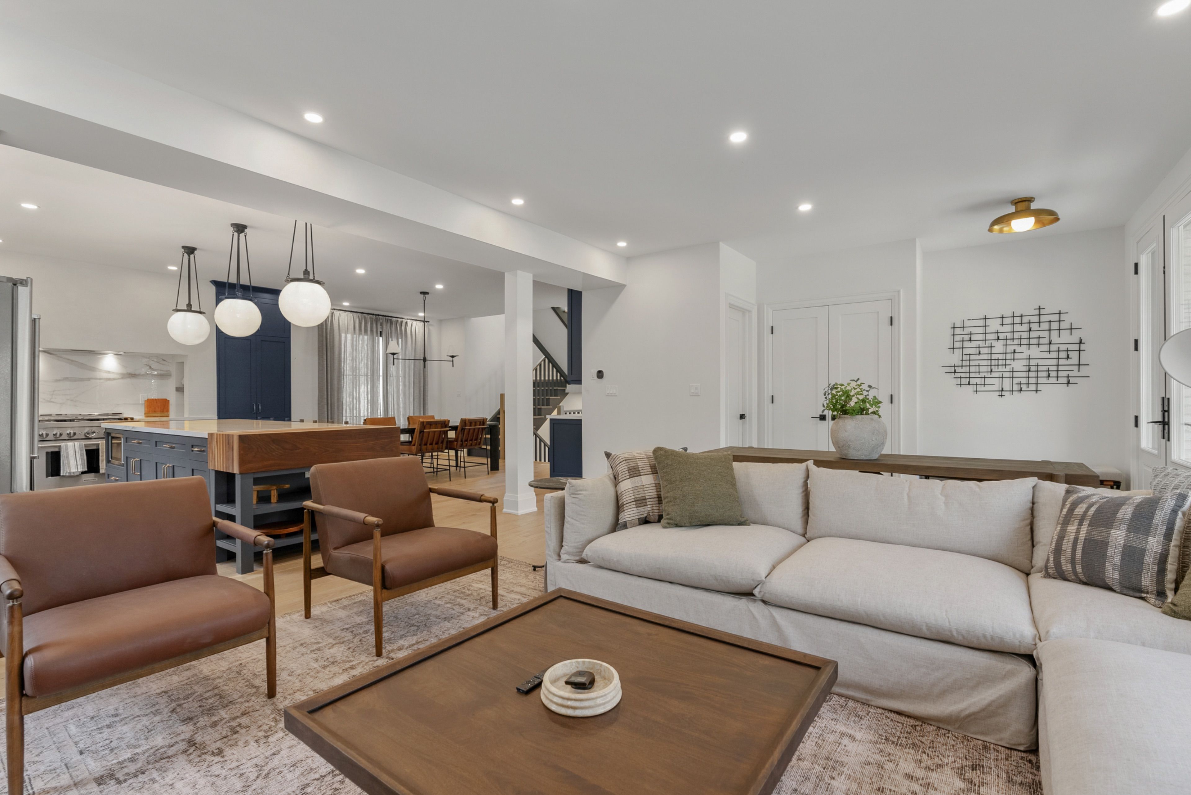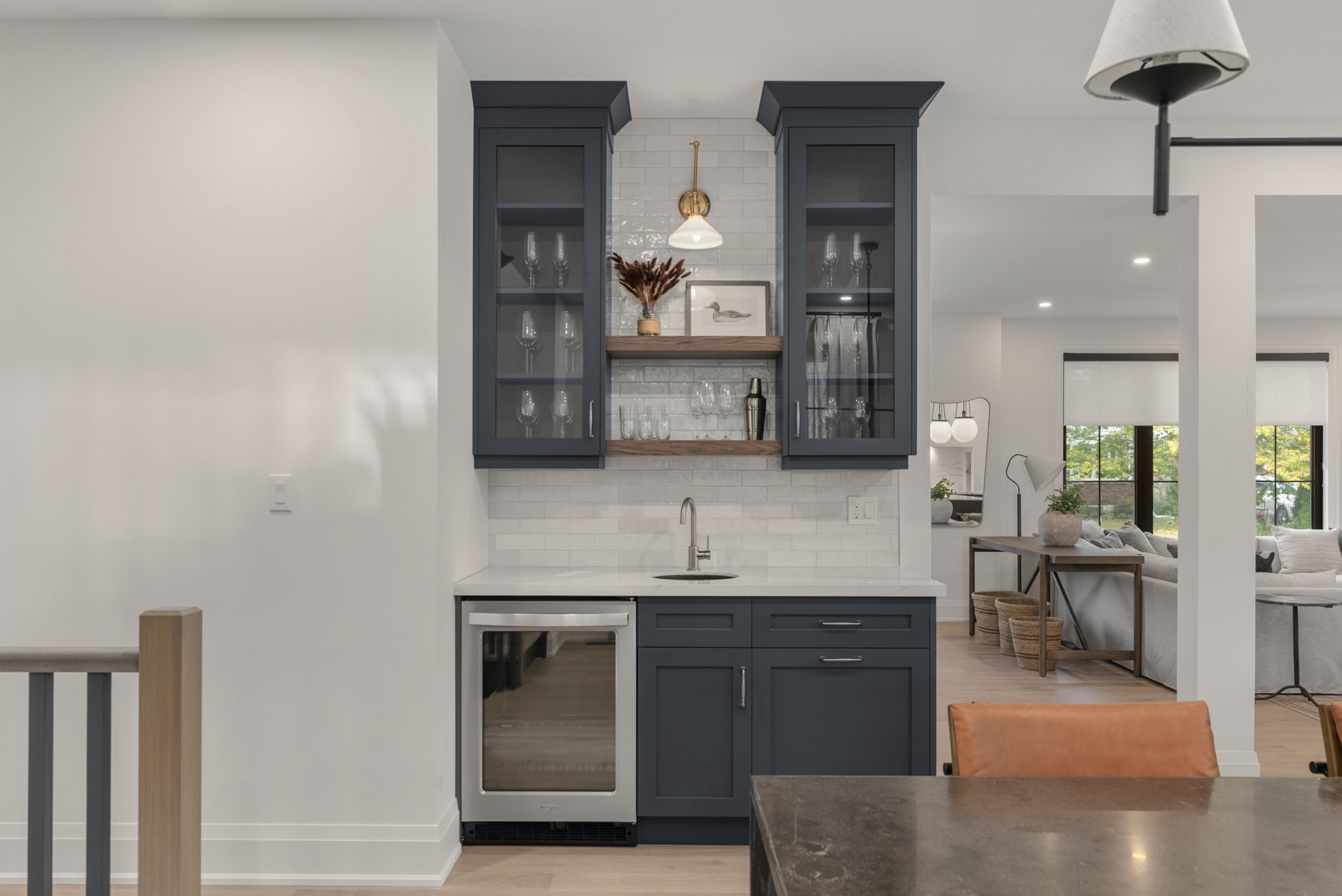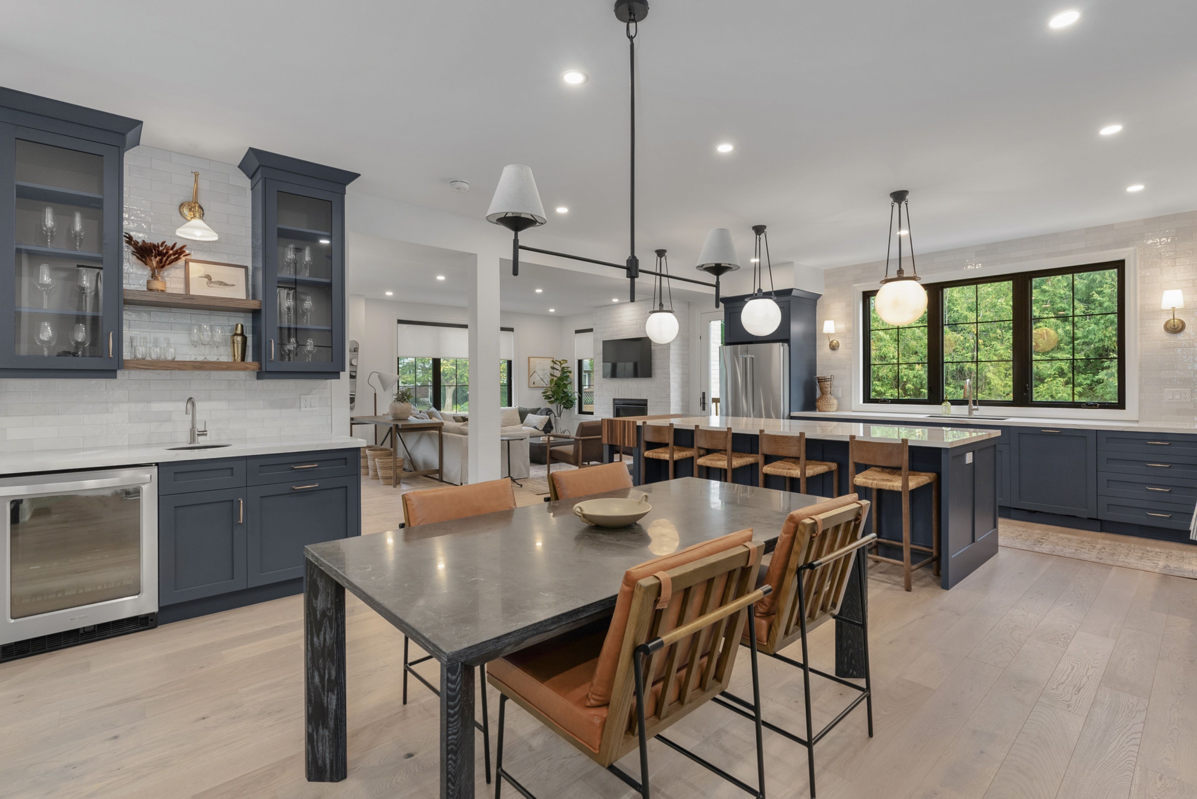 • Elegant kitchen with oversized quartz island and fully equipped bar.