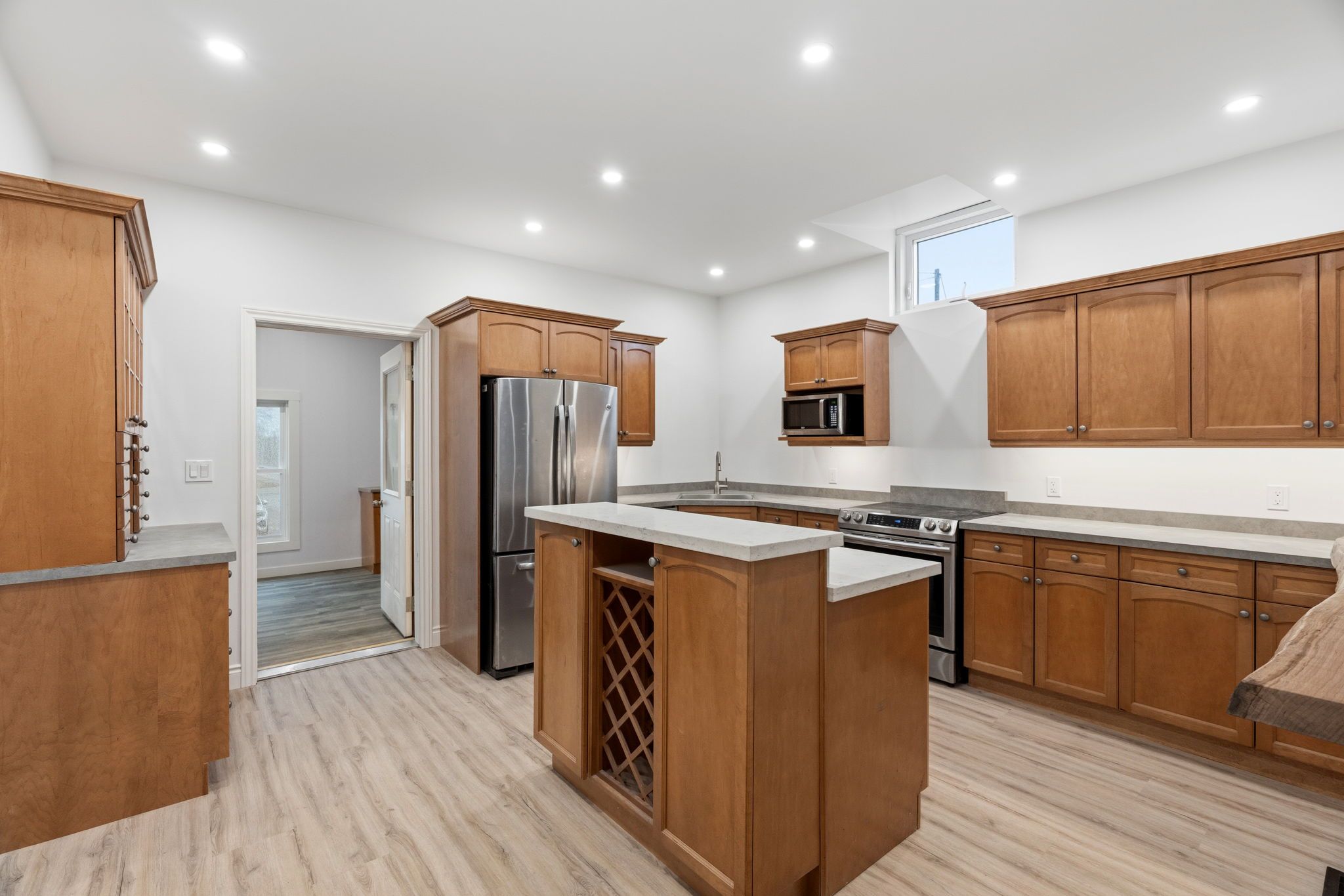 Unique opportunity offering this fully renovated main level, with separate office/retail/commercial space out front for many uses. Fully renovated main floor 2 bedroom apartment at the rear of the building with own access. High ceilings throughout the main level as well as access to full unfinished basement with plenty of room for storage. Upstairs, with a separate entrance and two private balconies, there is another newly renovated 2 bedroom apartment. The building is heated with force air gas furnace (2025) and central air (2025). Ample parking and single detached garage available for use.
