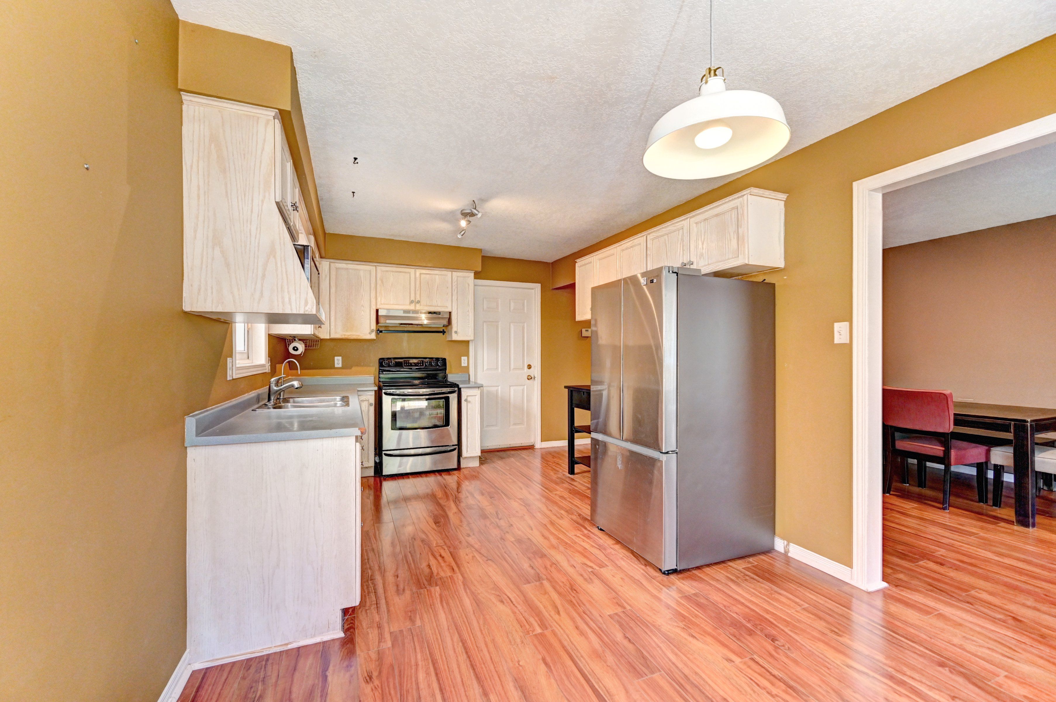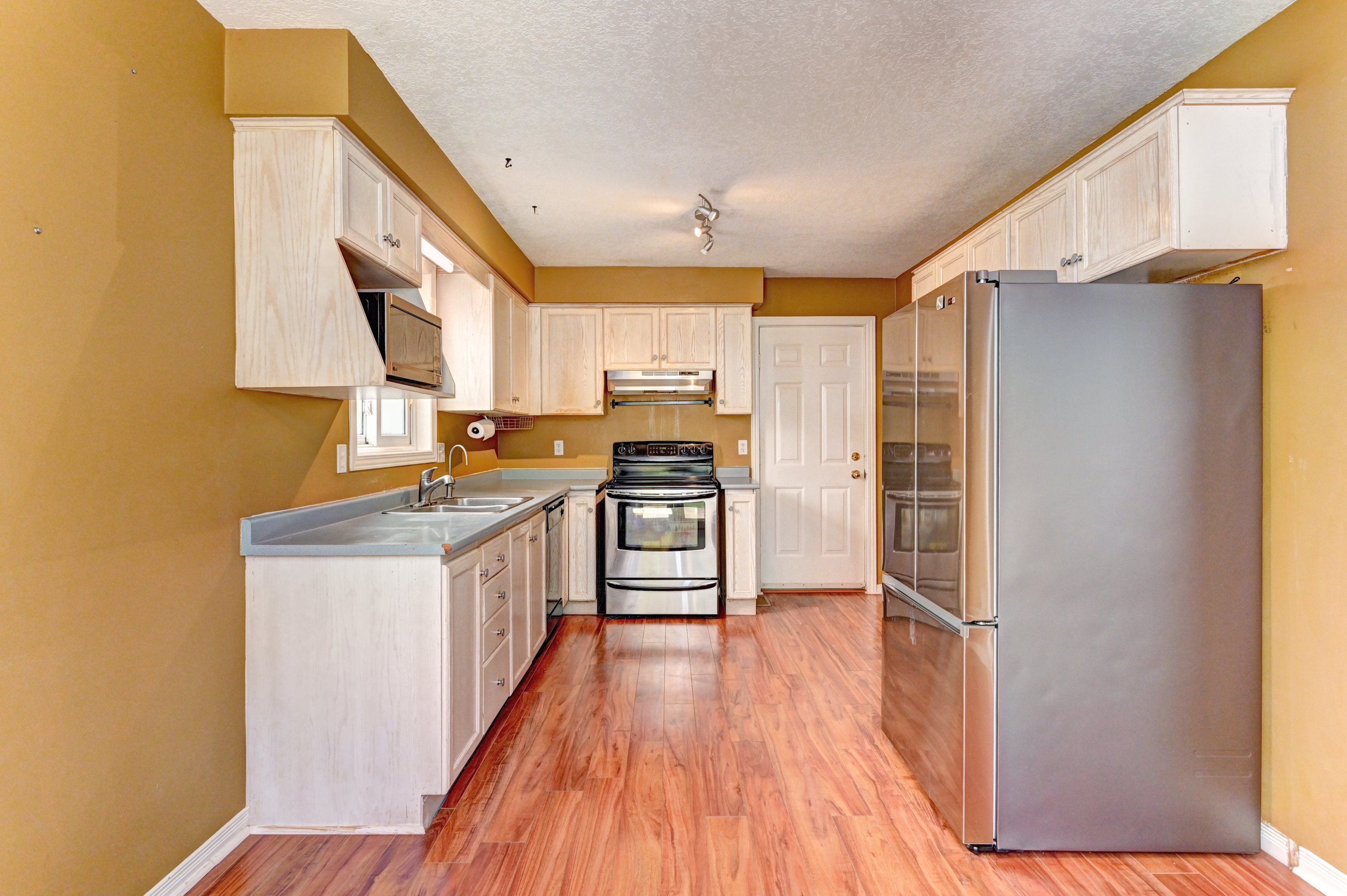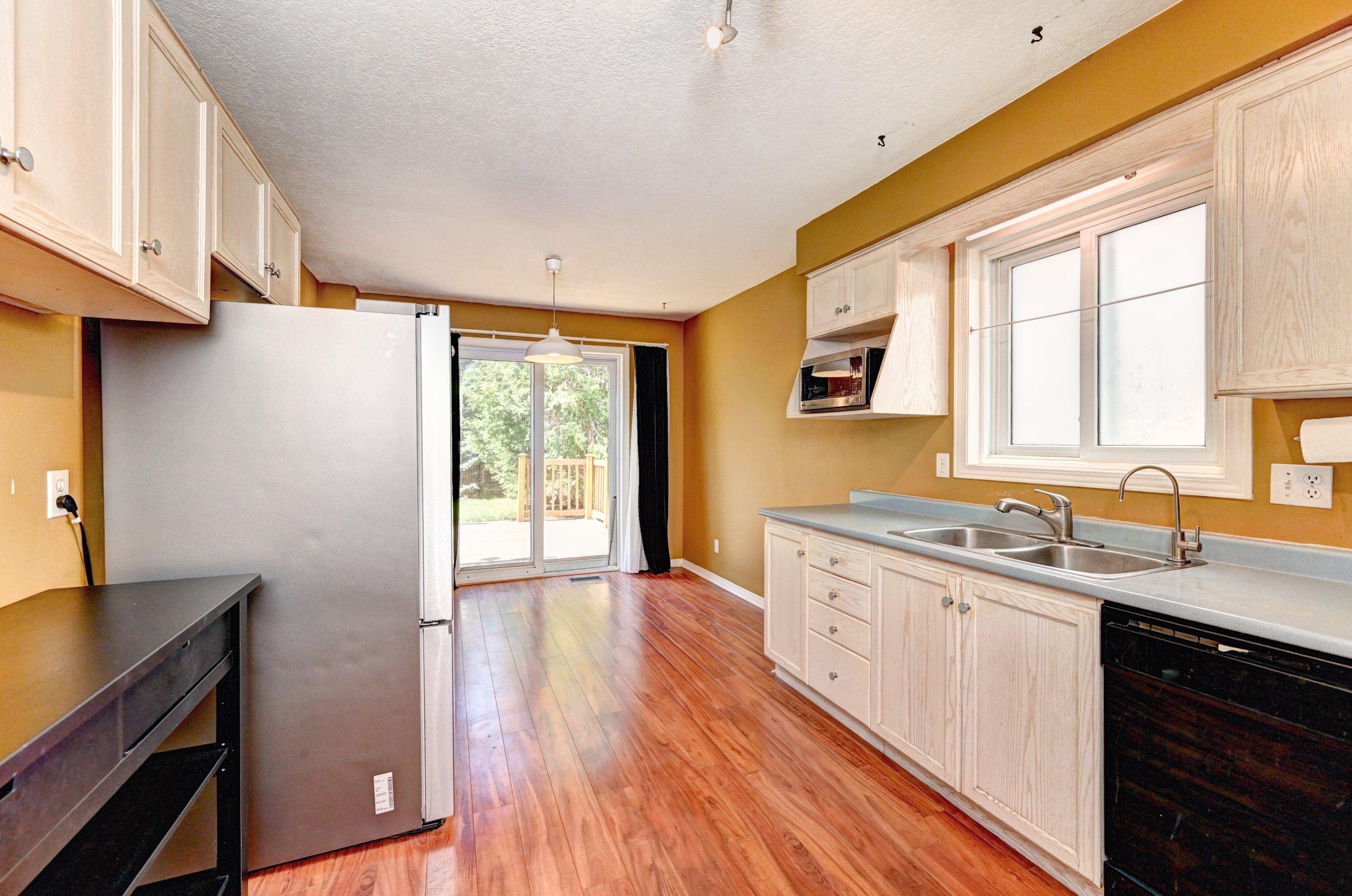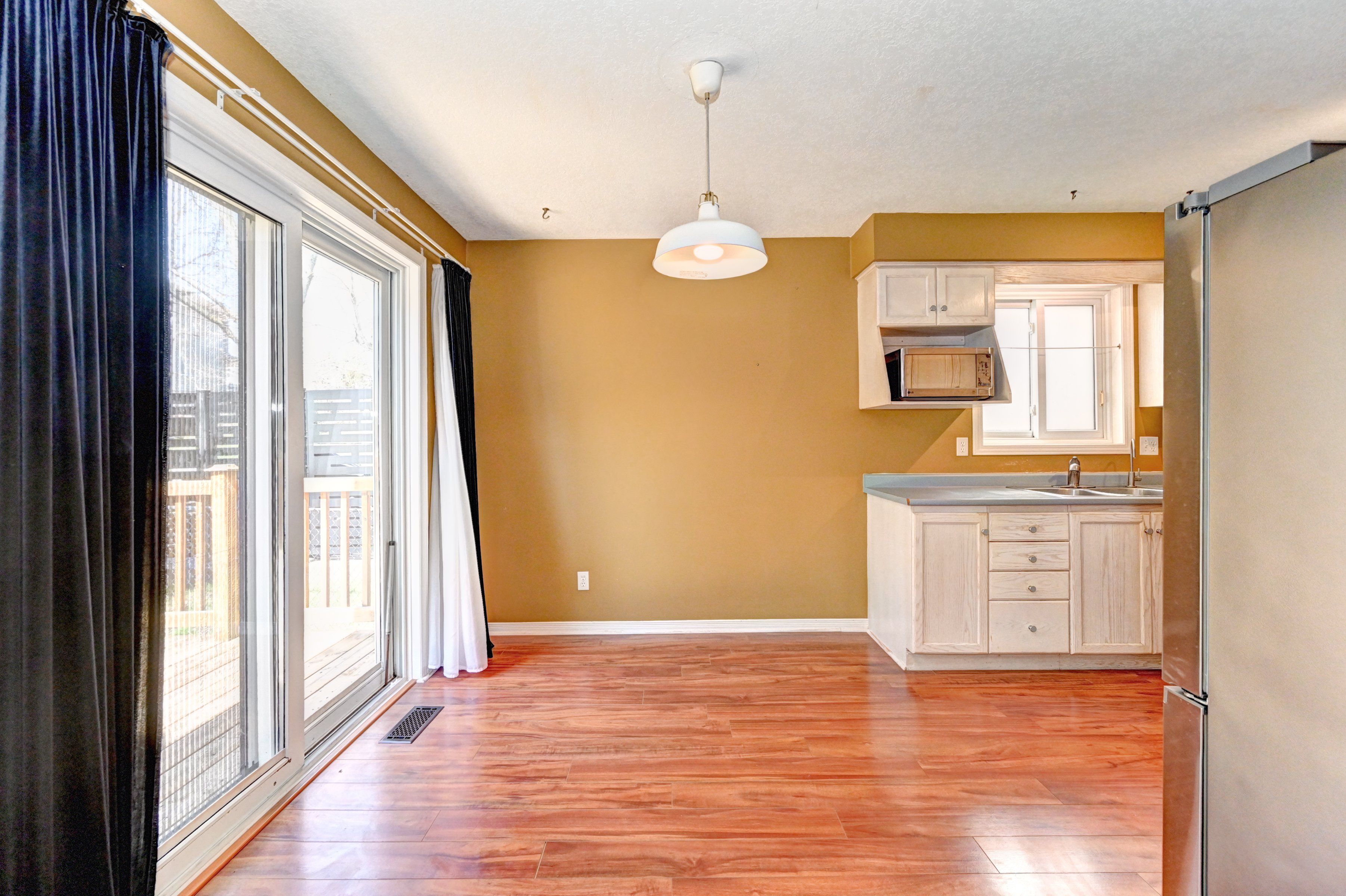 • Bright kitchen and living room with access to a private backyard patio.