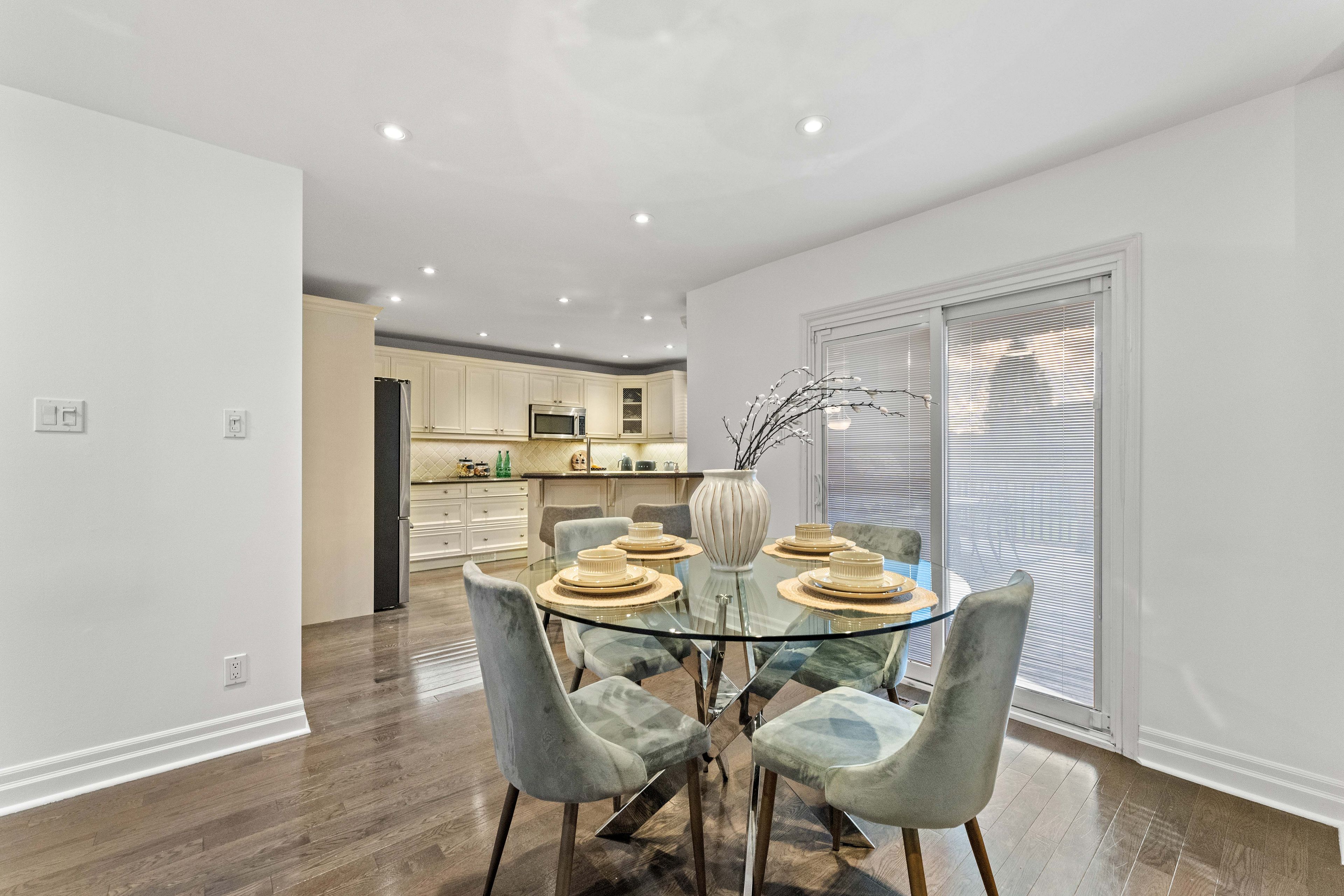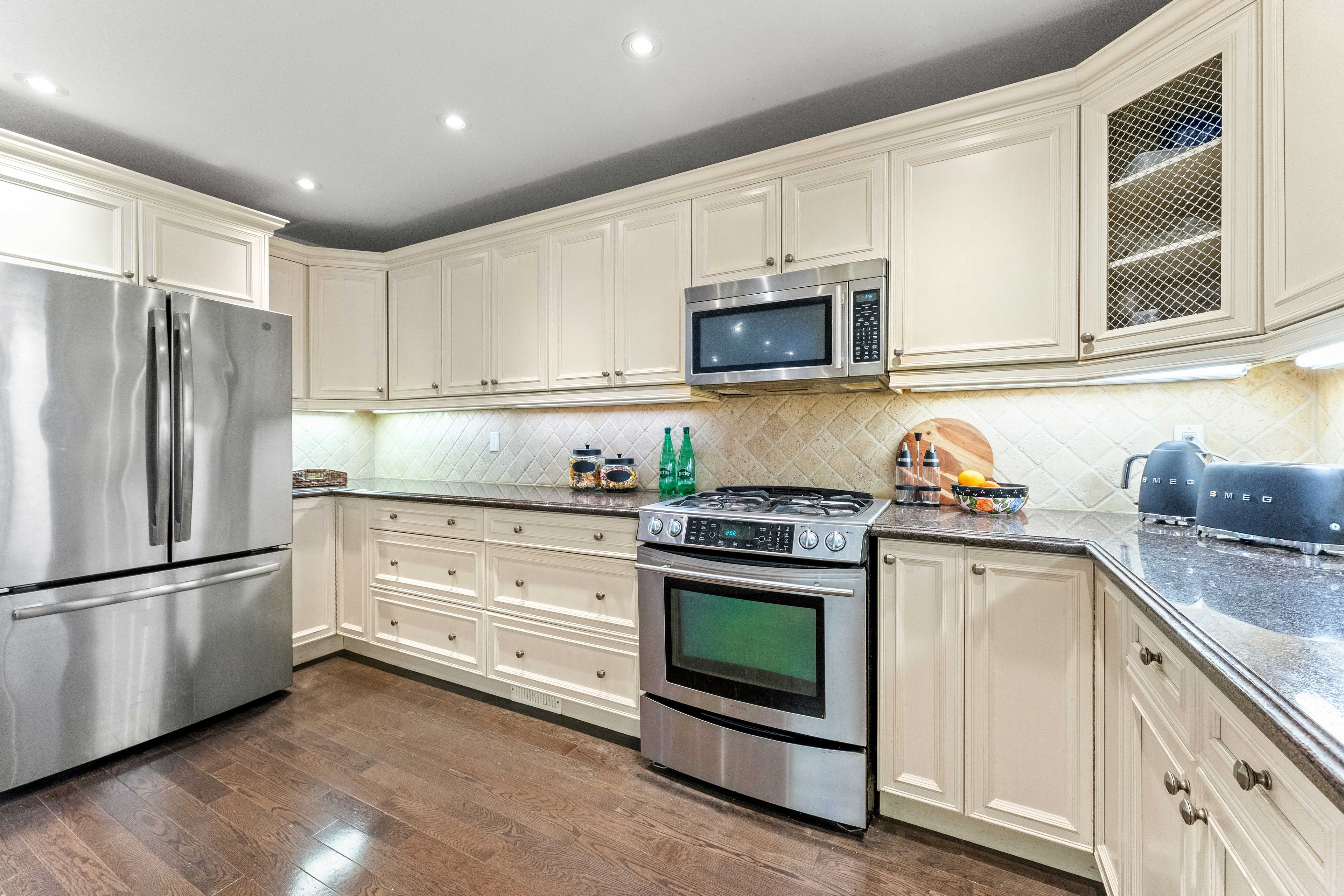 • Chef-inspired kitchen with stainless steel appliances and breakfast area.