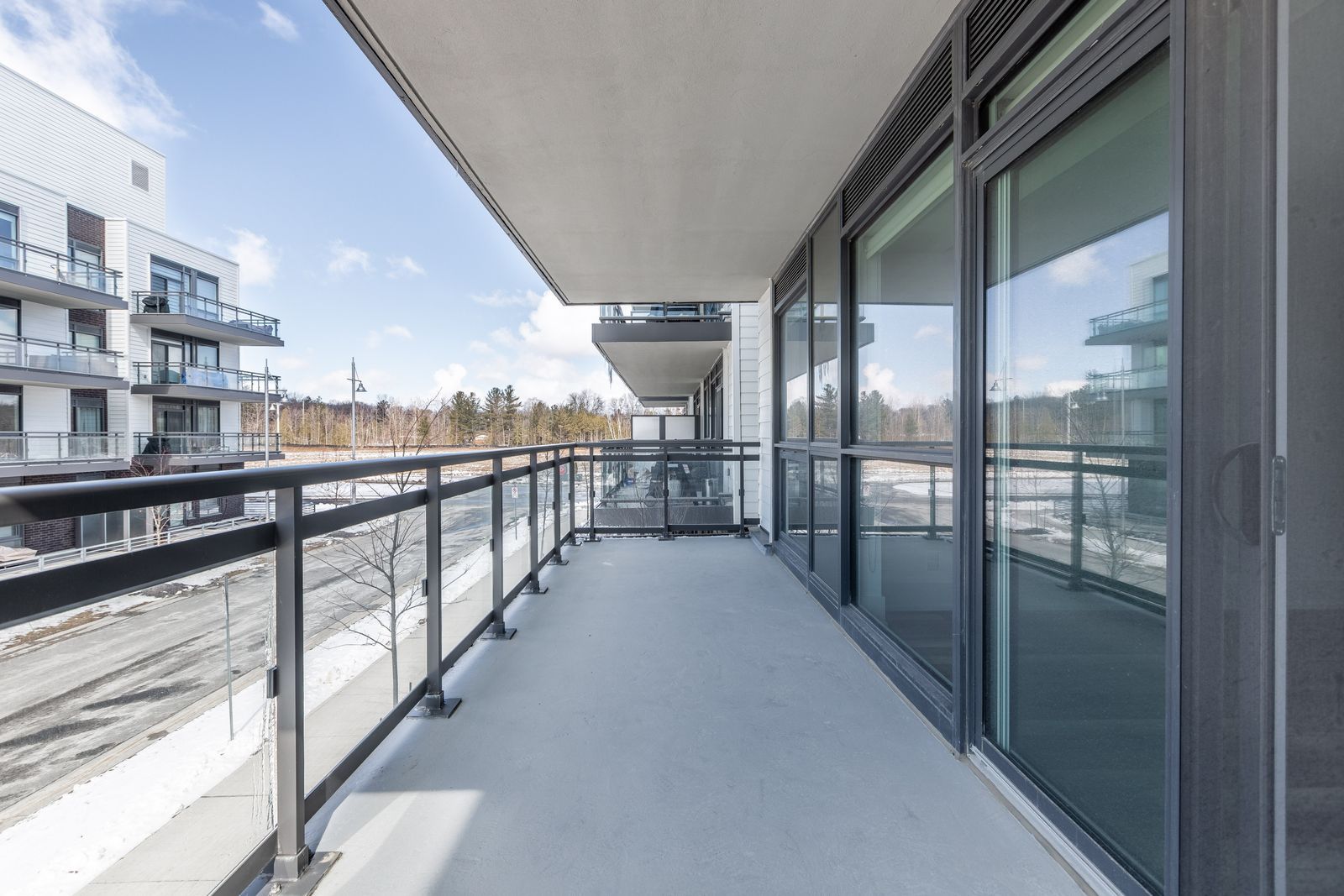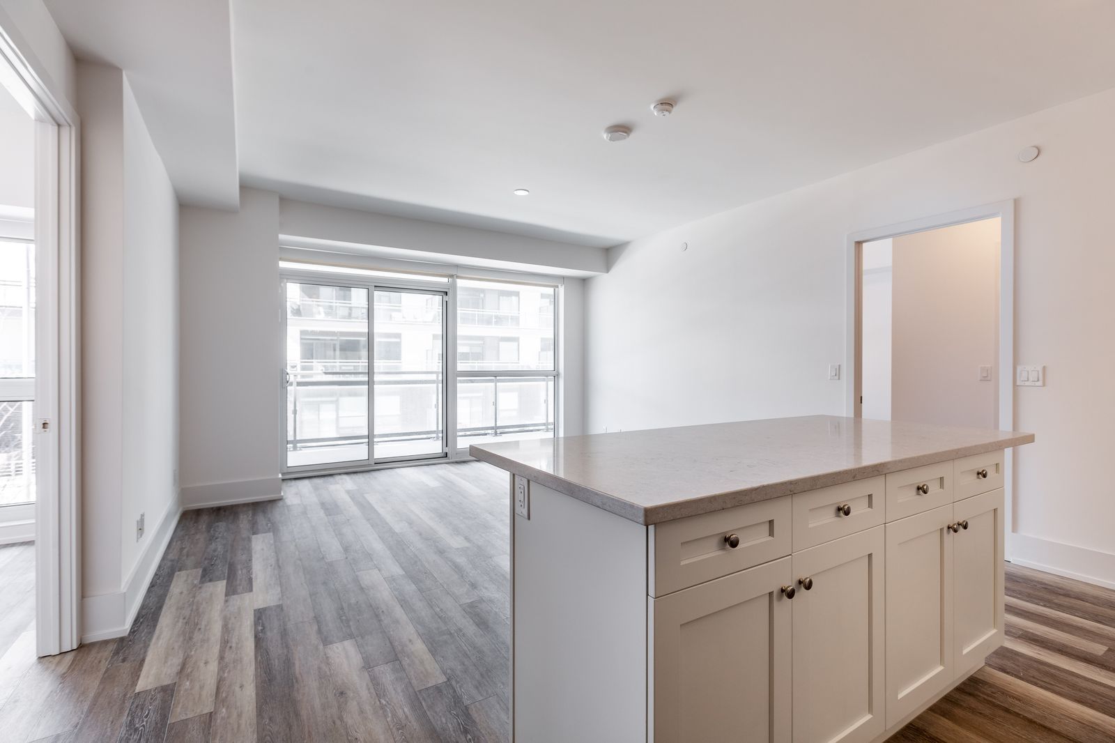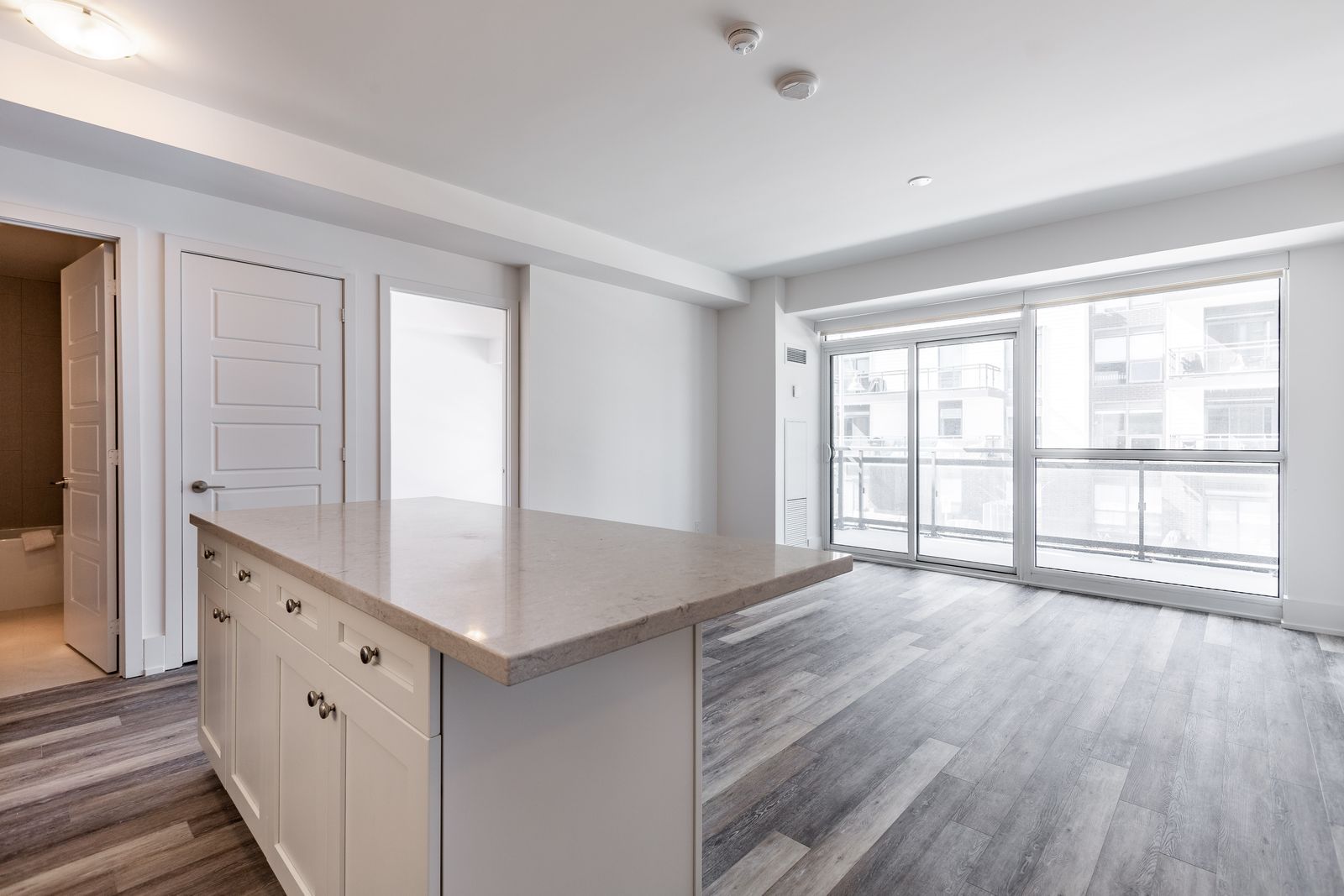 • Open-concept living room with access to a spacious balcony.