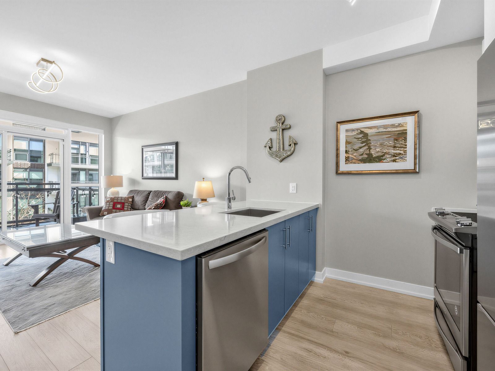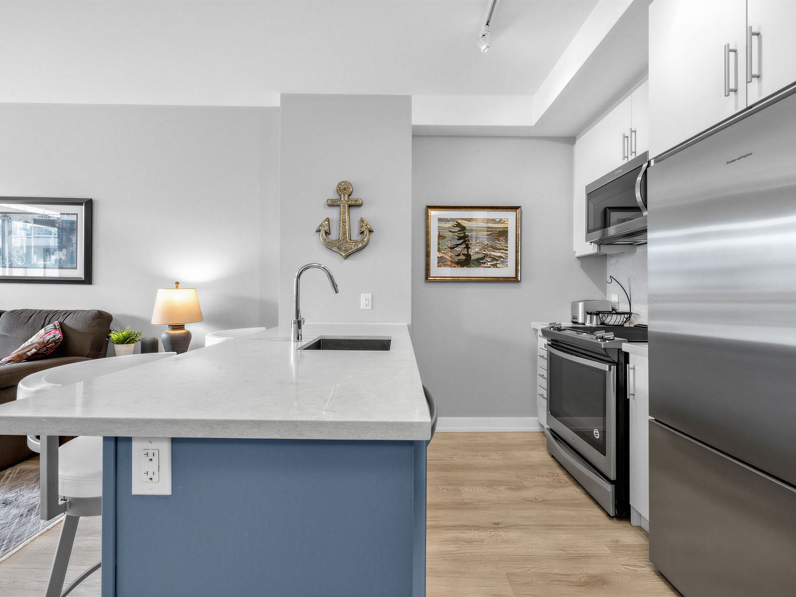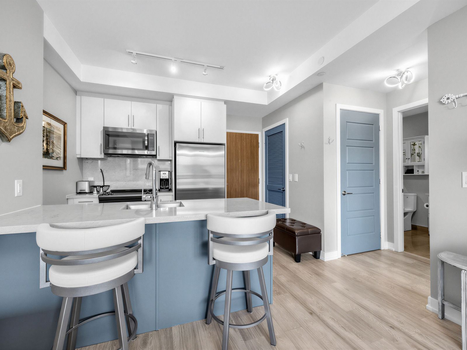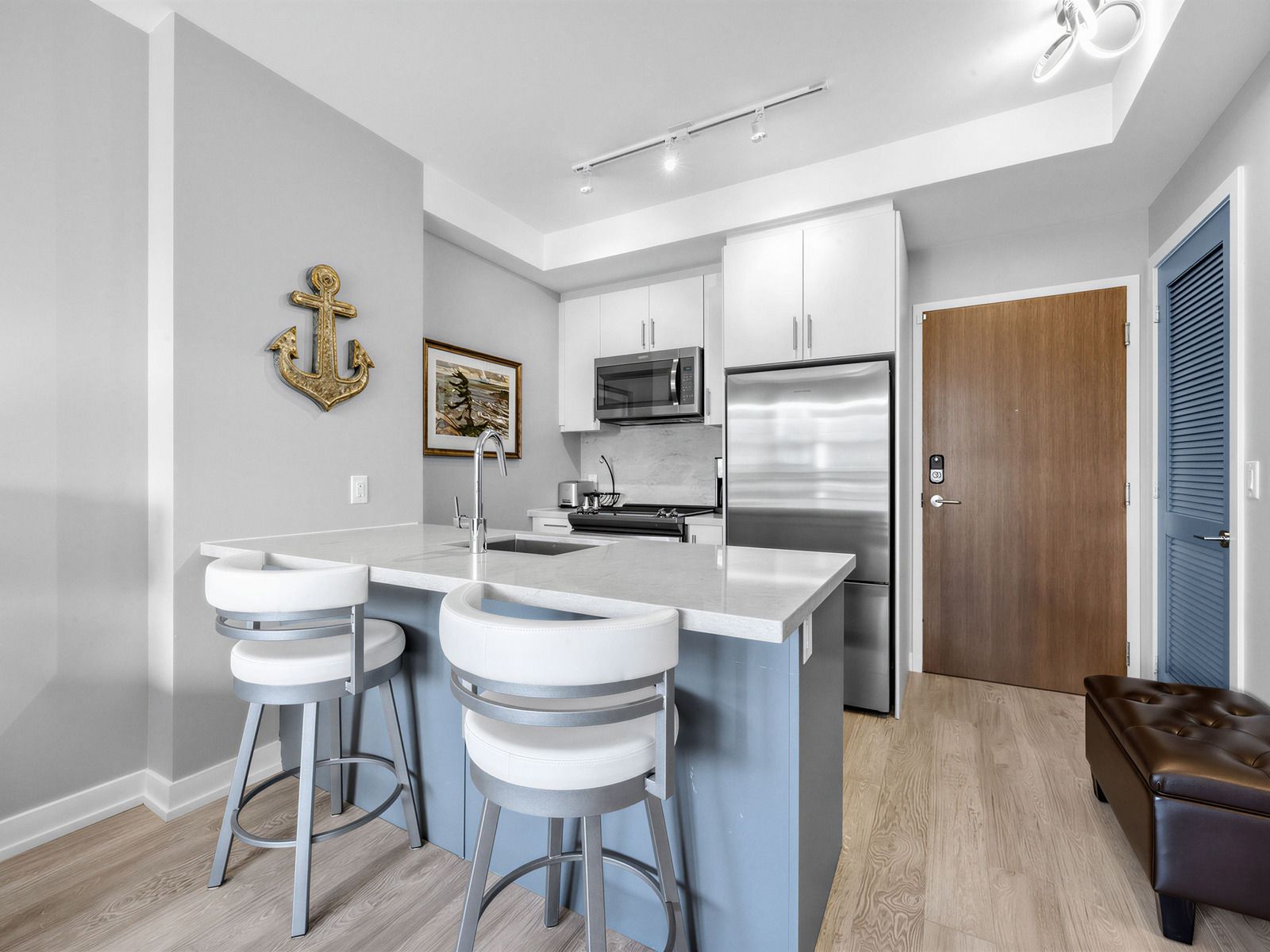 **stylish 1-bedroom with built-ins at friday harbour** enjoy resort-style living in this beautifully designed 1-bedroom suite at friday harbour. Thoughtfully appointed with custom built-ins throughout, this home offers smart storage and a modern, functional layout. The east-facing windows overlook the peaceful courtyard, filling the space with natural light. Featuring a brand-new washer and dryer for added convenience, this unit blends comfort and practicality in a vibrant waterfront community. Just steps to the boardwalk, shops, dining, and year-round activities, friday harbour offers the perfect balance of relaxation and lifestyle. Furnished as per listing. Short-term and long-term rental options available.