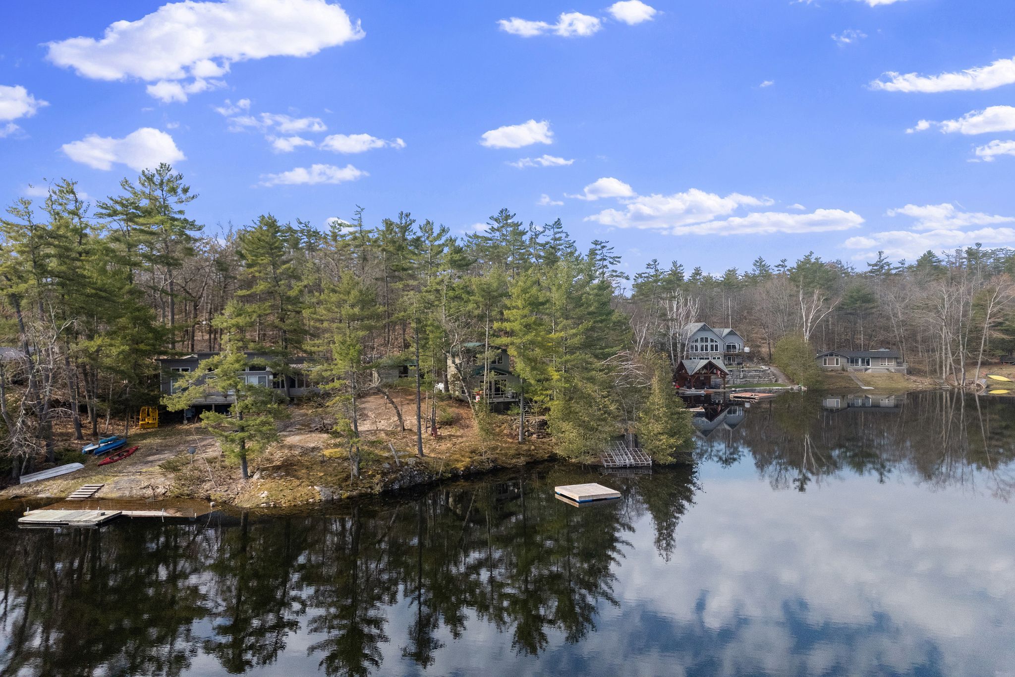 • Four season lake retreat with private waterfront and natural beach.