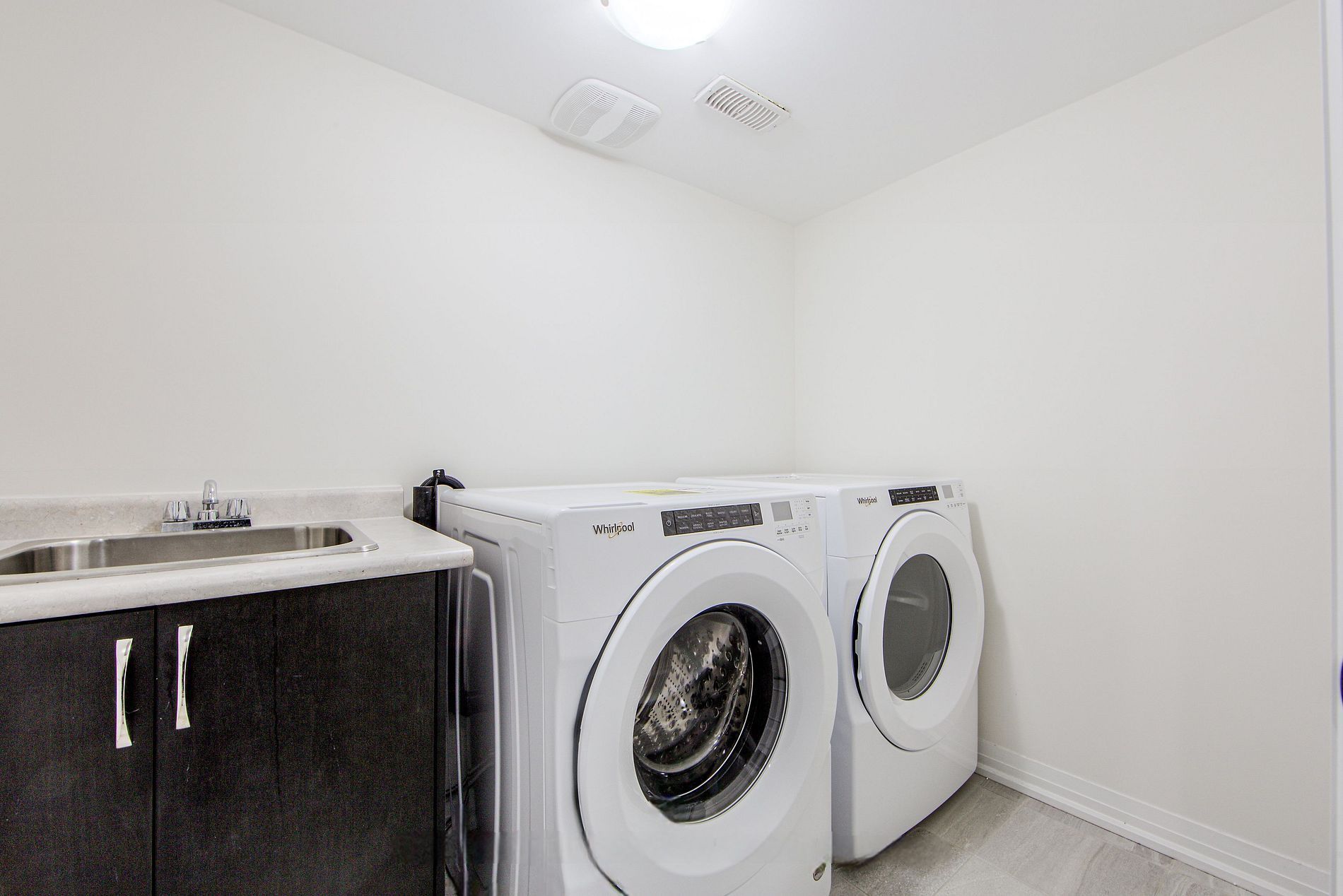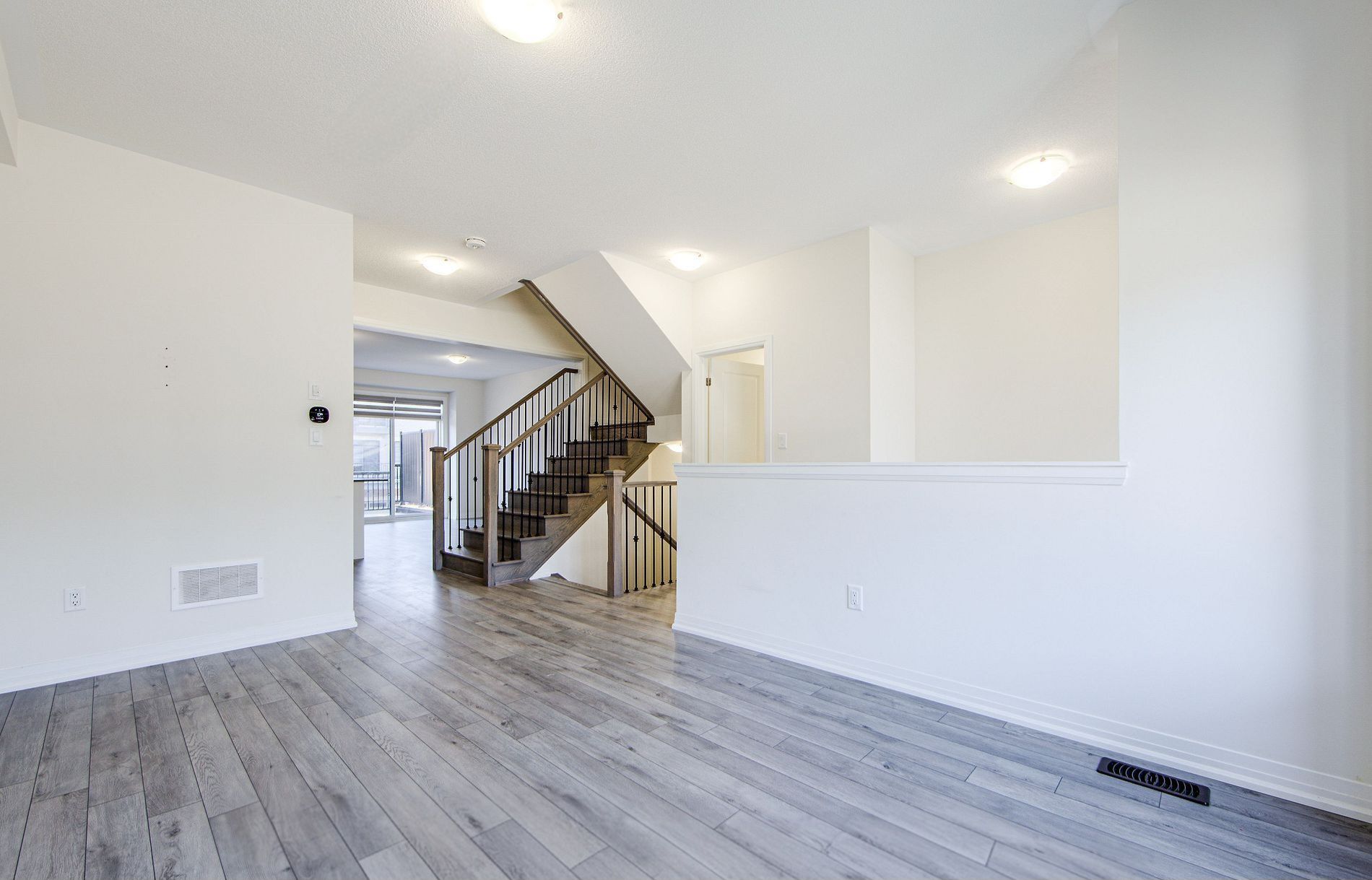 Welcome to this beautifully maintained freehold townhouse in desirable rural pickering! Offering 3 bedrooms and 2. 5 bathrooms, this bright open-concept home features 9-ft smooth ceilings and large windows that fill the space with natural light. The modern kitchen showcases stainless steel appliances, a walk-in pantry, undermount sink, and pull-out faucet. The main level also includes a beautiful balcony area, ideal for bbqs. Perfect for everyday living and entertaining. An upgraded stained oak staircase with wrought iron pickets adds a touch of elegance. Upstairs, the spacious primary bedroom offers a upgraded 5-piece ensuite, walk-in closet, and private walkout balcony. Two additional generously sized bedrooms with another 3-piece bath complete the upper level. Located in a brand-new subdivision, this home features a 2-car garage with ev rough-in, plus quick access to public transit, hwy 401/407, shopping, place of worship, multiple parks , trails and schools-delivering comfort, style, and convenience in one exceptional property.