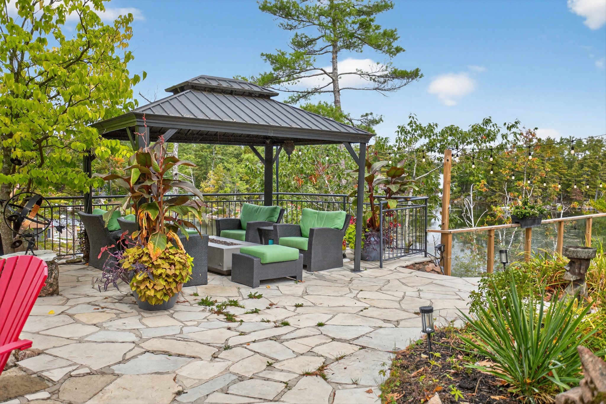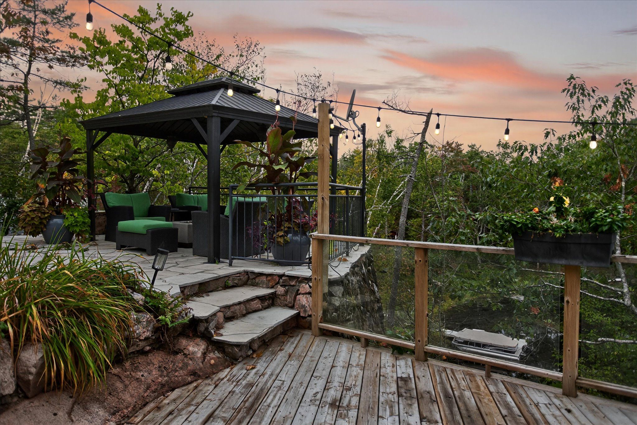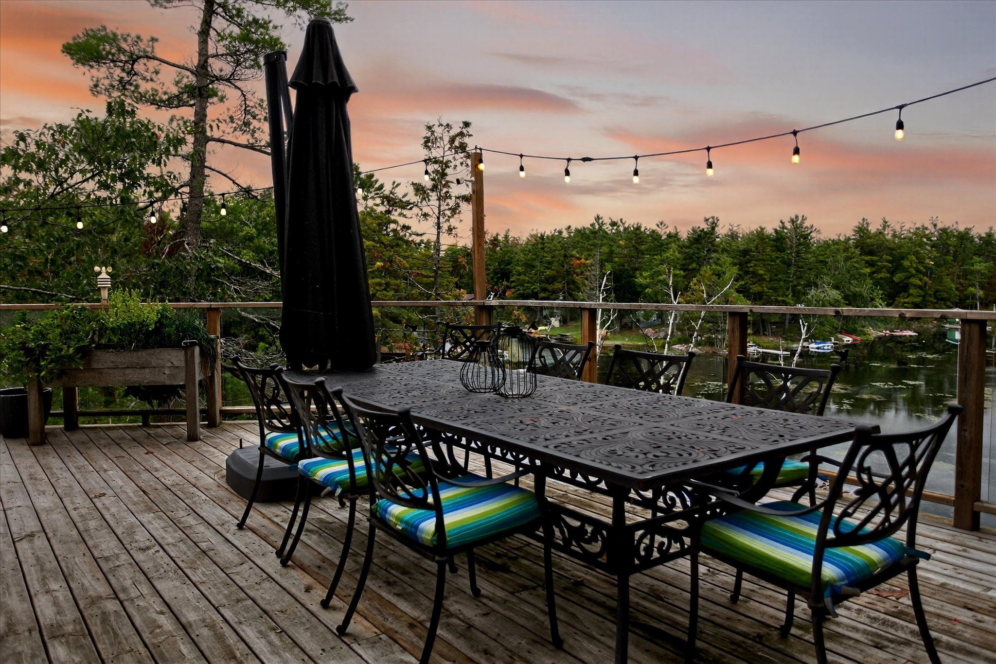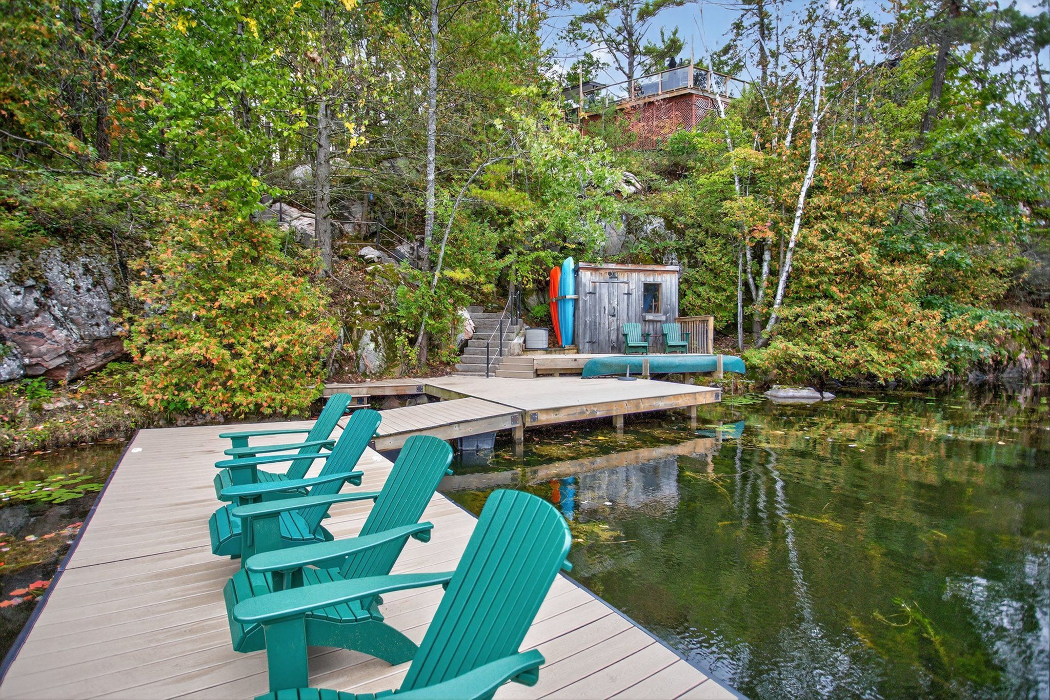• Installed custom dock system adds value for water activities and relaxation.
