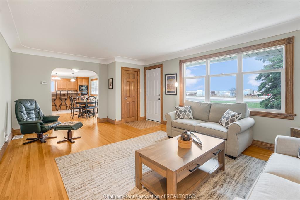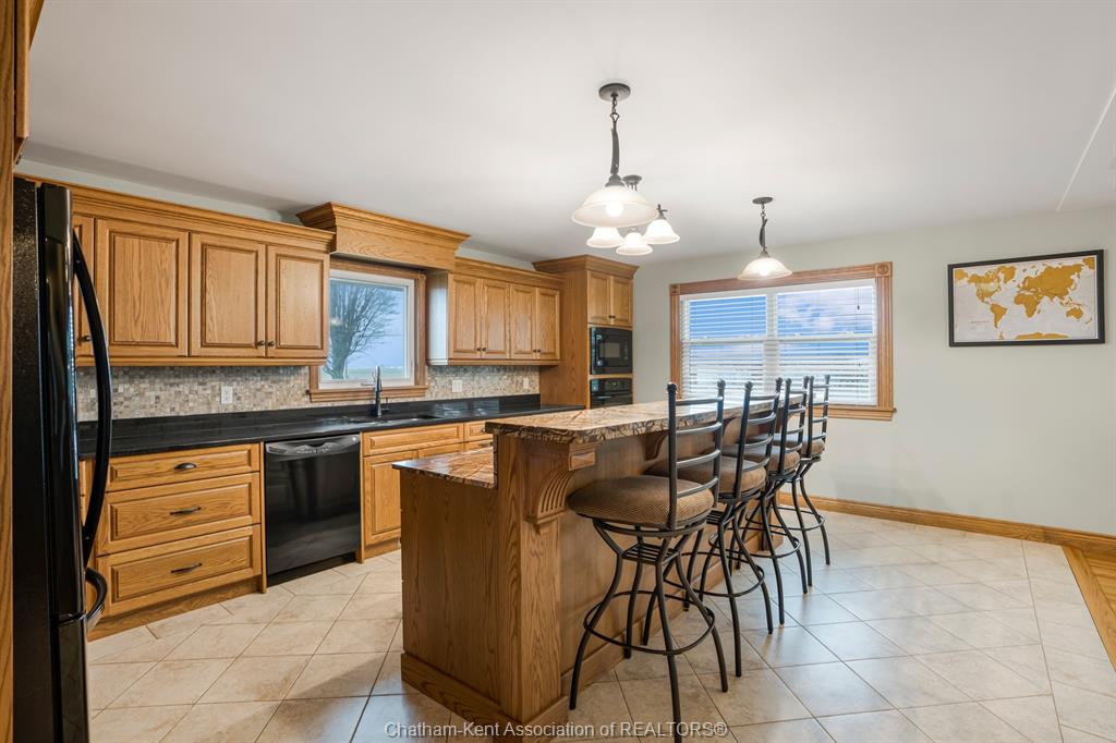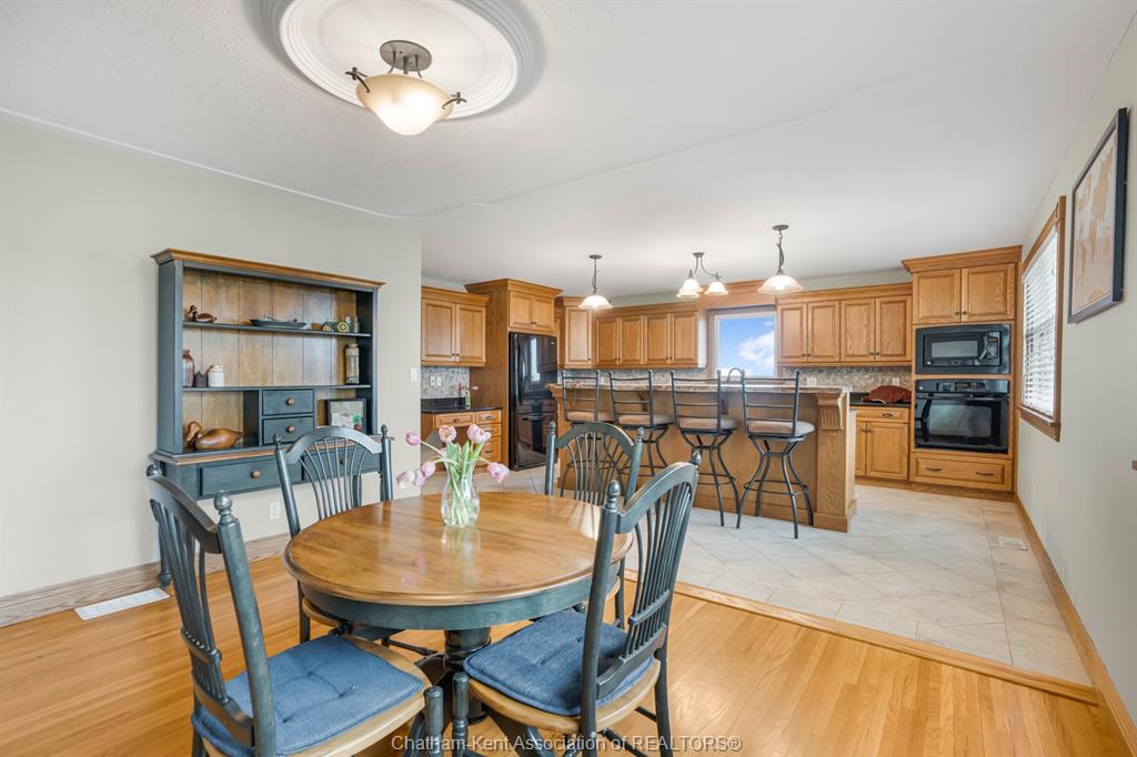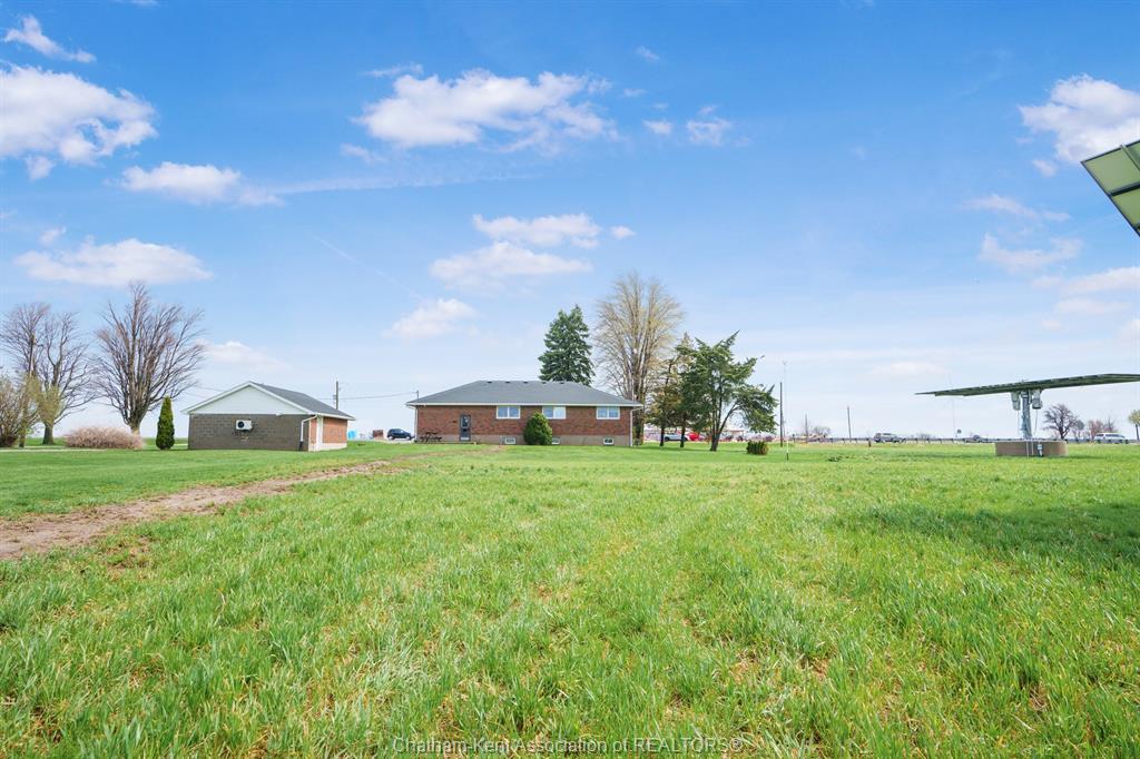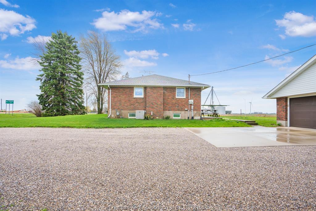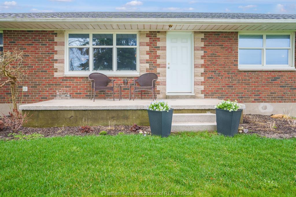 Situated on 1. 4 acres backing onto a creek, the property offers bonus solar income, wildlife, and room to garden or let kids explore. This 3 bedroom, 2 bathroom, well-built brick home is set in the country between wallaceburg and chatham. A spacious kitchen is designed for everyday living and entertaining, complete with a raised countertop that keeps you connected with guests while you cook. This home is exceptionally clean and truly move-in ready from the fridge to the oven, just bring your belongings. You’ll love the main floor laundry, deep closets, and large windows throughout the home, bringing in natural light. The solar panel generates over $14,000 annually in revenue, adding bonus value. A standout feature is the fully insulated garage, equipped with natural gas heating, a hot water heater, water, air conditioning, and automatic openers, ideal for parking, projects, or workspace use. The full unfinished basement provides ample storage and future living space potential, along with a cold cellar under the front steps, perfect for preserving and storage. A solid country property with functional space, income, and room to grow. Fibre optic internet is available.